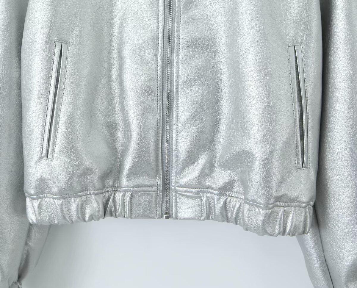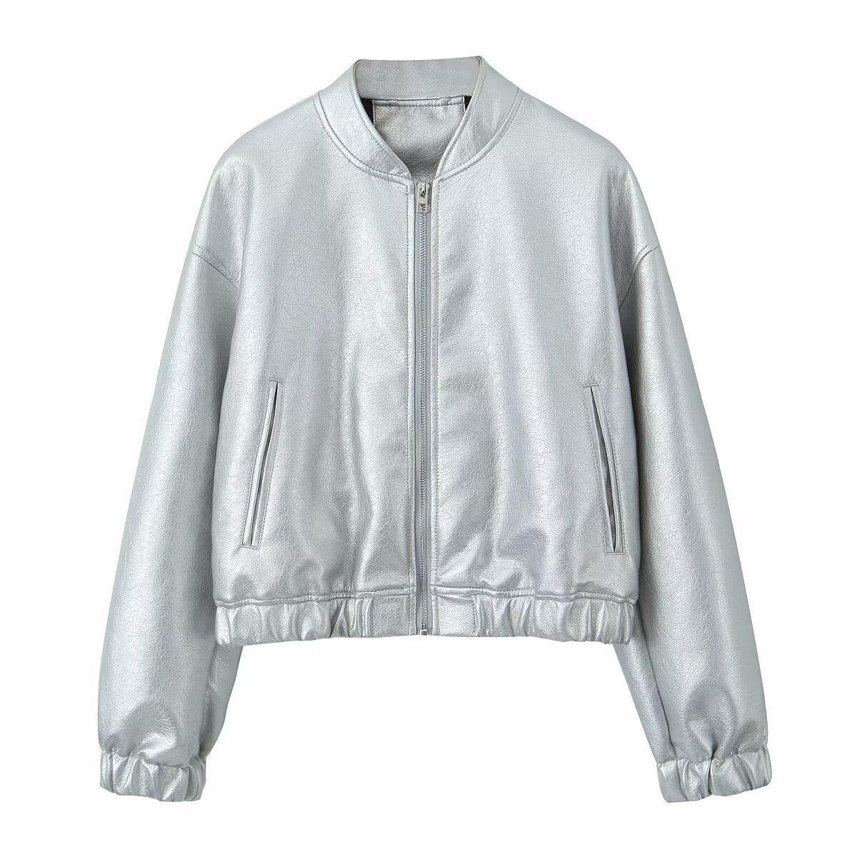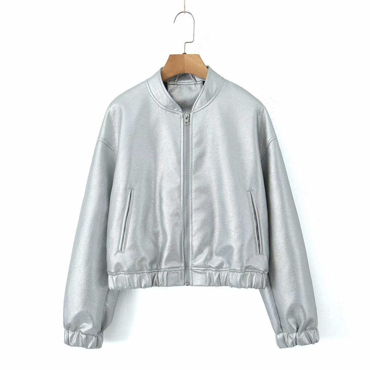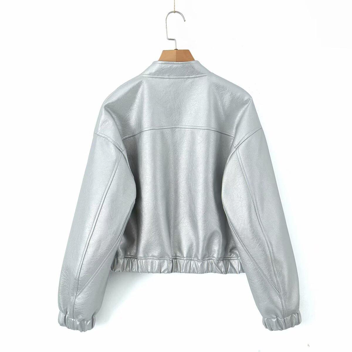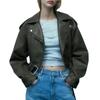 Moda transfronteriza europea y americana para mujer 2025 otoño nuevo estilo callejero cuello alto corto chaqueta bomber de piel sintética abrigo mujer