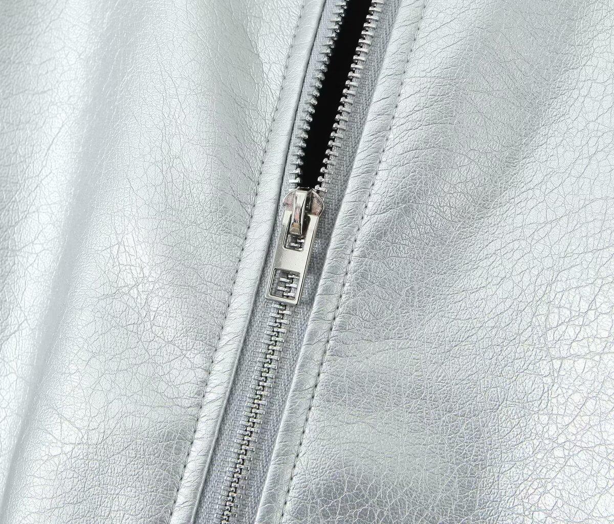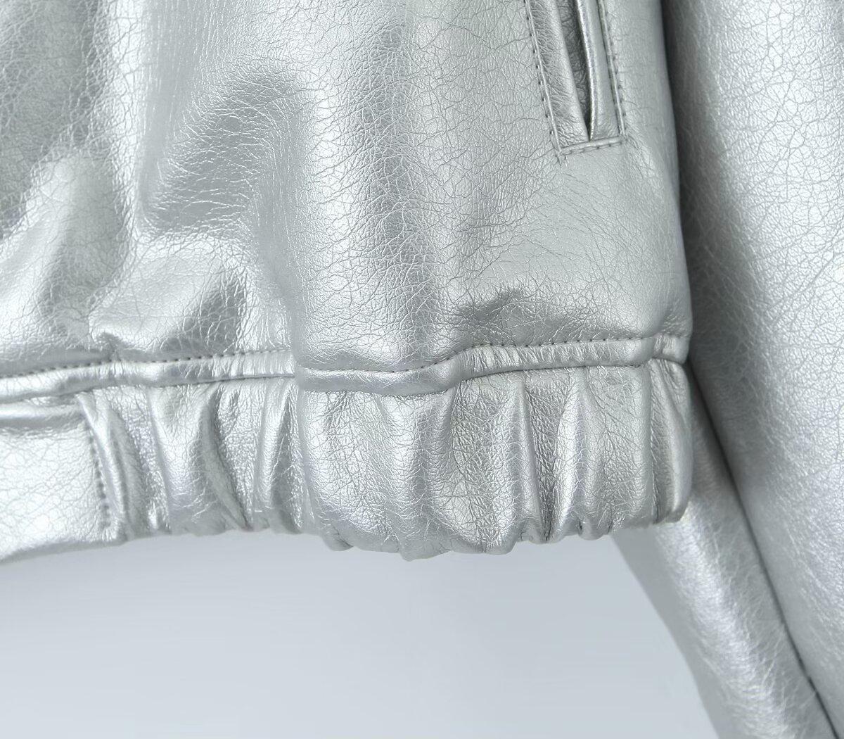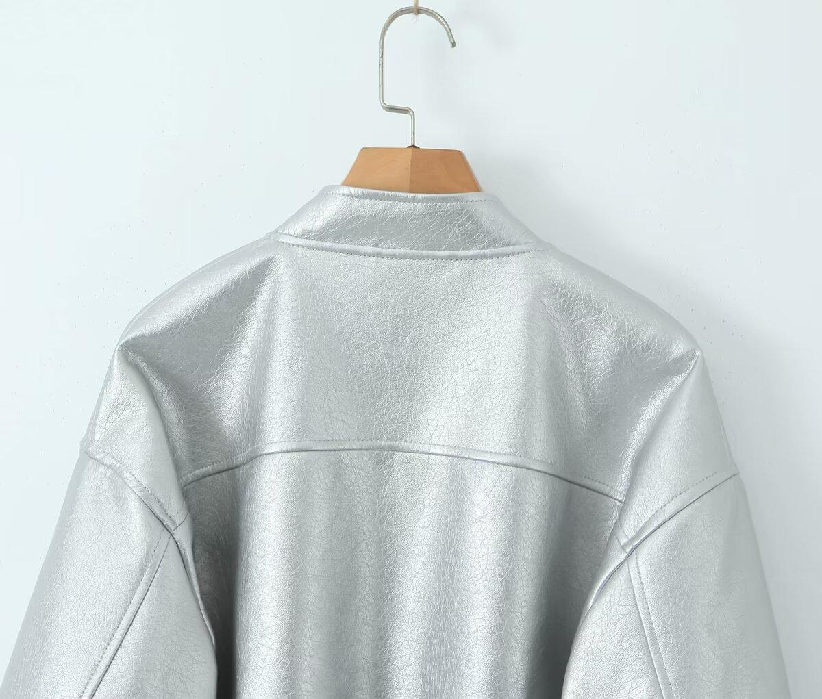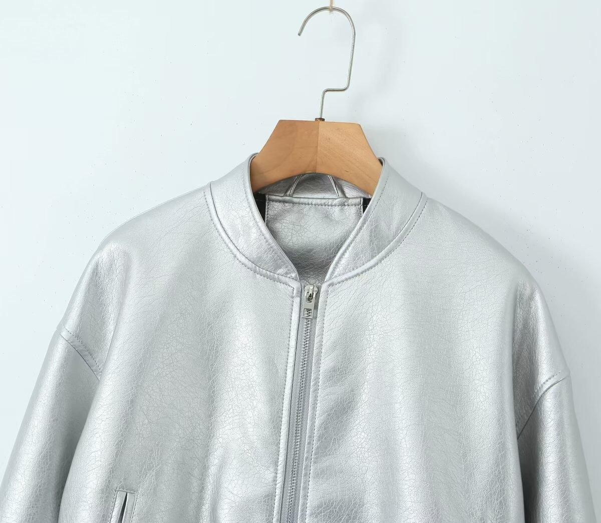 Moda transfronteriza europea y americana para mujer 2025 otoño nuevo estilo callejero cuello alto corto chaqueta bomber de piel sintética abrigo mujer