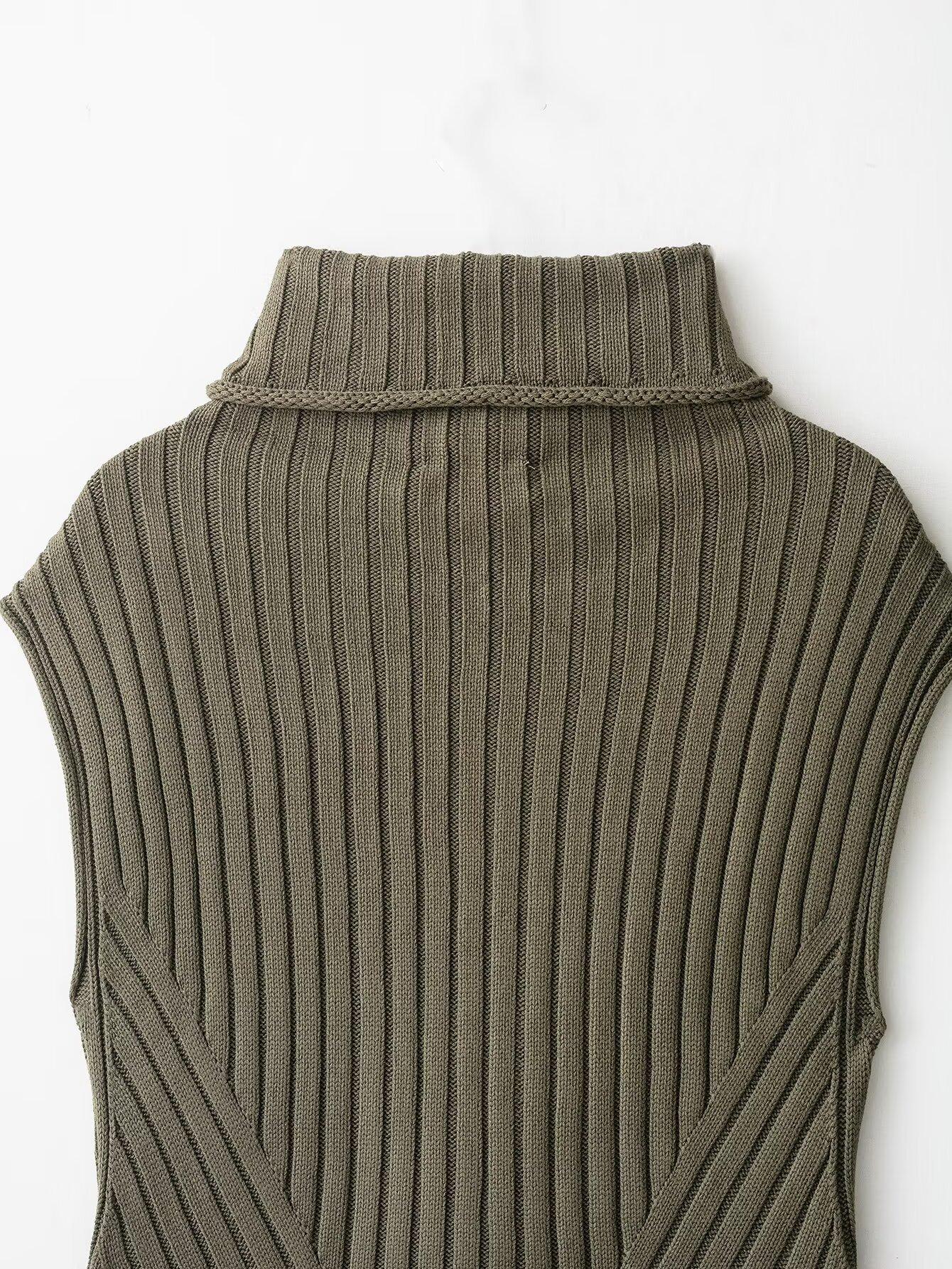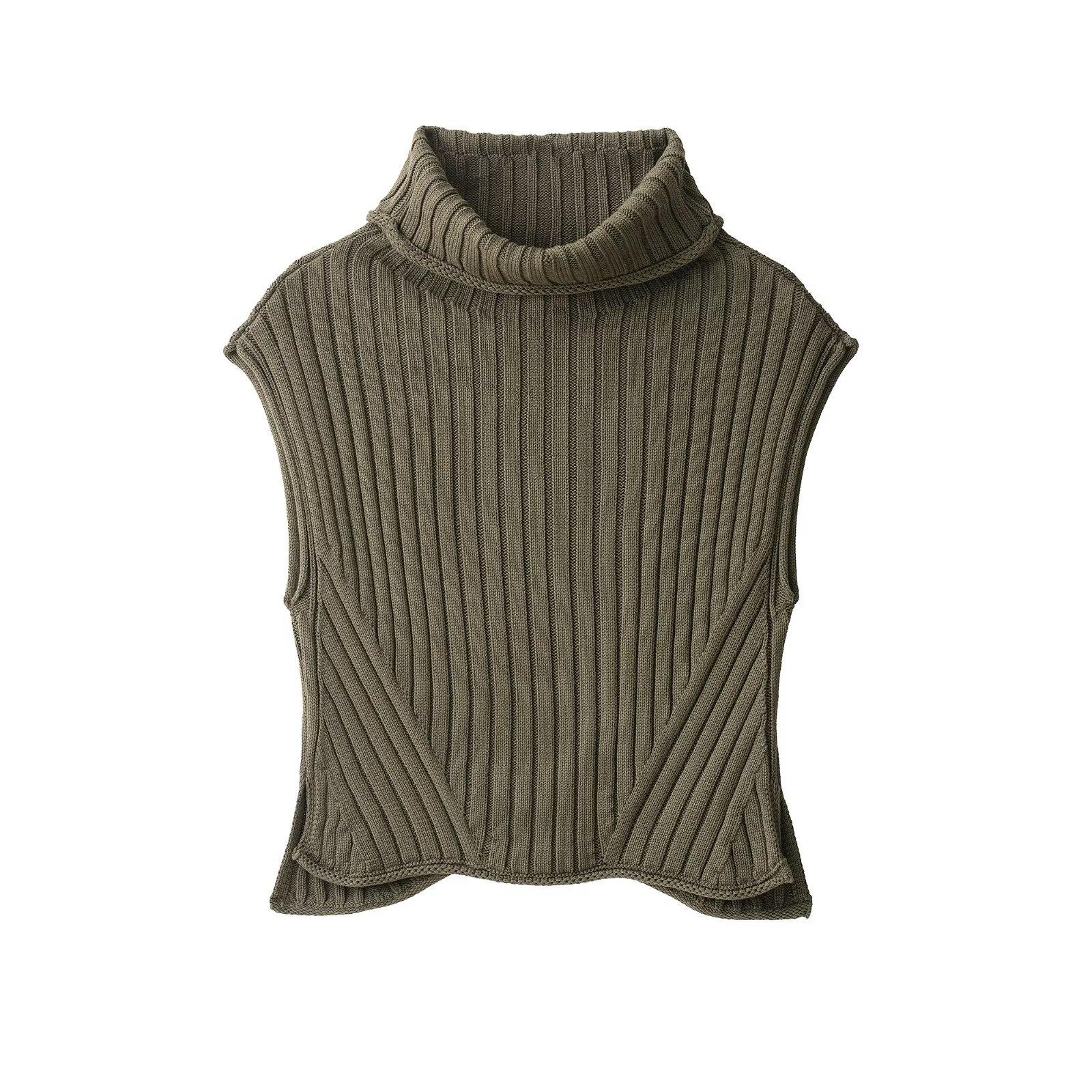 Otoño 2025 Nueva Ropa de Mujer Estilo Europeo y Americano Moda Versátil Cuello Alto Chaleco Tejido 6771118