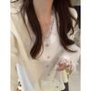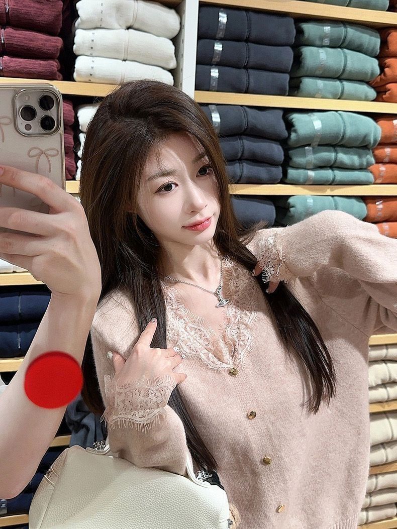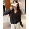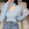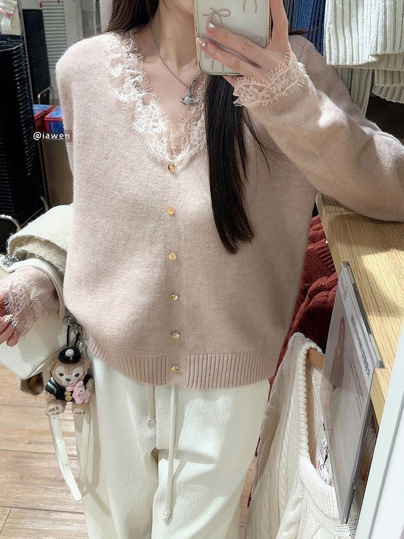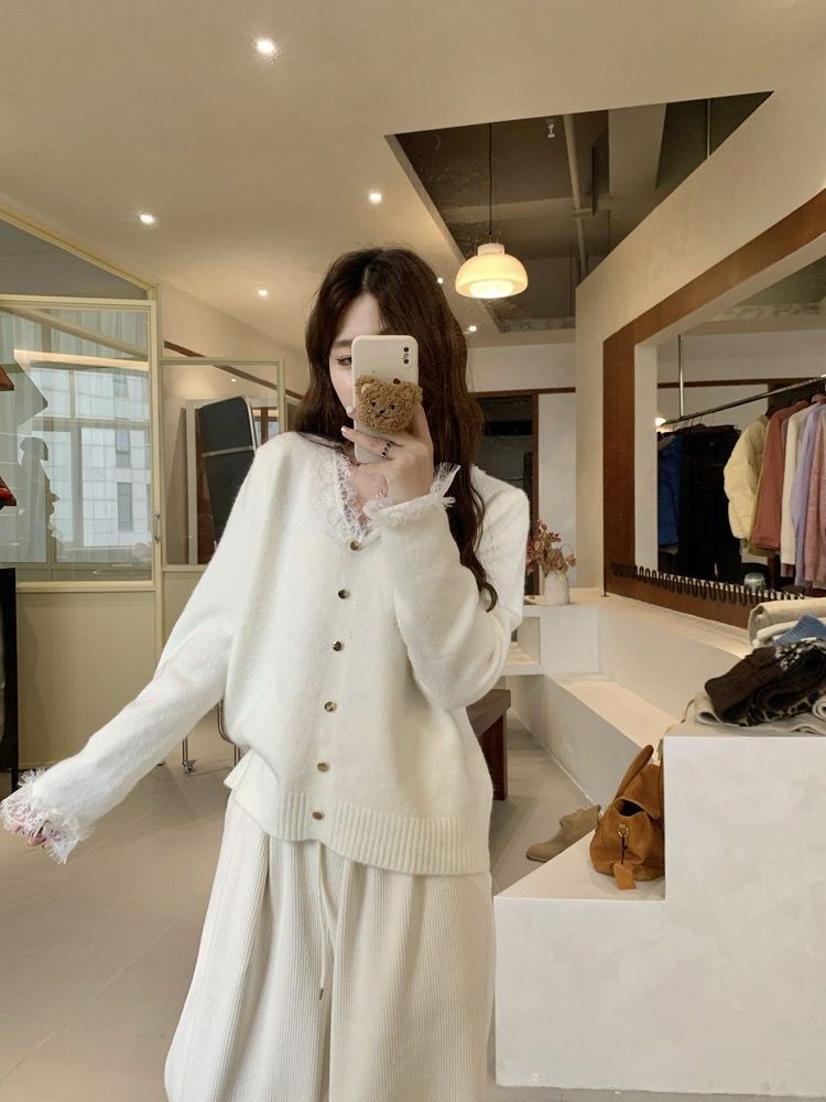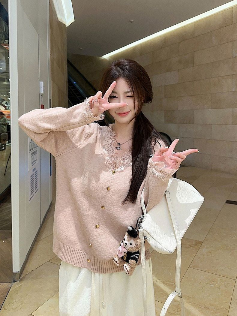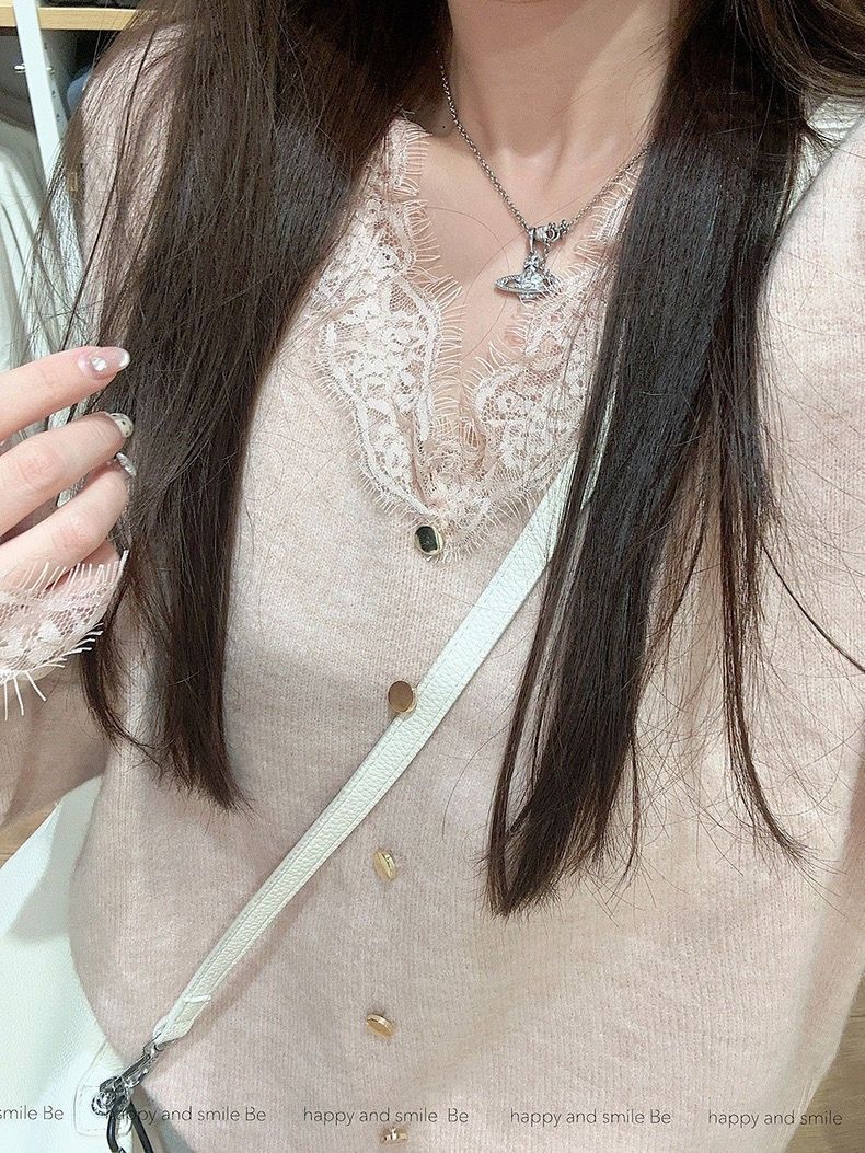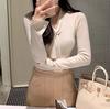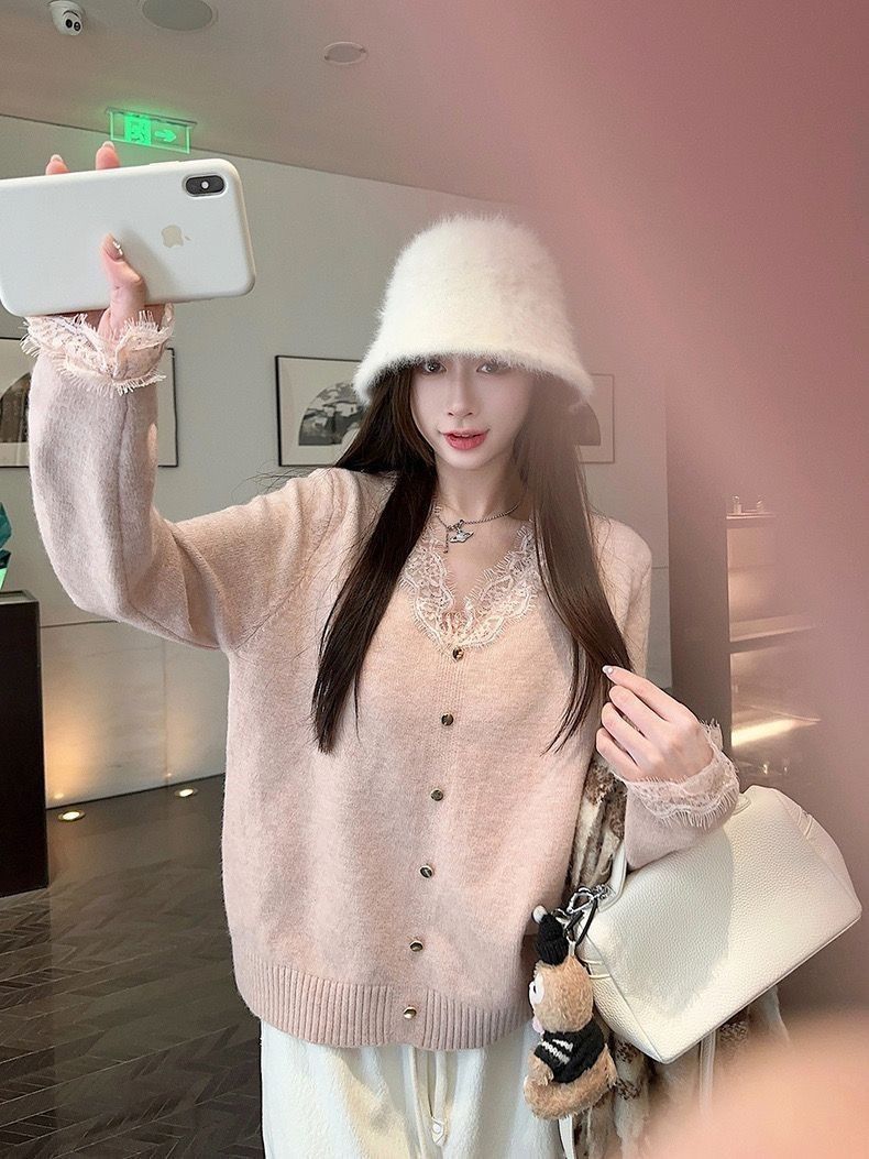 Suéter Negro con Encaje Dopamina para Mujer Invierno Versátil Capa Base Tejido Suave Suelto Top Interior