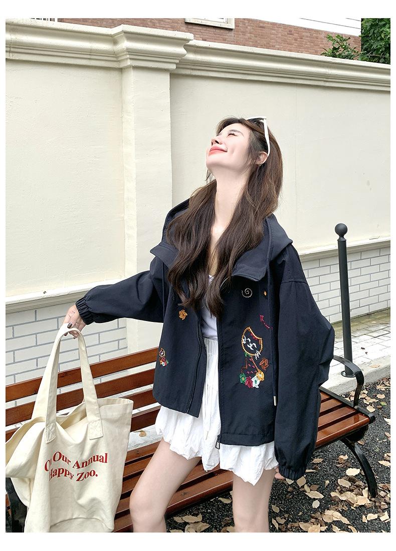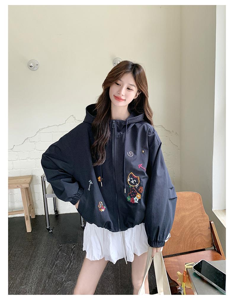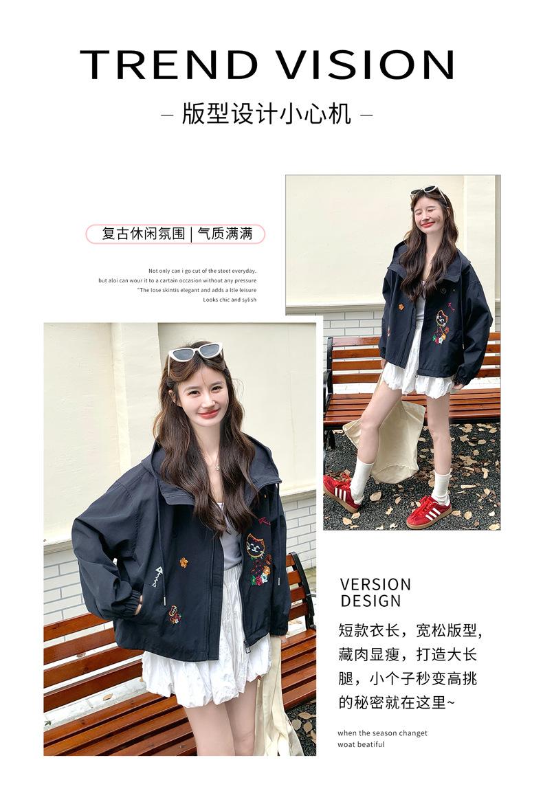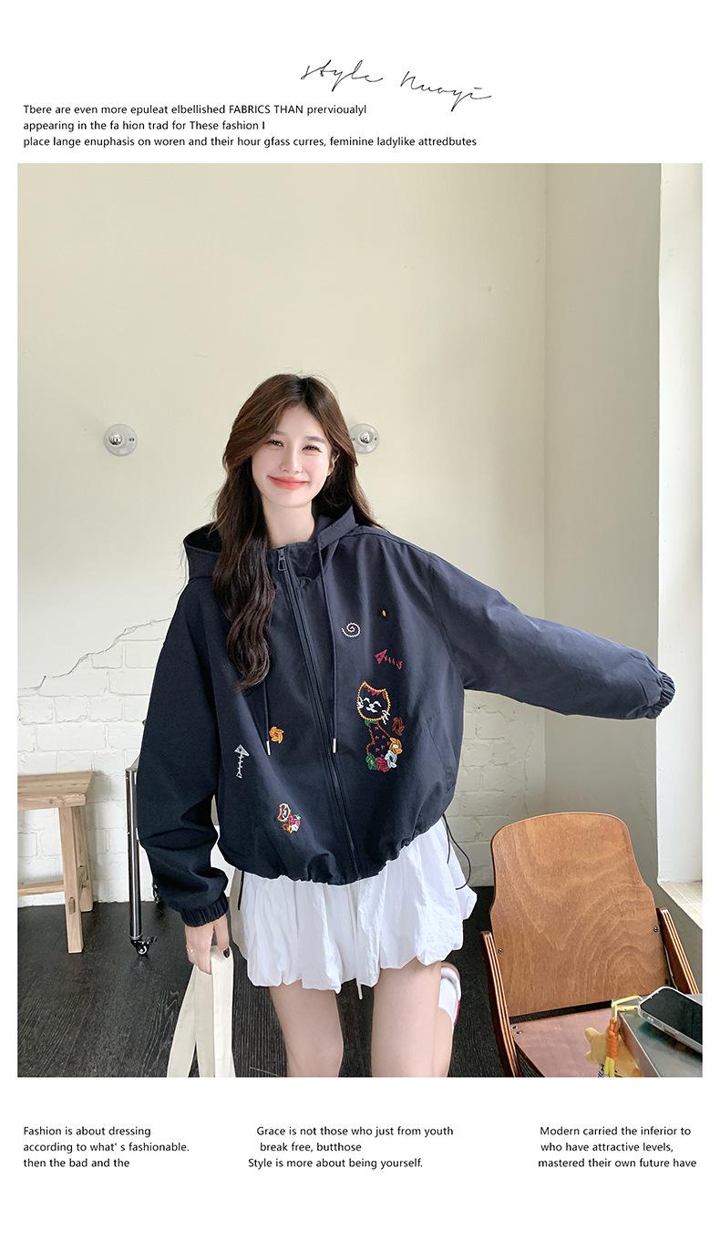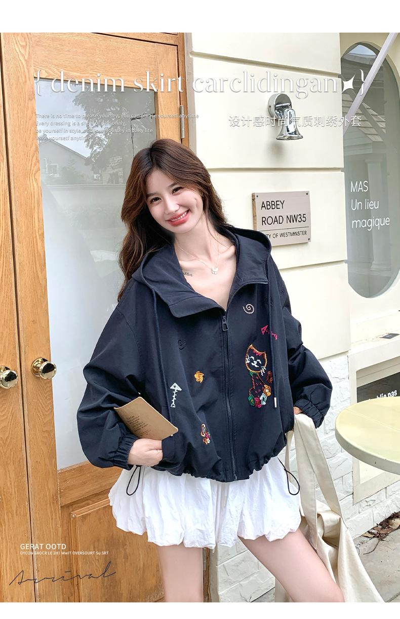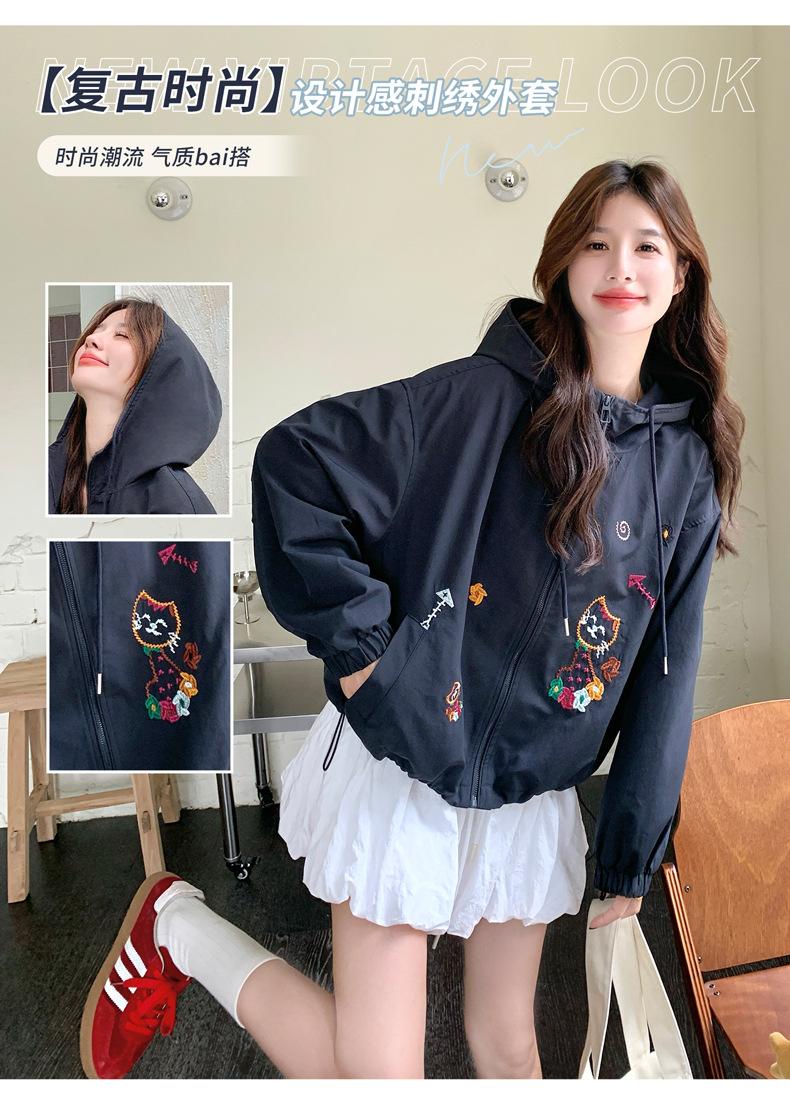 Chaqueta Corta Casual Super Guapa con Bordado y Capucha para Mujer 2025 Otoño Nueva Talla Pequeña Chaqueta Top Versátil y a la Moda