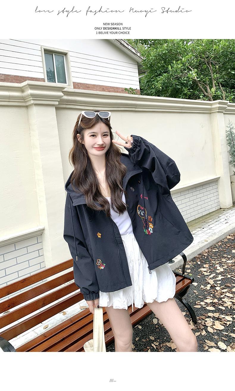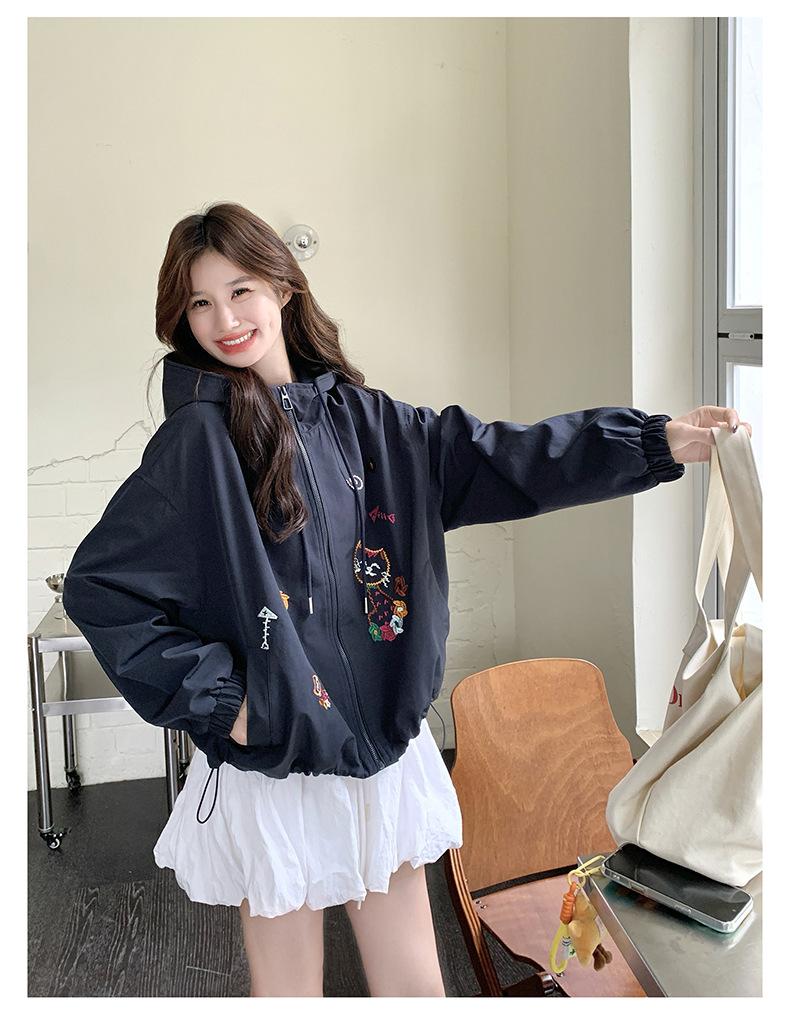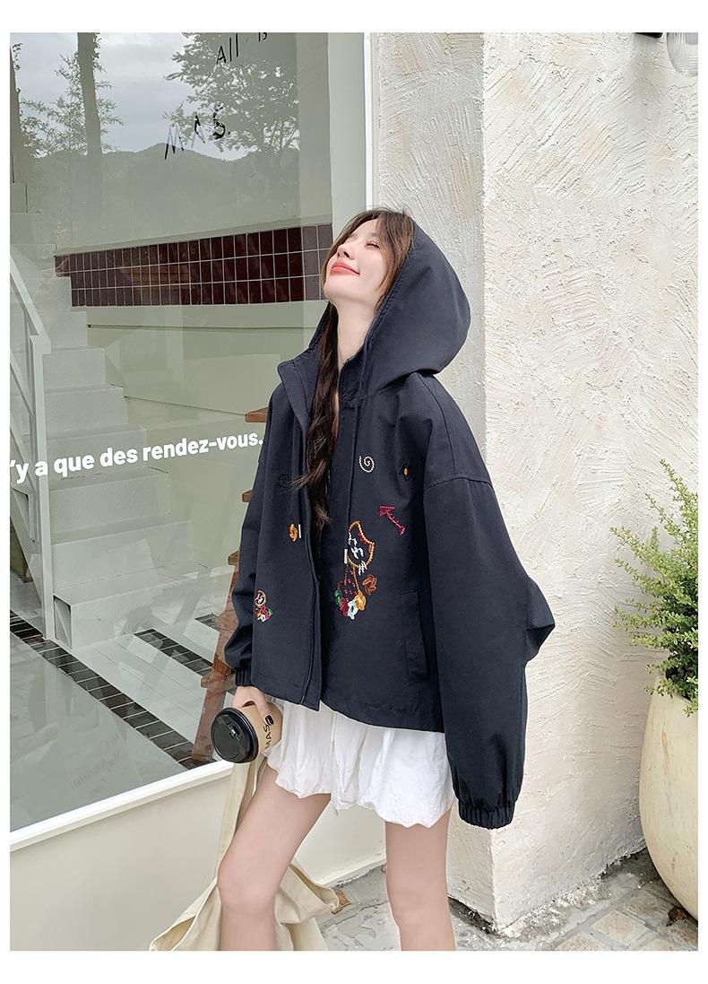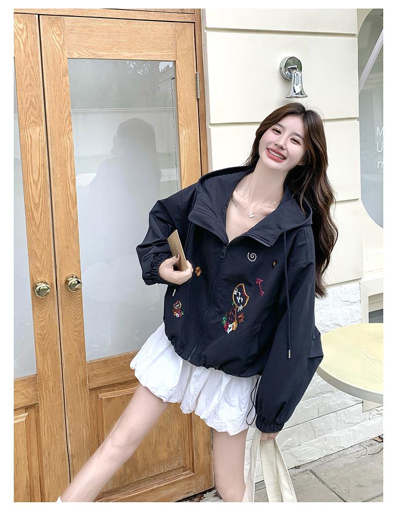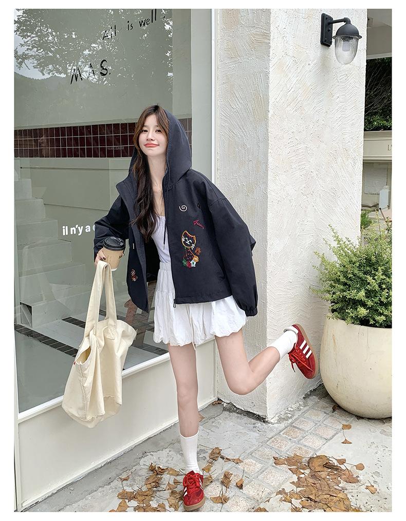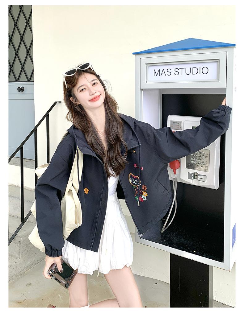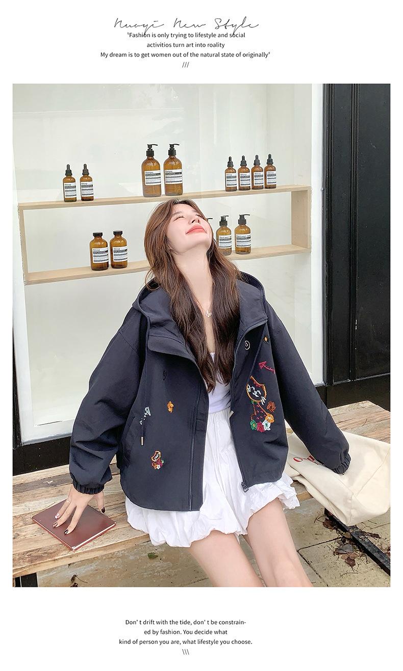 Chaqueta Corta Casual Super Guapa con Bordado y Capucha para Mujer 2025 Otoño Nueva Talla Pequeña Chaqueta Top Versátil y a la Moda