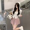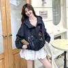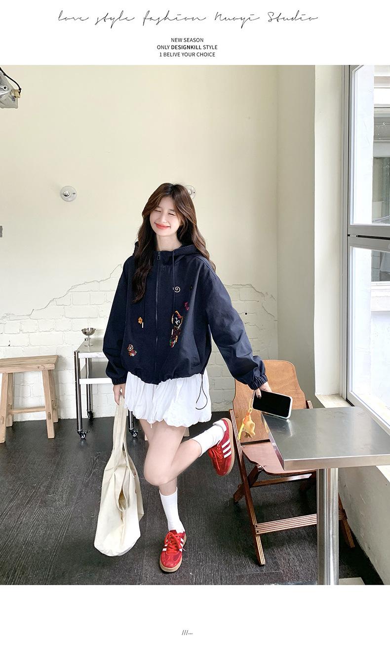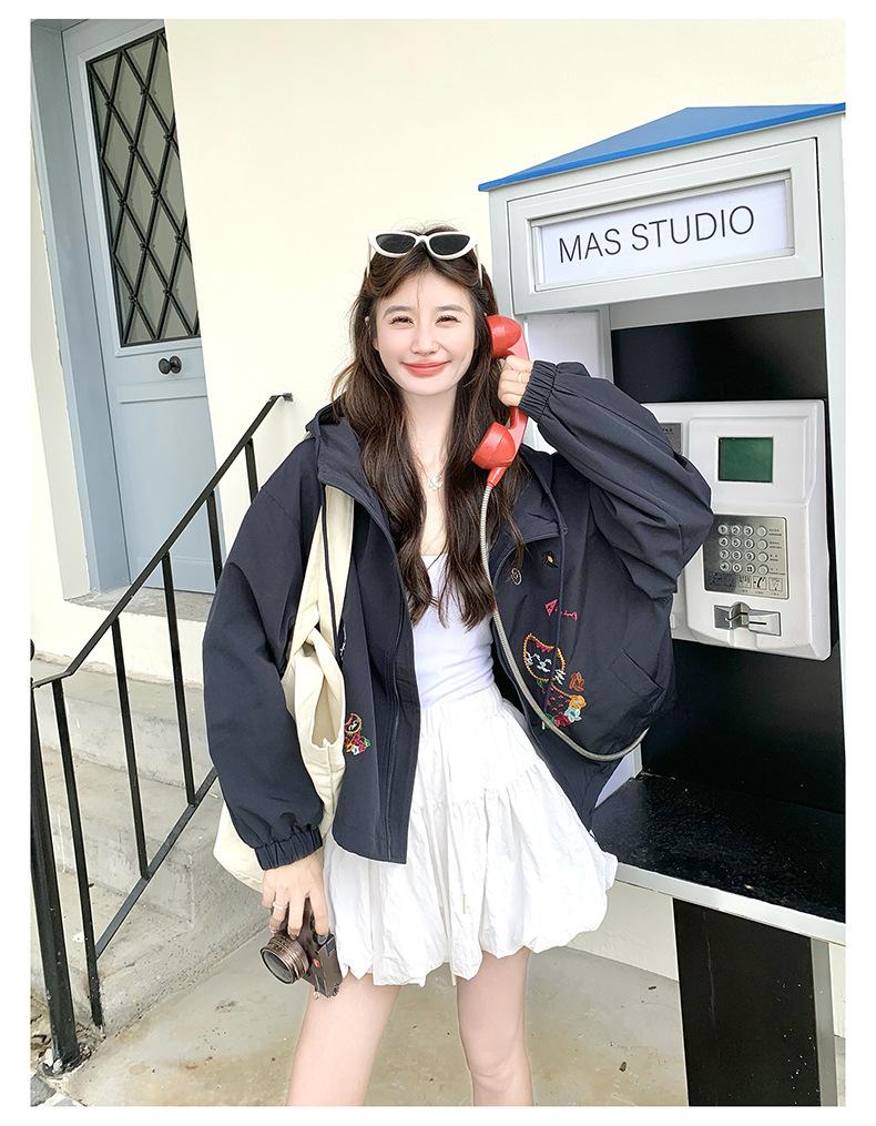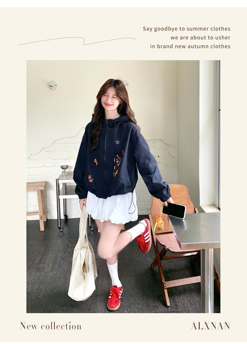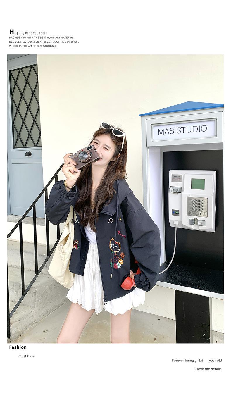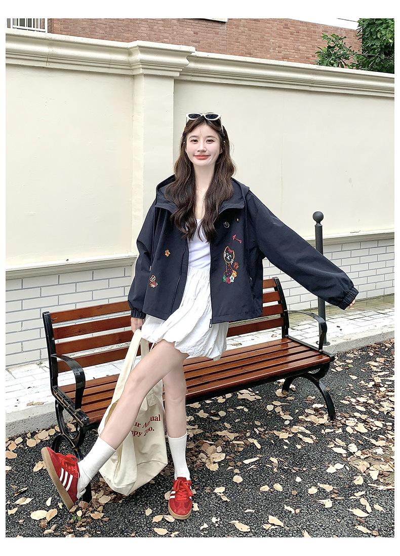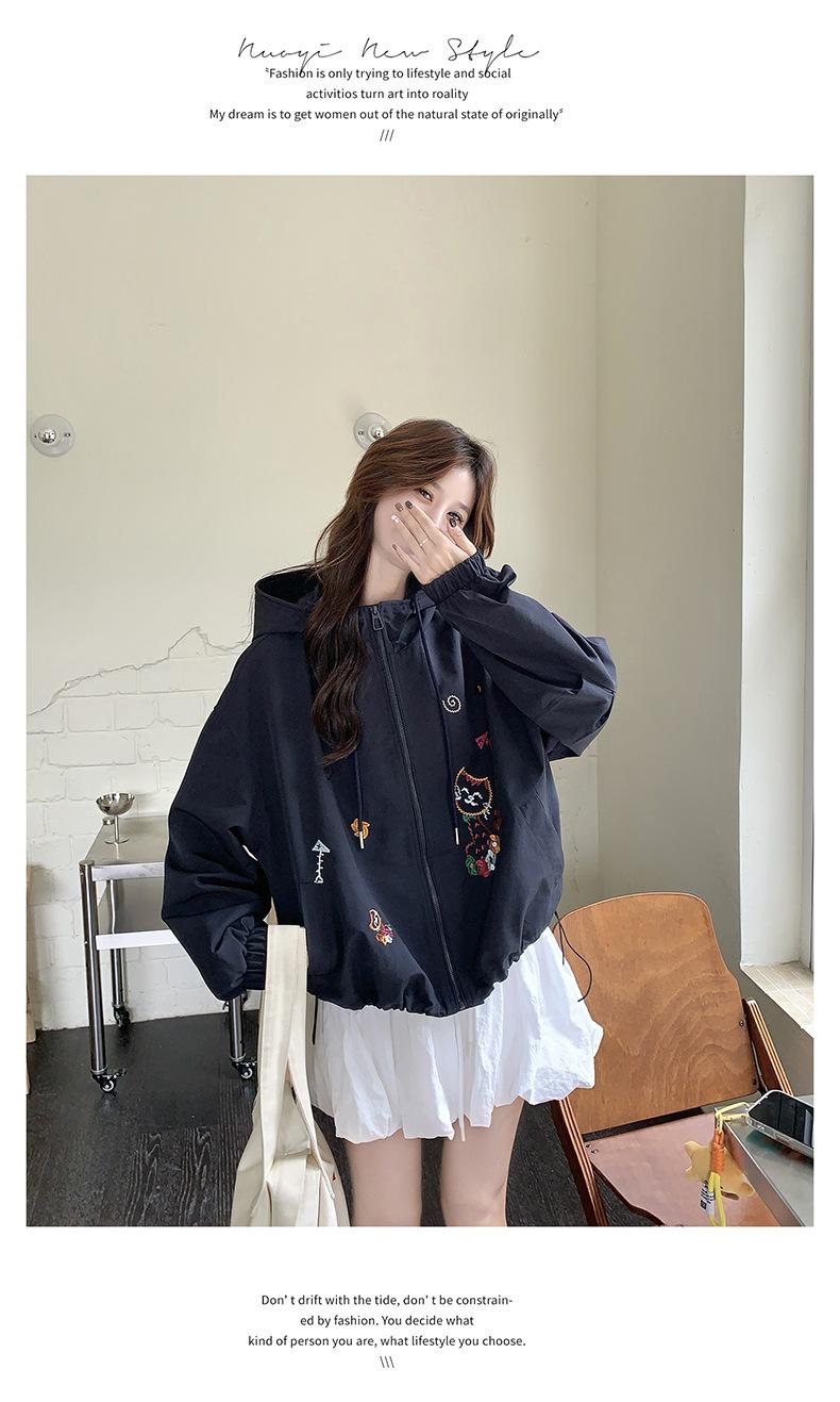 Chaqueta Corta Casual Super Guapa con Bordado y Capucha para Mujer 2025 Otoño Nueva Talla Pequeña Chaqueta Top Versátil y a la Moda
