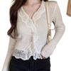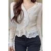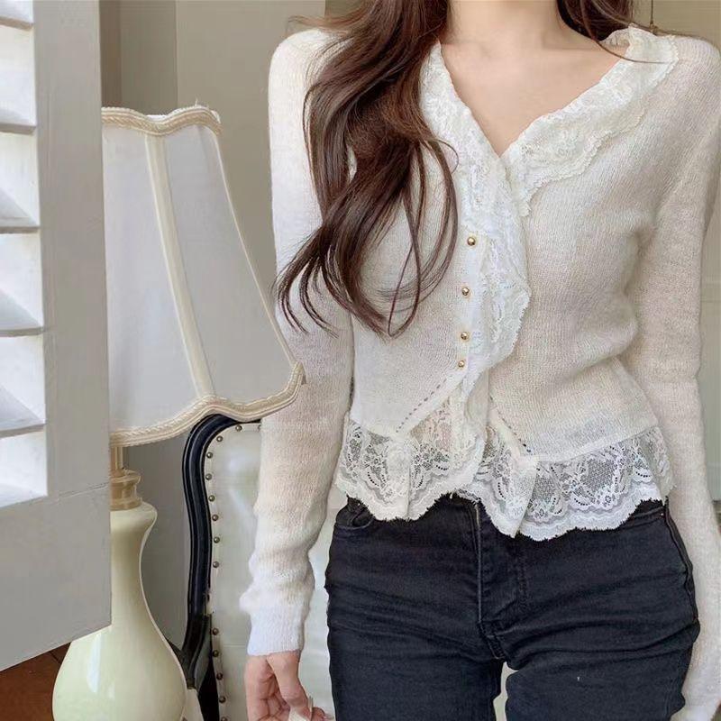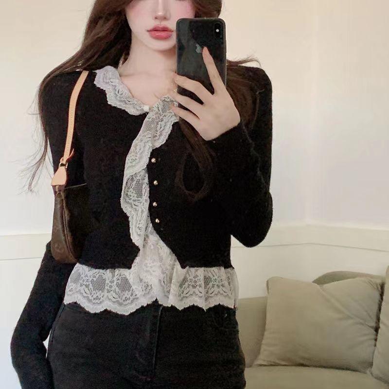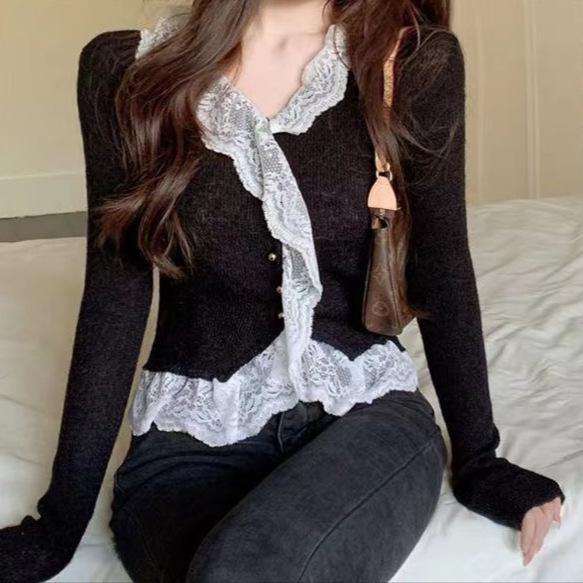 Nuevo Suéter Cárdigan Mujer Primavera Otoño Invierno Encaje Patchwork Interior Corto Tejido Camiseta Base Mujer Manga Larga