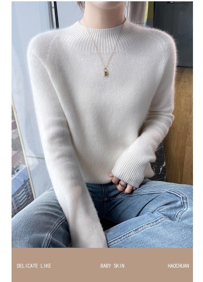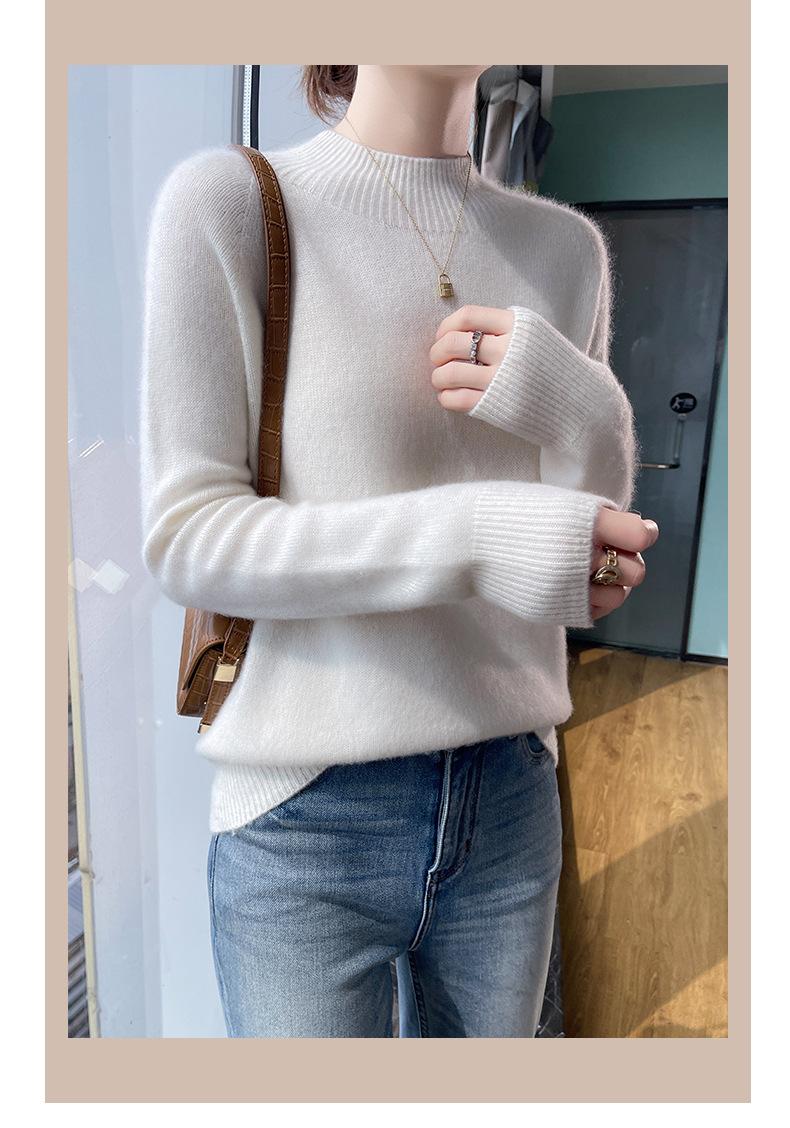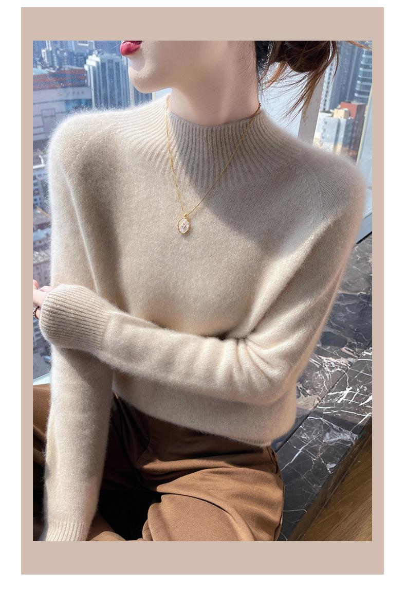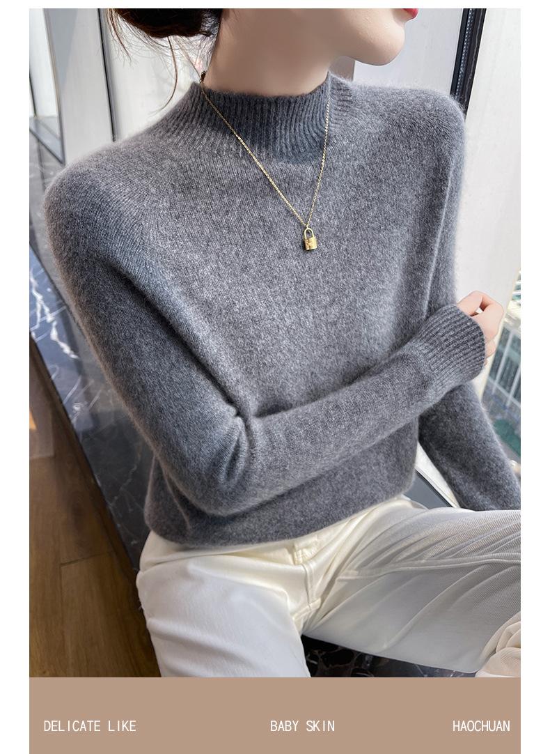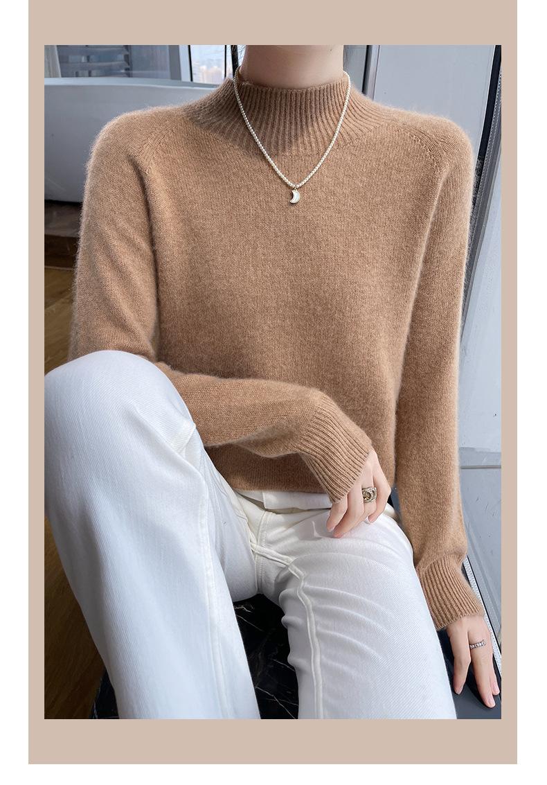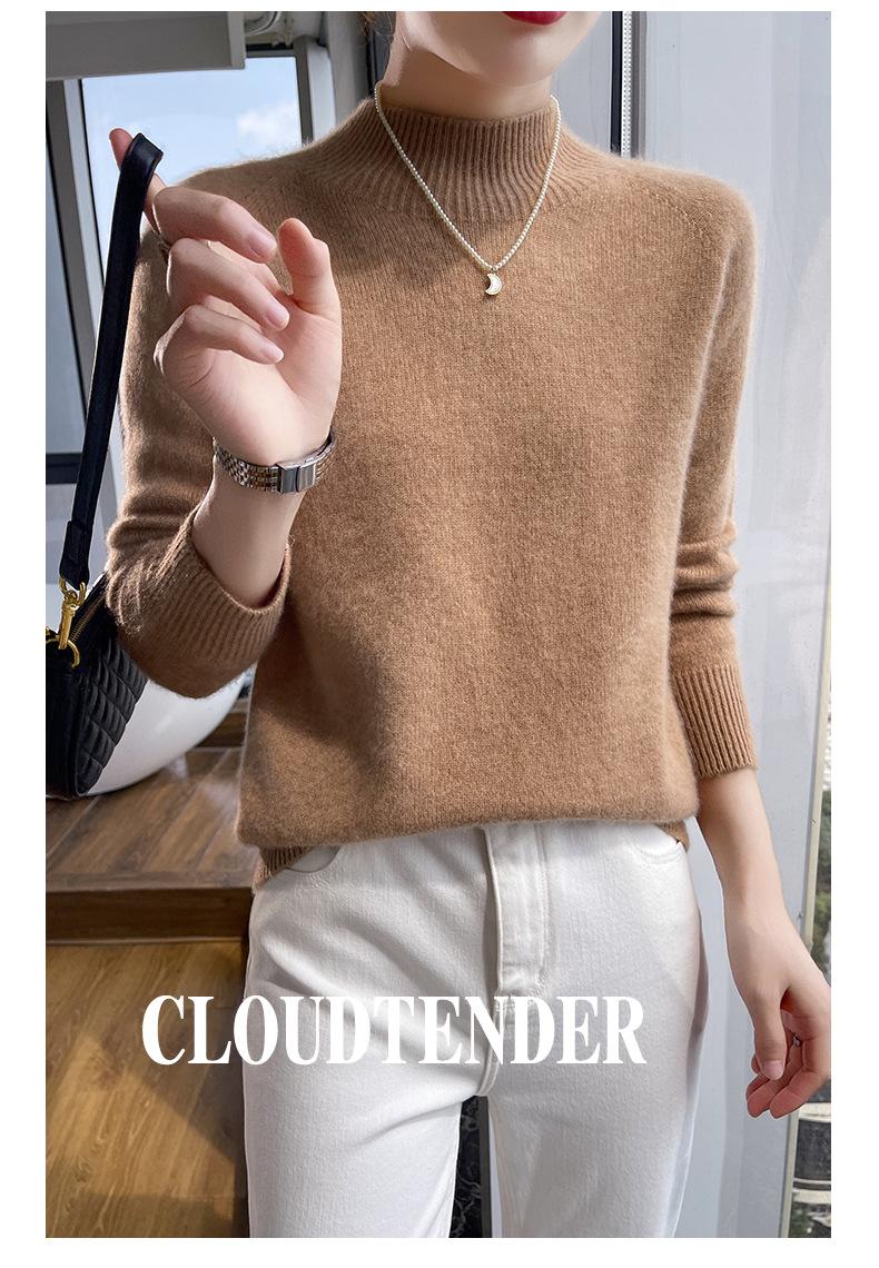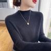 Grueso 100% Lana Nuevo Otoño Invierno Mujer Cuello Semi-Alto Ajustado Suéter Básico Versátil Tejido Exterior Moda