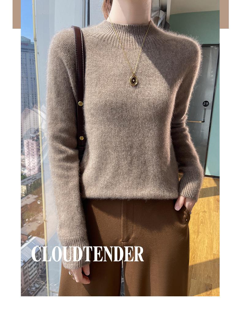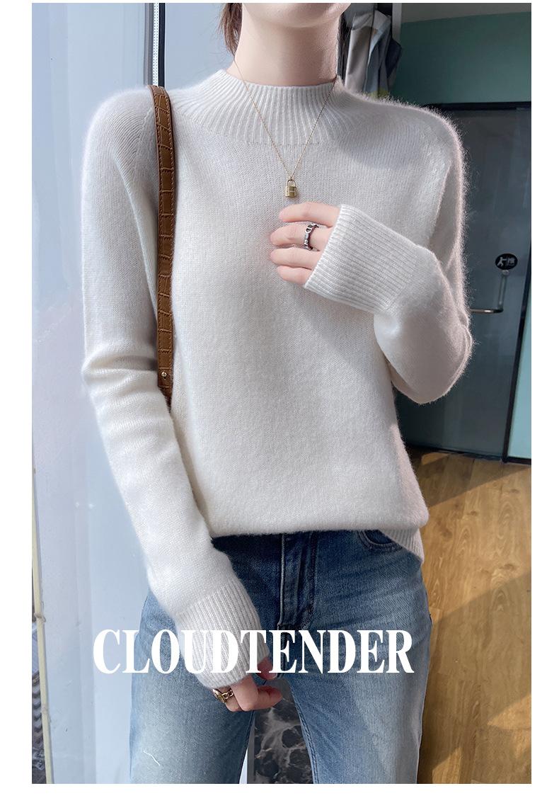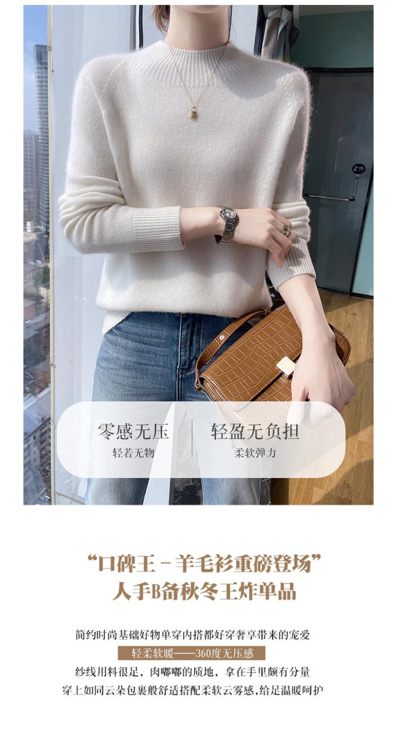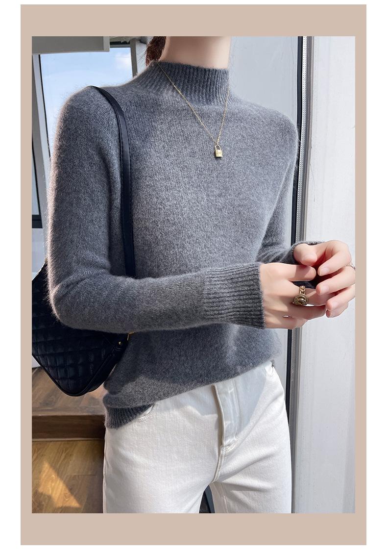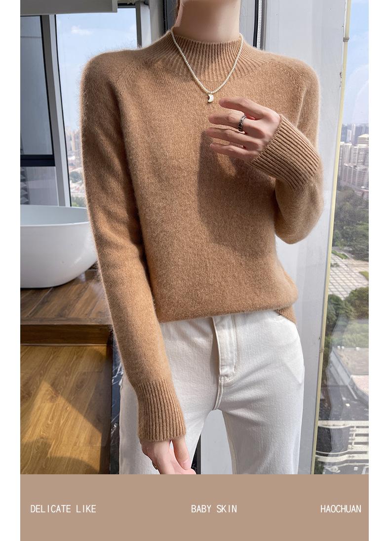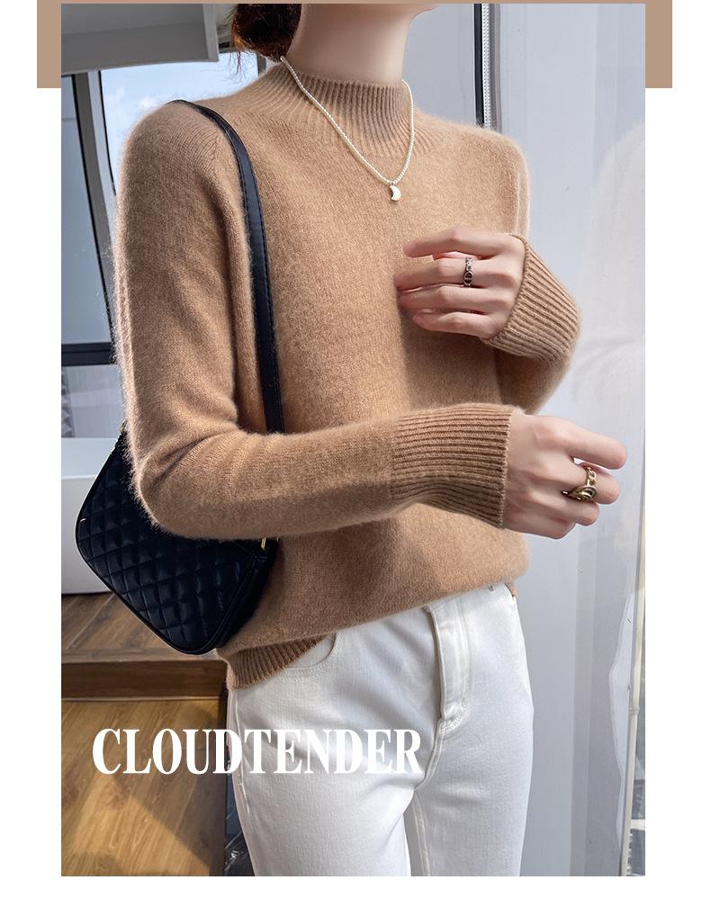 Grueso 100% Lana Nuevo Otoño Invierno Mujer Cuello Semi-Alto Ajustado Suéter Básico Versátil Tejido Exterior Moda
