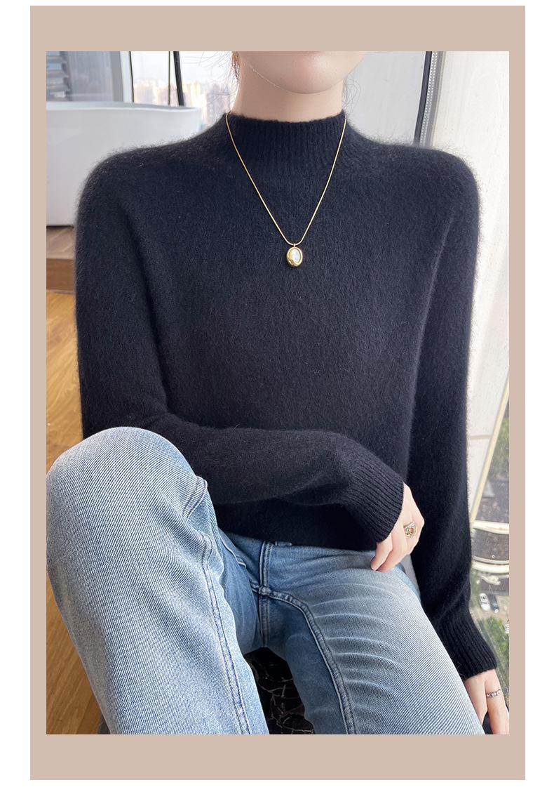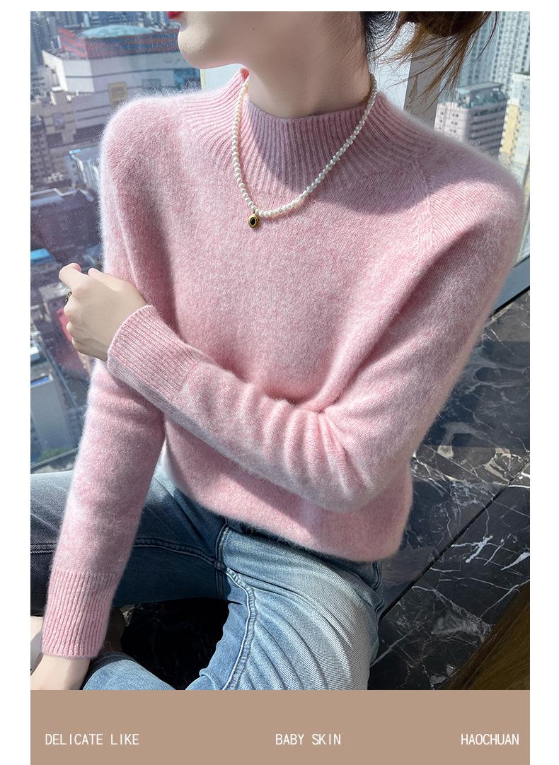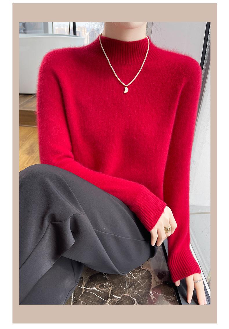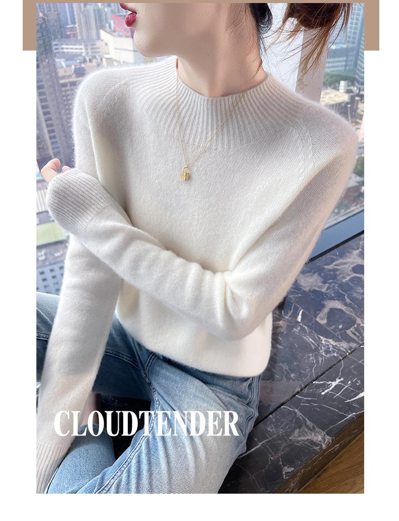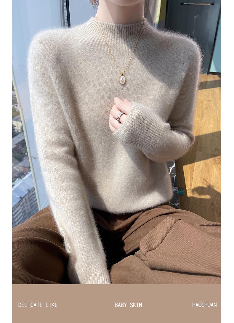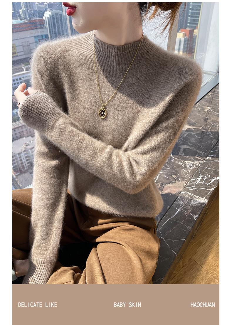Grueso 100% Lana Nuevo Otoño Invierno Mujer Cuello Semi-Alto Ajustado Suéter Básico Versátil Tejido Exterior Moda