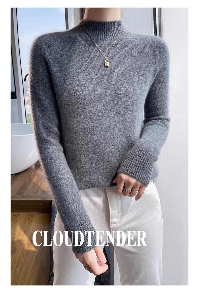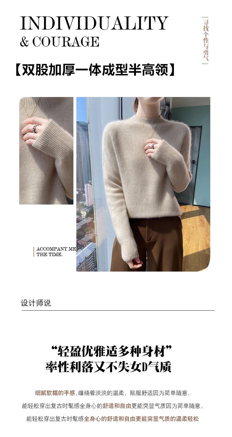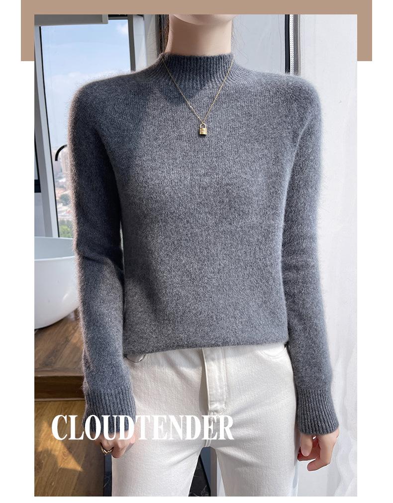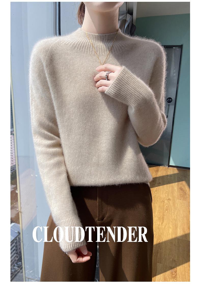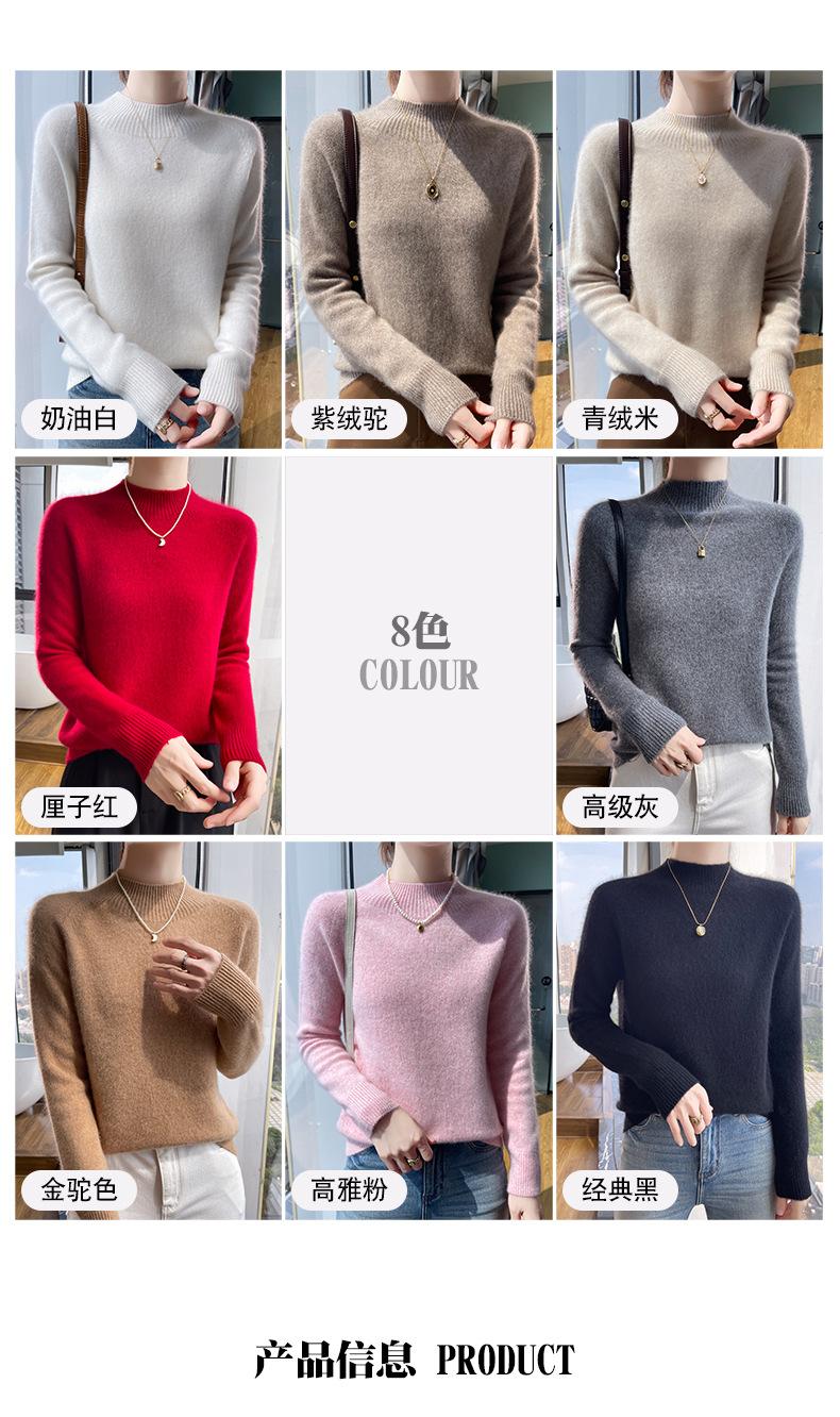 Grueso 100% Lana Nuevo Otoño Invierno Mujer Cuello Semi-Alto Ajustado Suéter Básico Versátil Tejido Exterior Moda