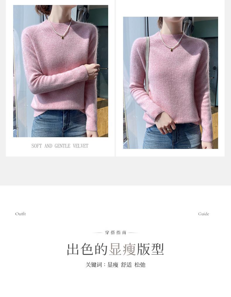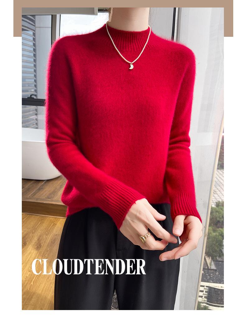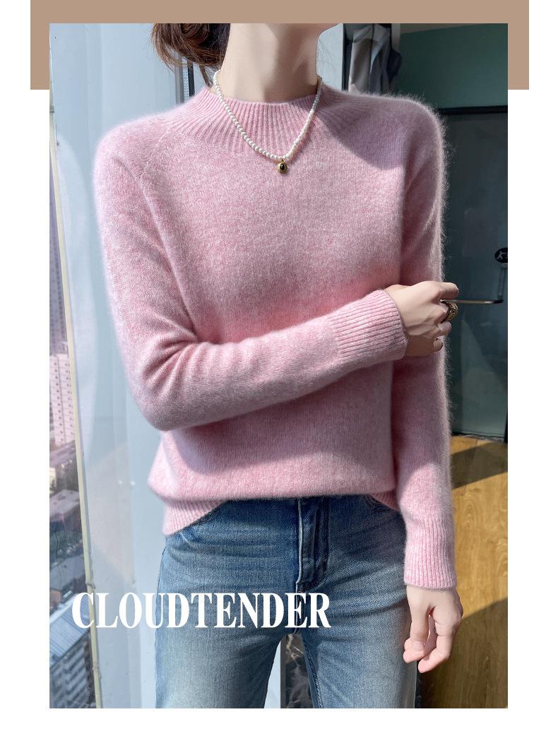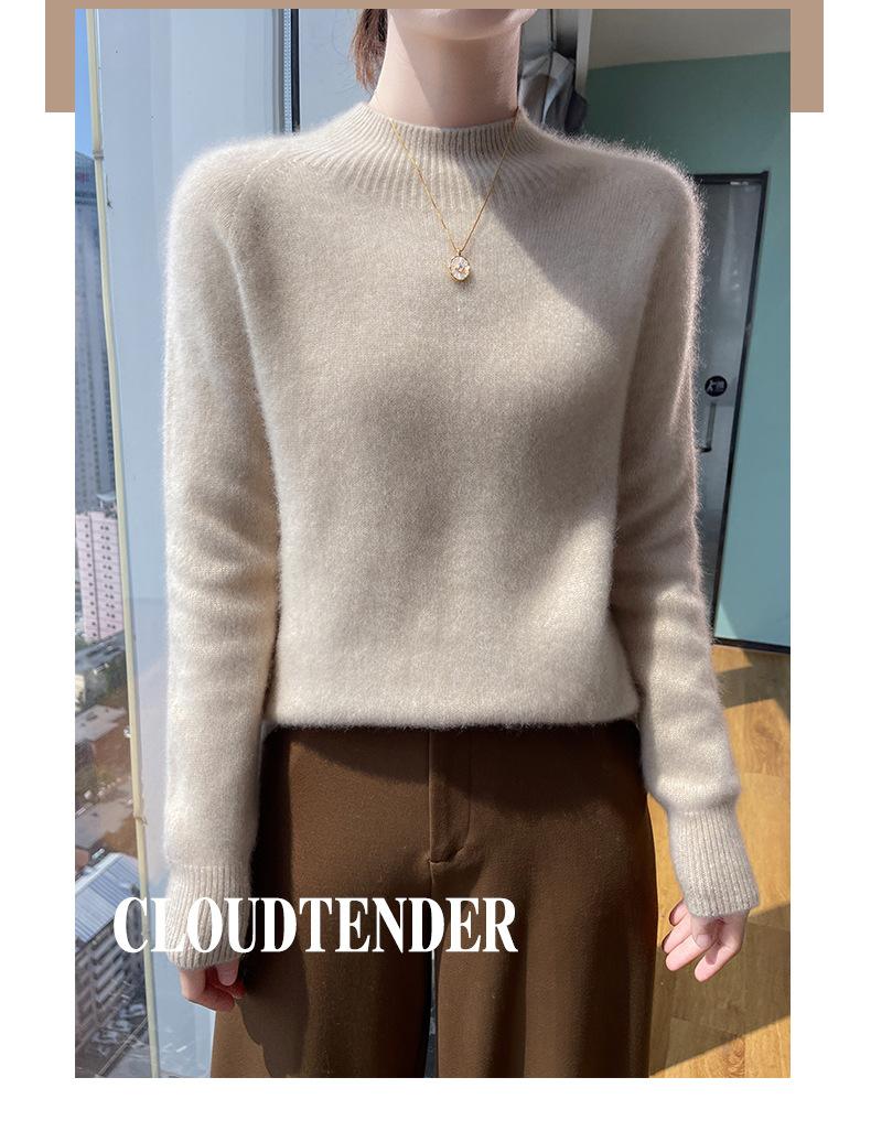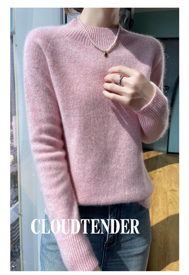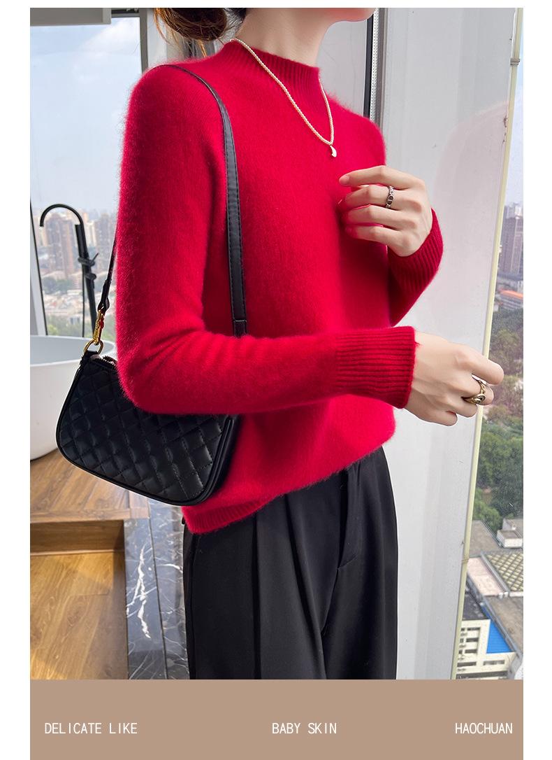 Grueso 100% Lana Nuevo Otoño Invierno Mujer Cuello Semi-Alto Ajustado Suéter Básico Versátil Tejido Exterior Moda