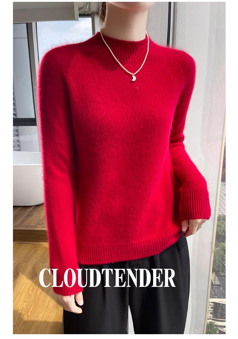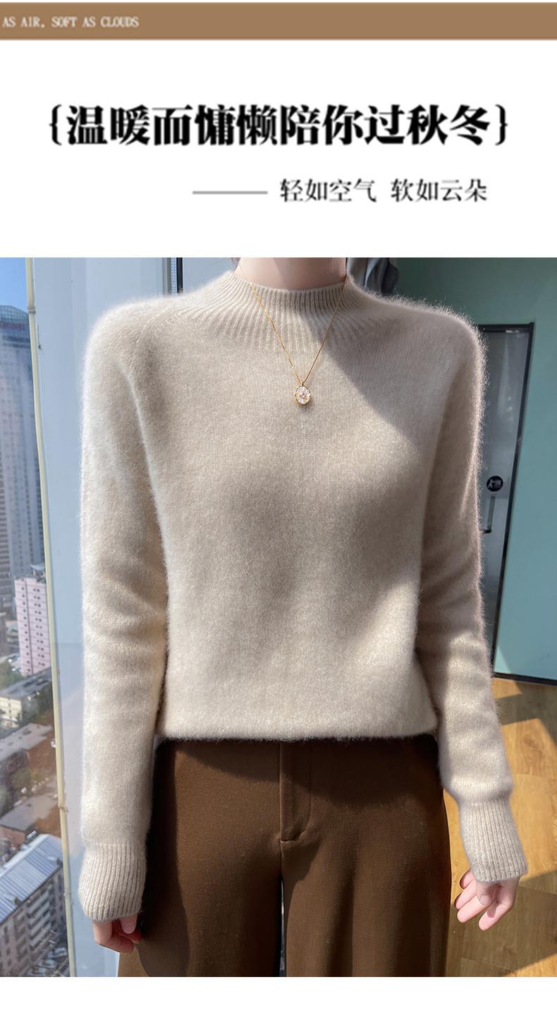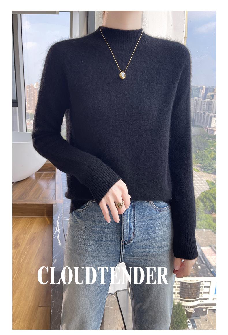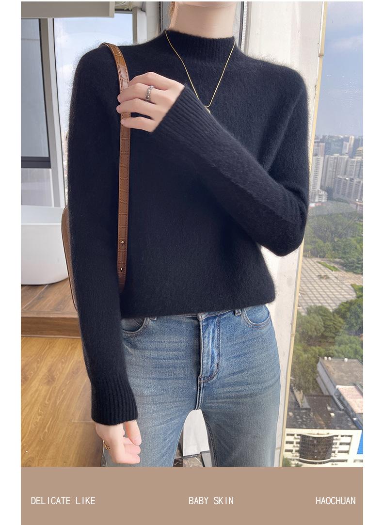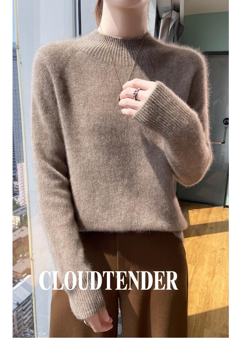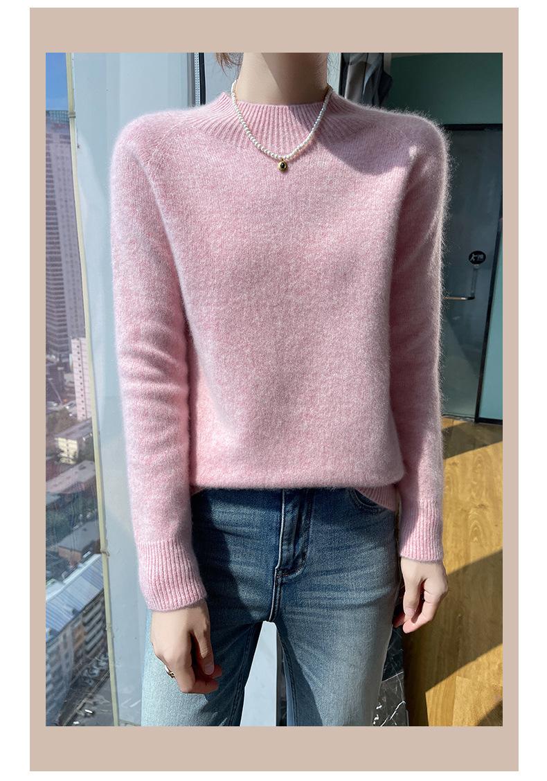 Grueso 100% Lana Nuevo Otoño Invierno Mujer Cuello Semi-Alto Ajustado Suéter Básico Versátil Tejido Exterior Moda
