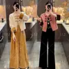 Nuevo Conjunto Otoño/Invierno Botón Chino Raya Rosa Manga Larga Pantalón Largo Diseño Sensorial Temperamento Moda 2025 Transfronterizo
