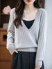 Suéter de Punto de Lana Pura con Cuello en V Profundo Estilo Francés de Manga Larga para Mujer 25 Otoño e Invierno Ajuste Holgado Adelgazante Prendas de Punto Simples Versátiles
