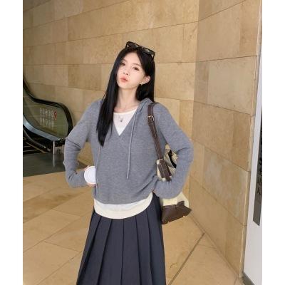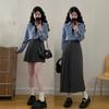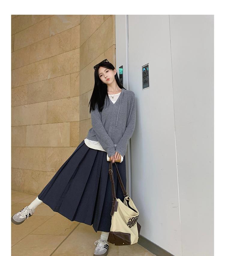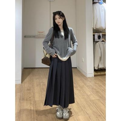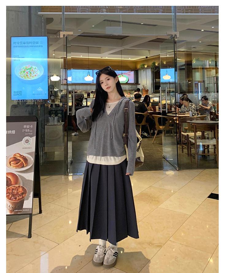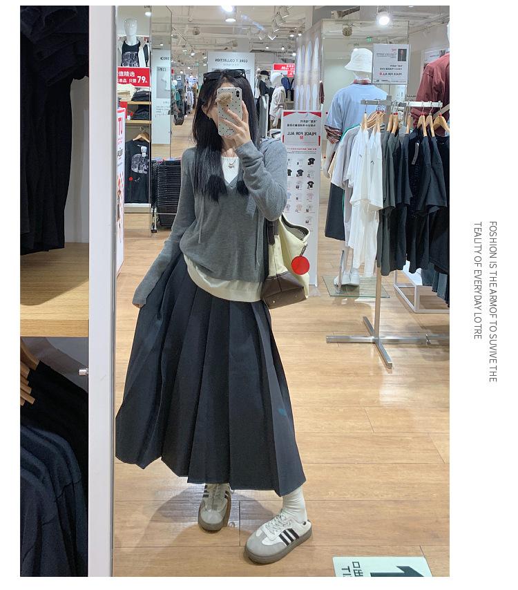 Talla Grande Otoño Nuevo Adelgazante Falso Dos Piezas Suelto Casual Top Versátil Falda Midi Falda Plisada Conjunto