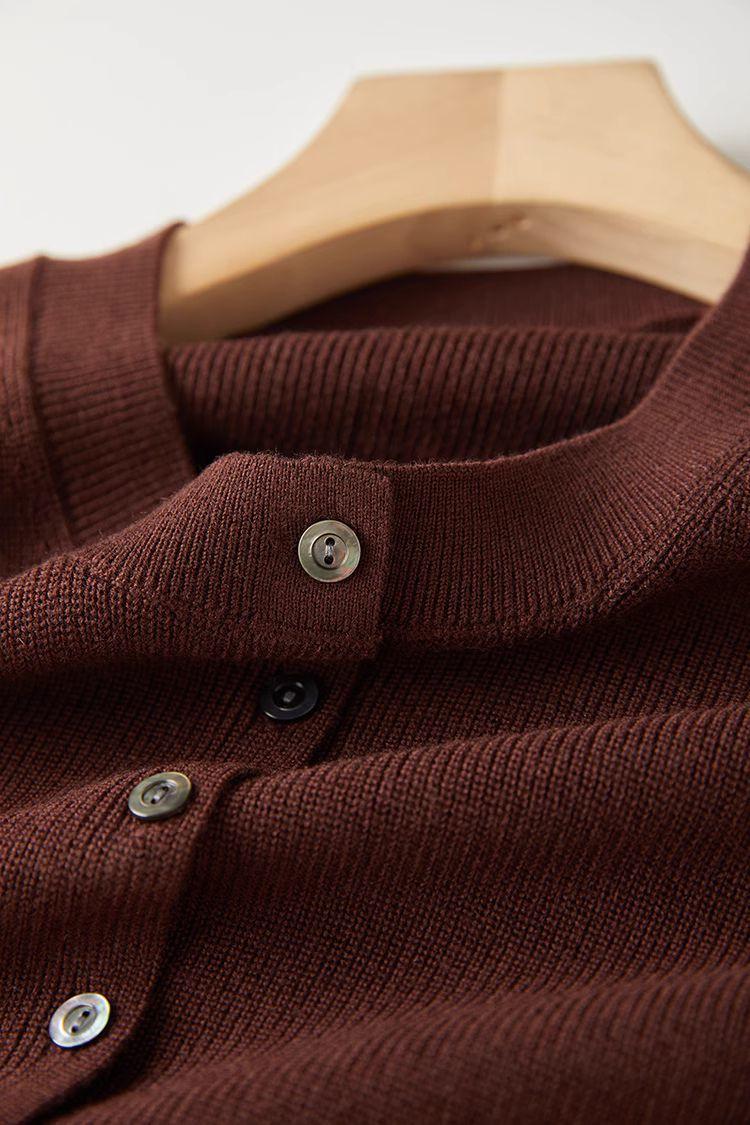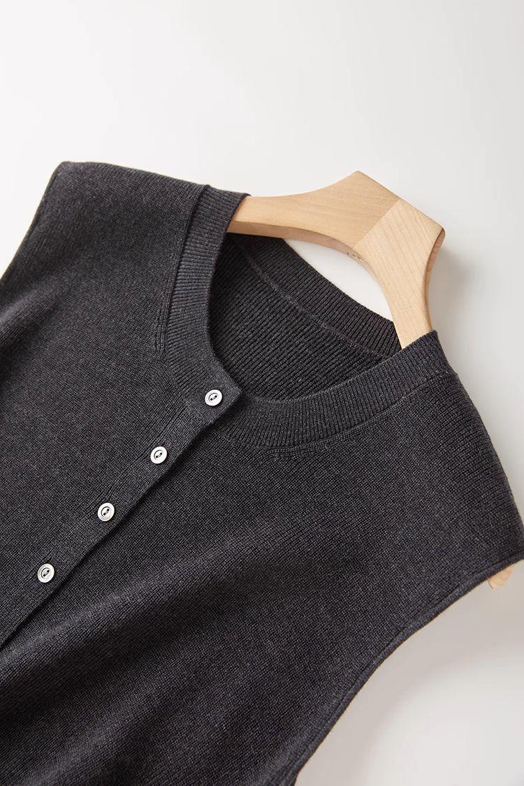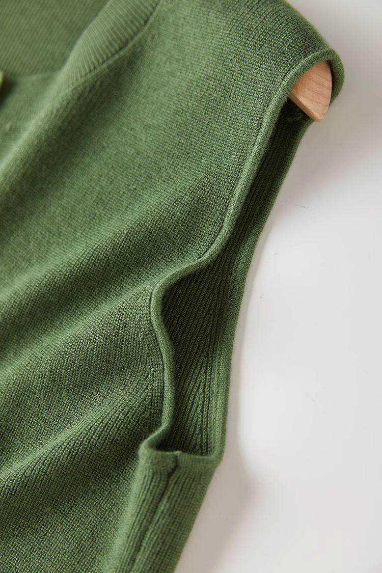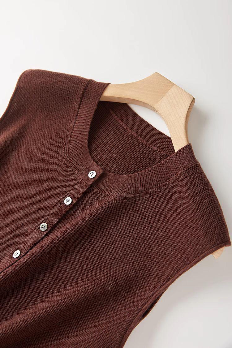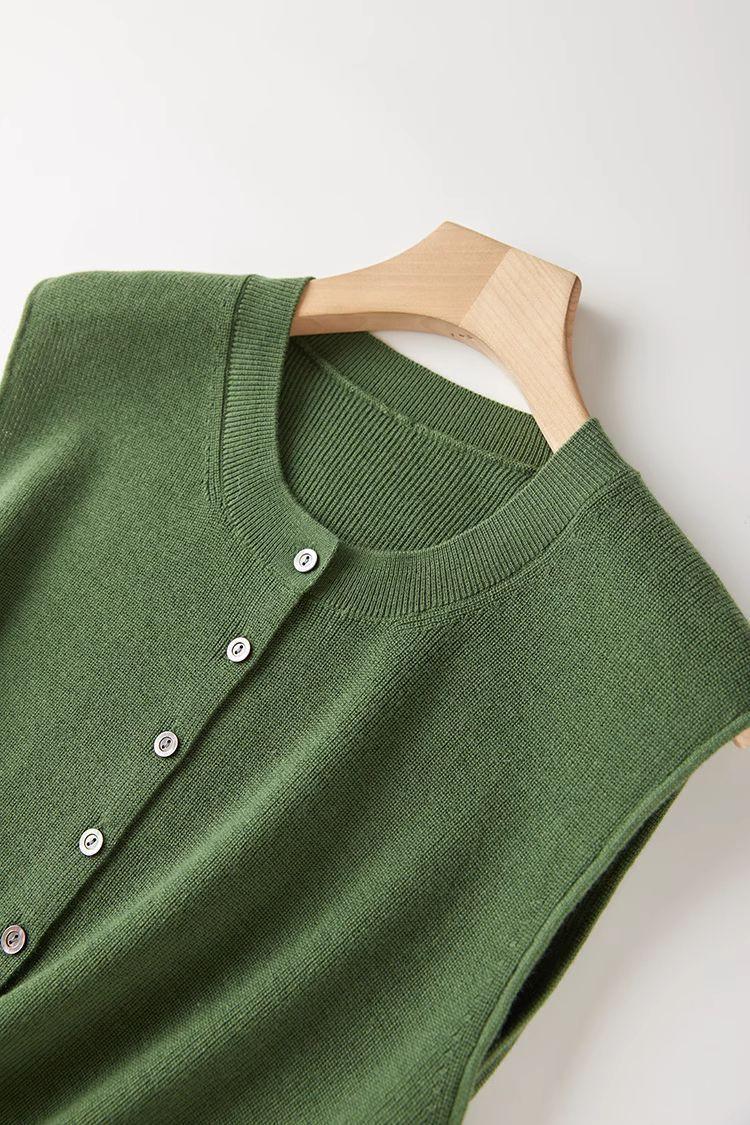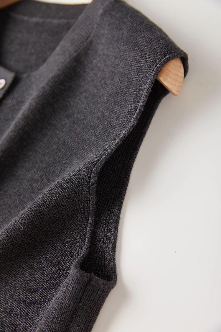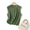 Chaleco de punto de canalé de 14 agujas de alta calidad, estilo old money, color sólido, cuello redondo, mezcla de lana, punto de botonadura simple