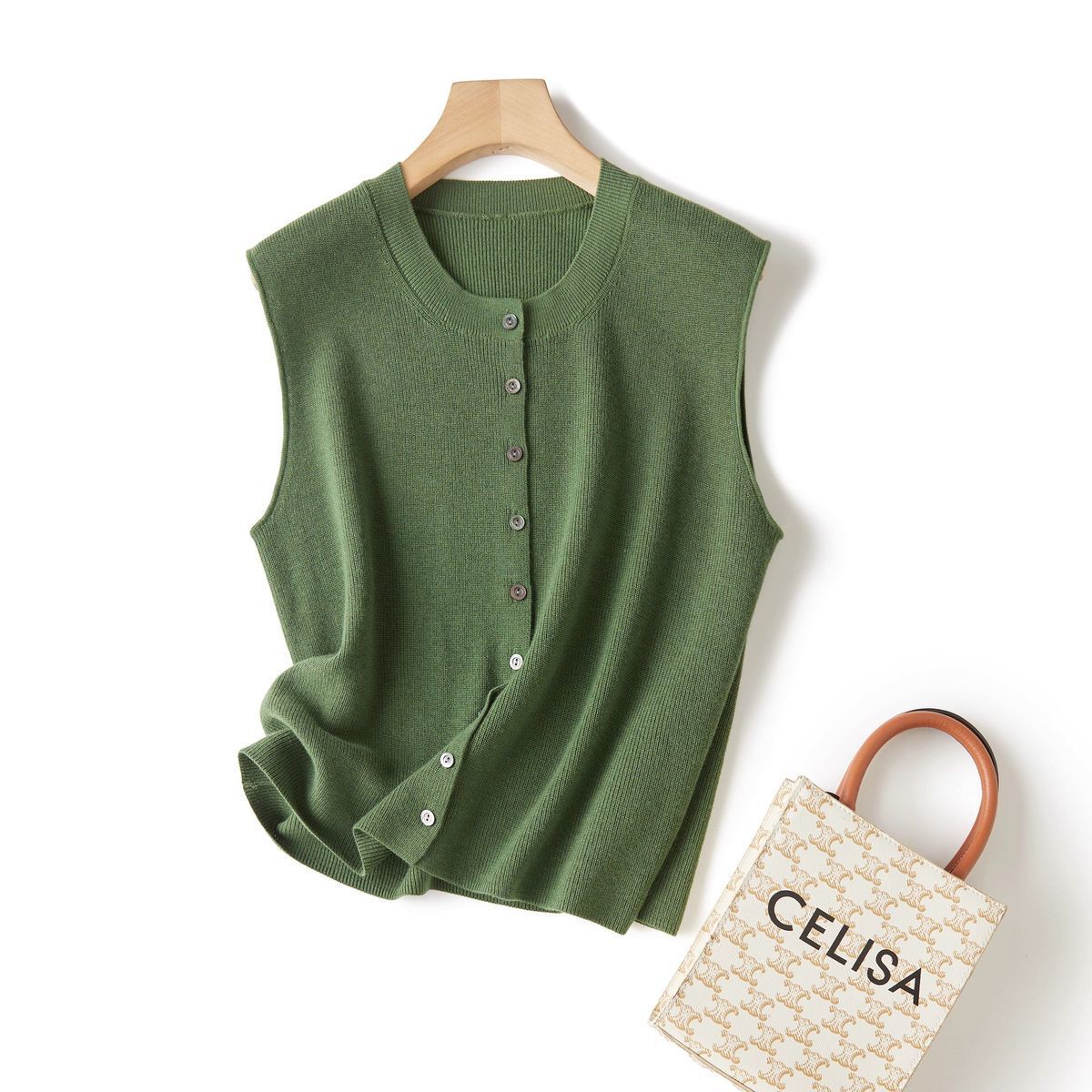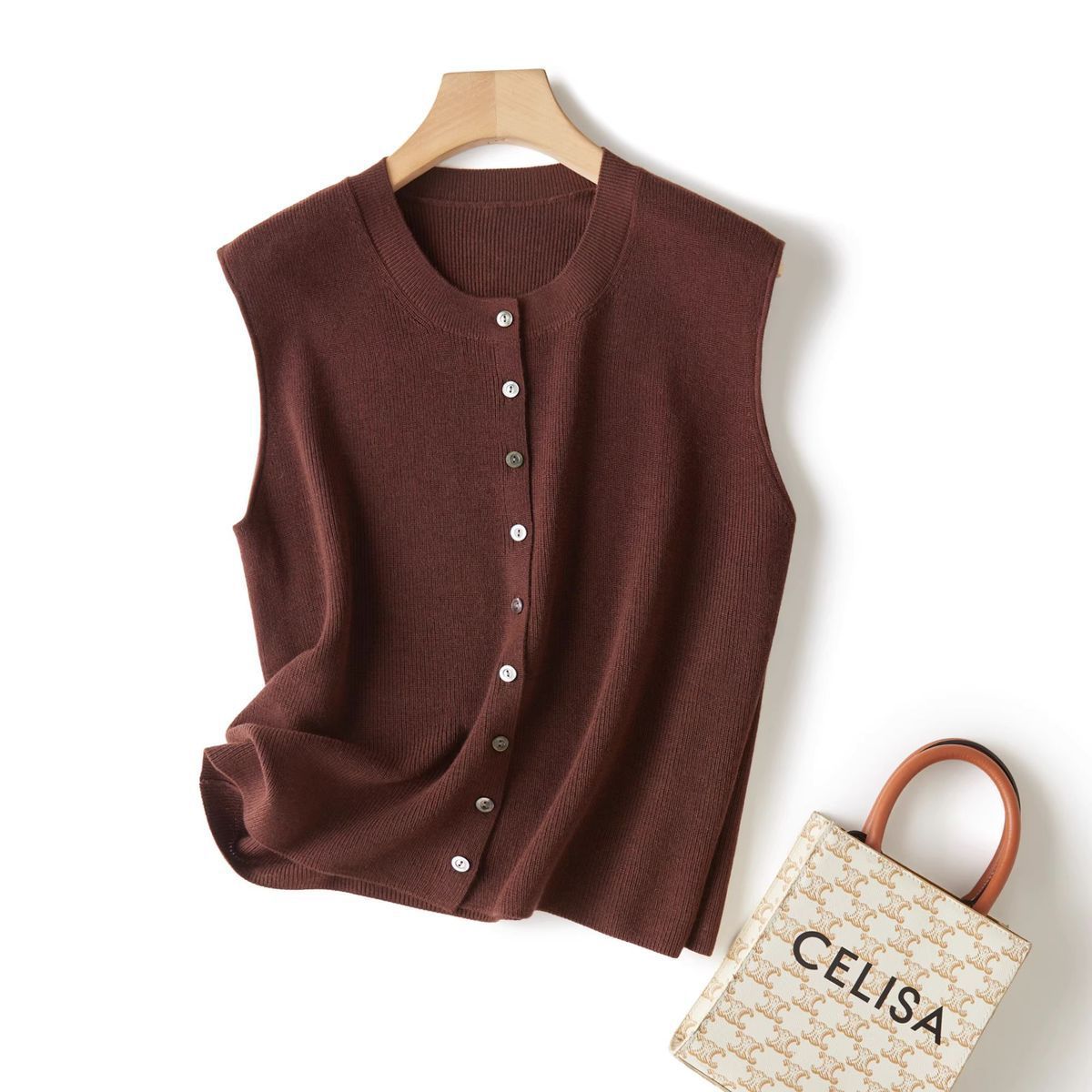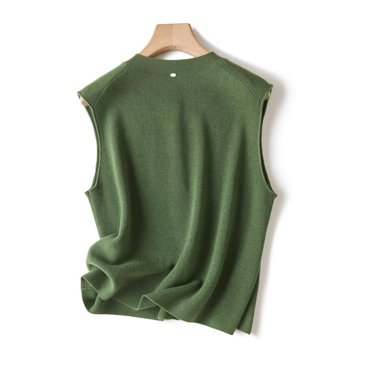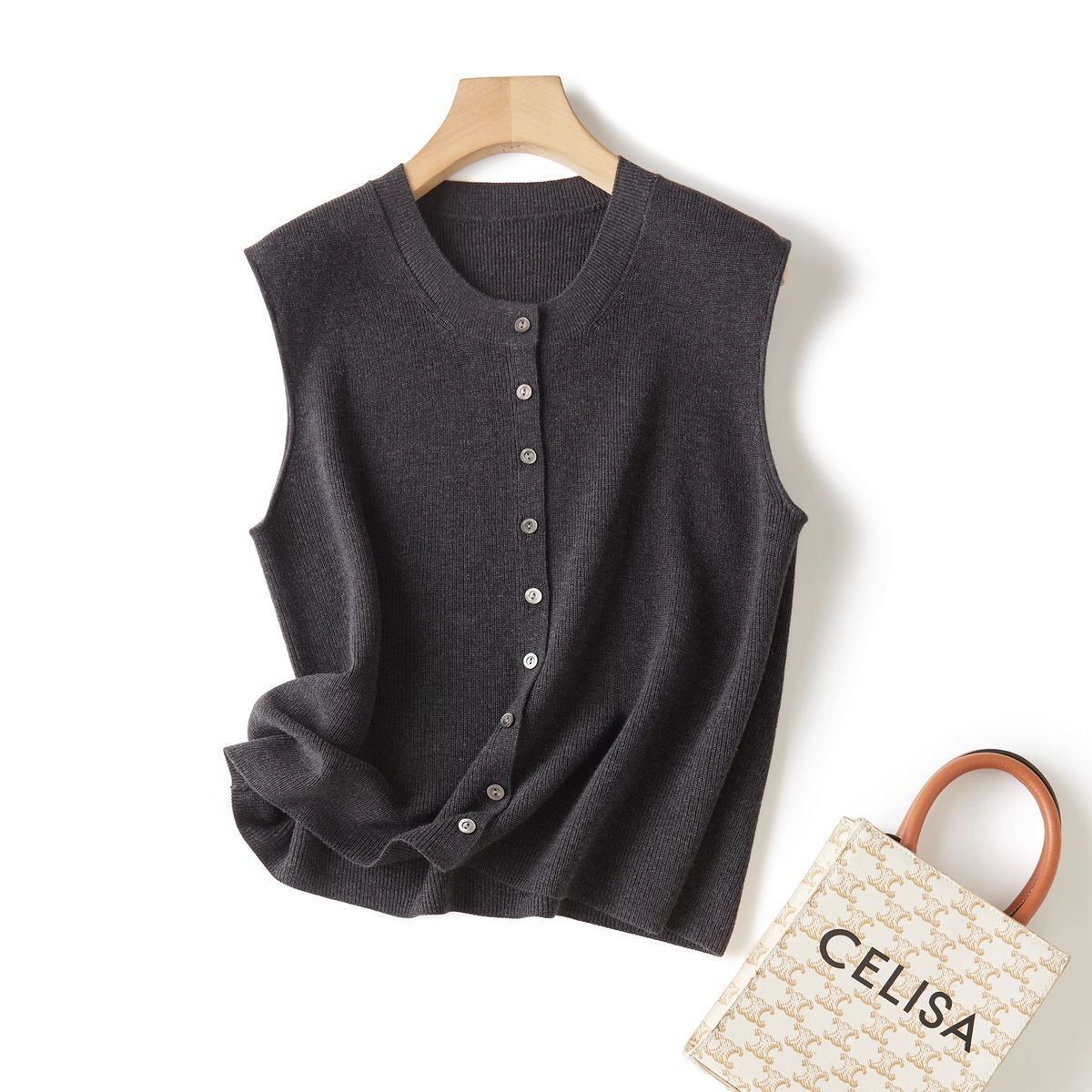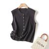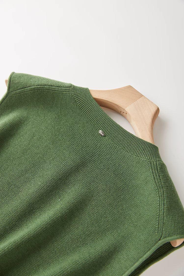 Chaleco de punto de canalé de 14 agujas de alta calidad, estilo old money, color sólido, cuello redondo, mezcla de lana, punto de botonadura simple