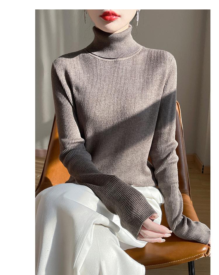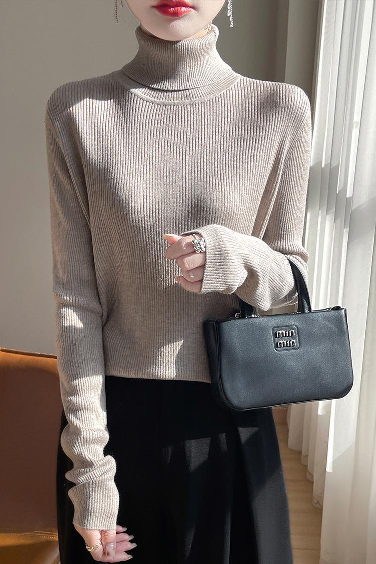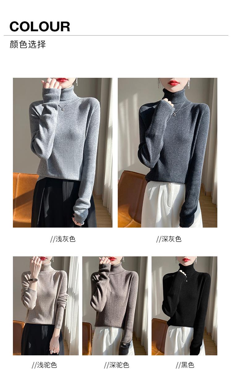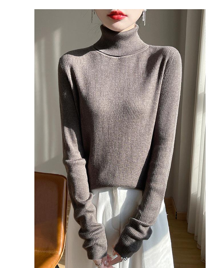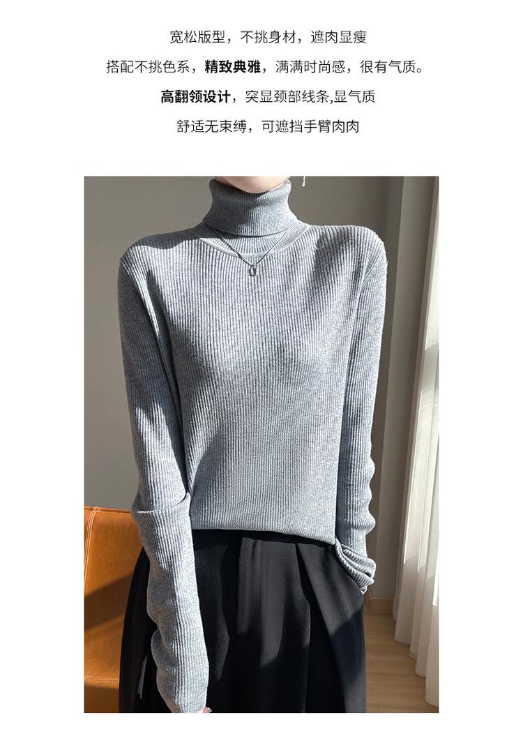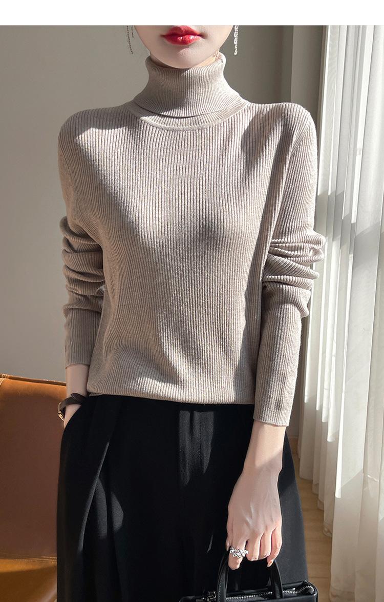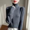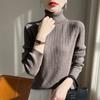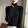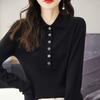 Suéter tipo camisa de lana peinada con solapa alta, tejido de punto, color liso, holgado, combinable, primavera 2025