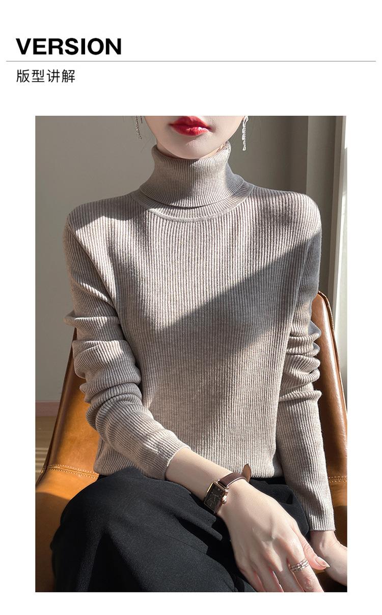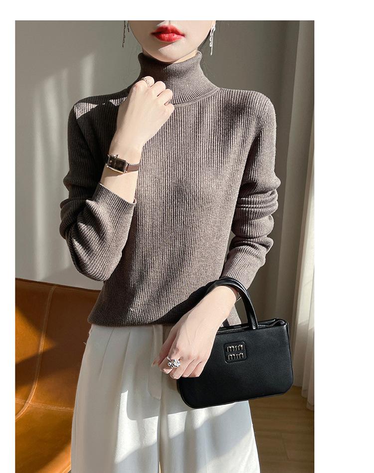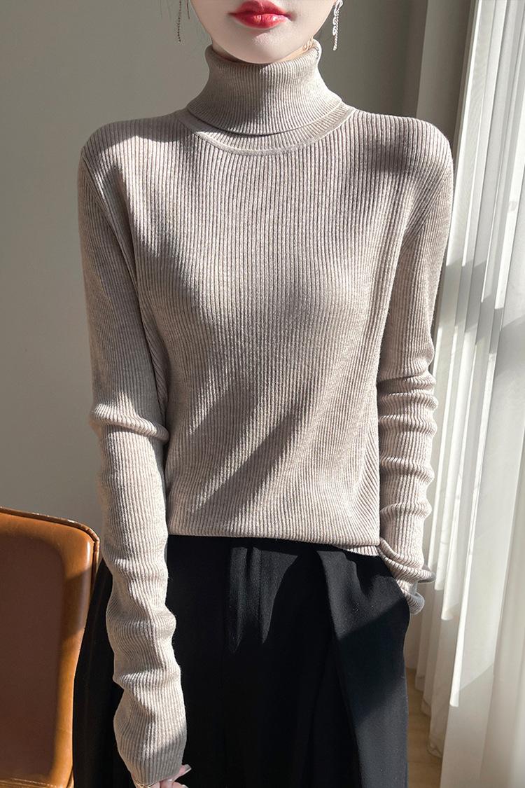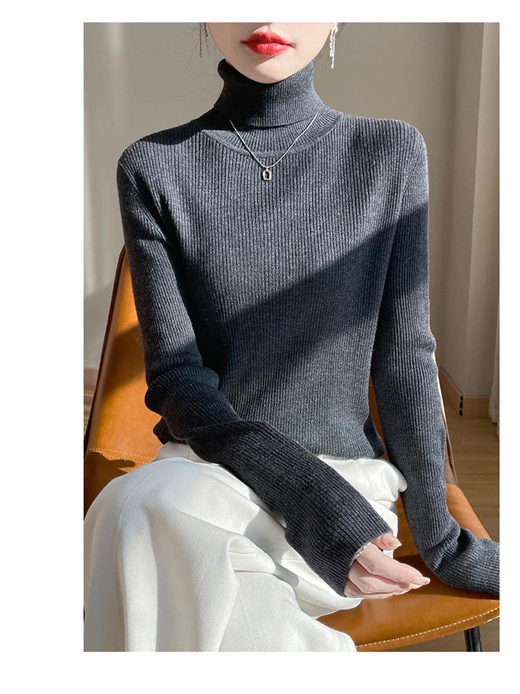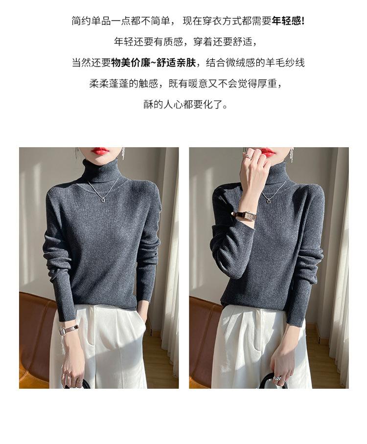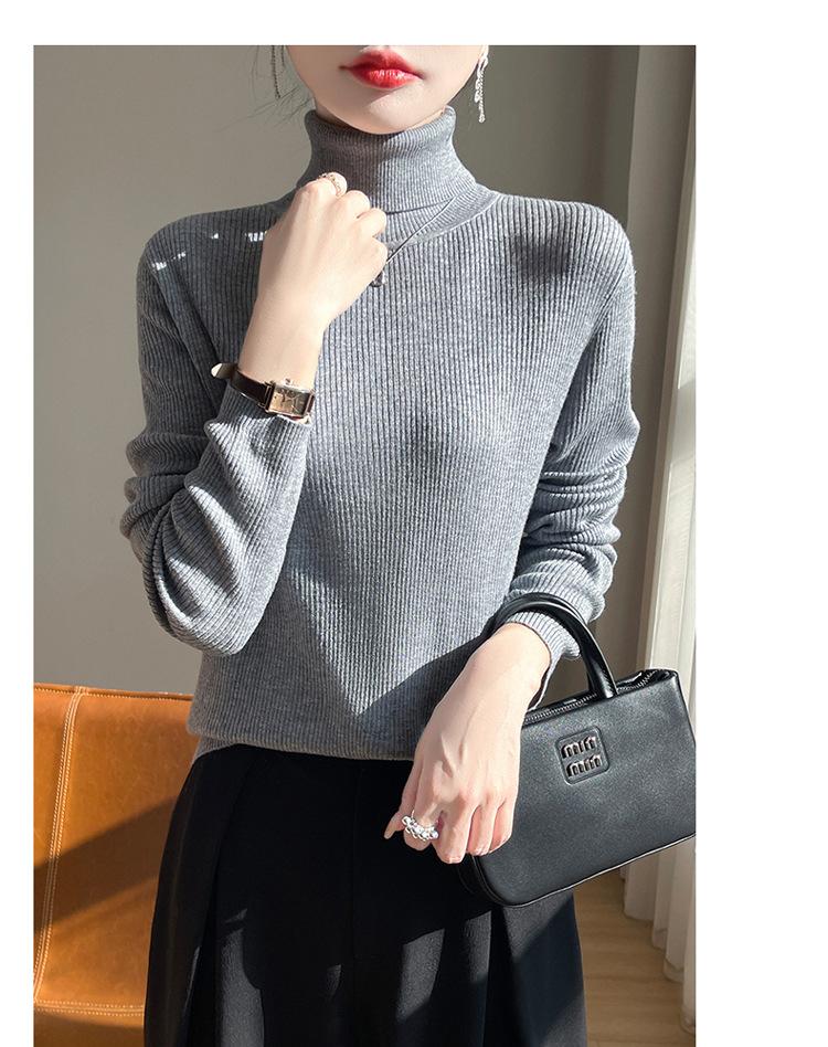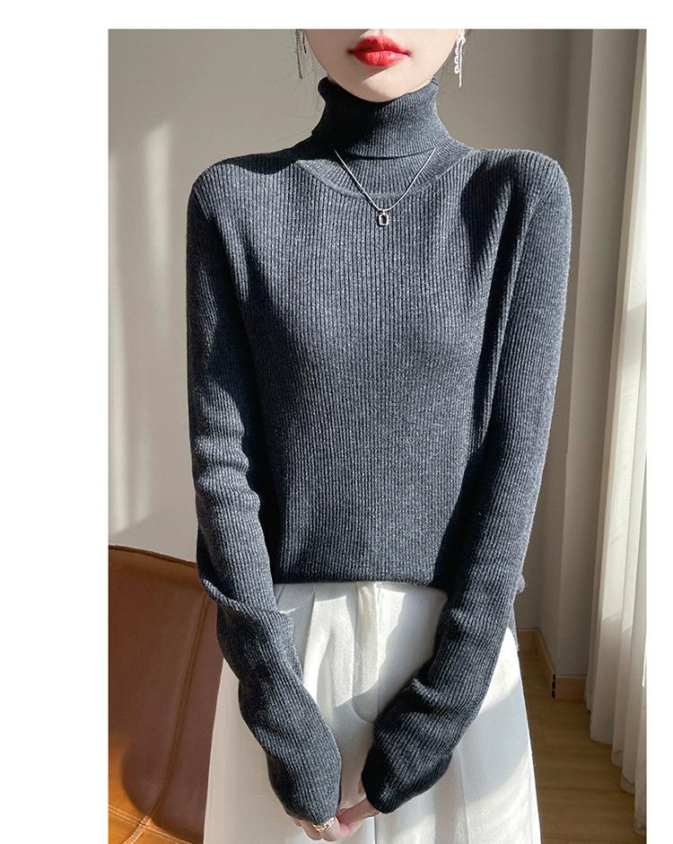 Suéter tipo camisa de lana peinada con solapa alta, tejido de punto, color liso, holgado, combinable, primavera 2025