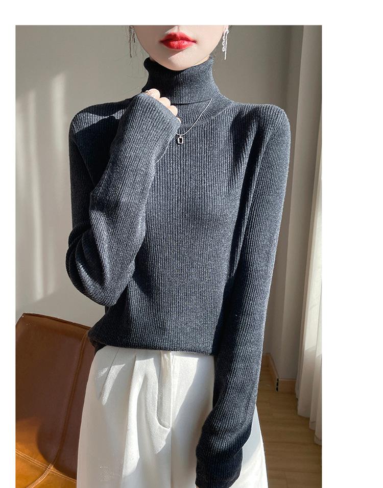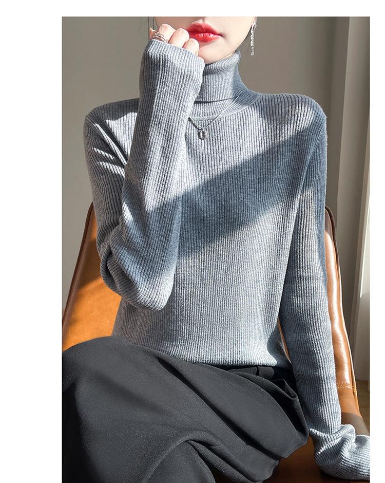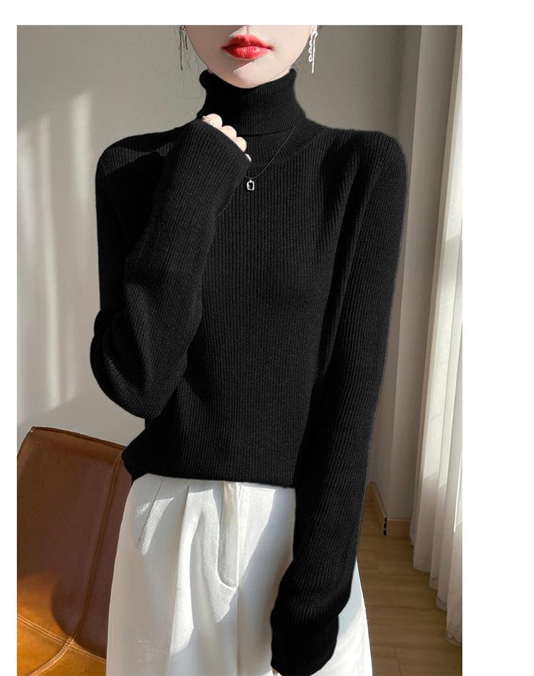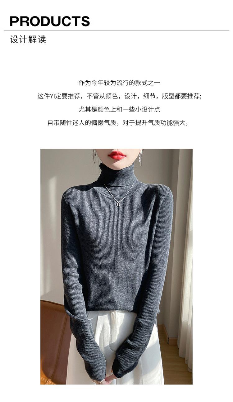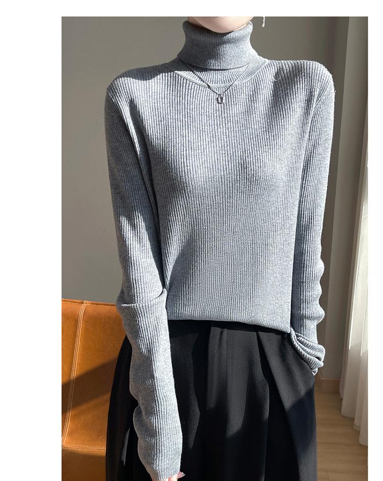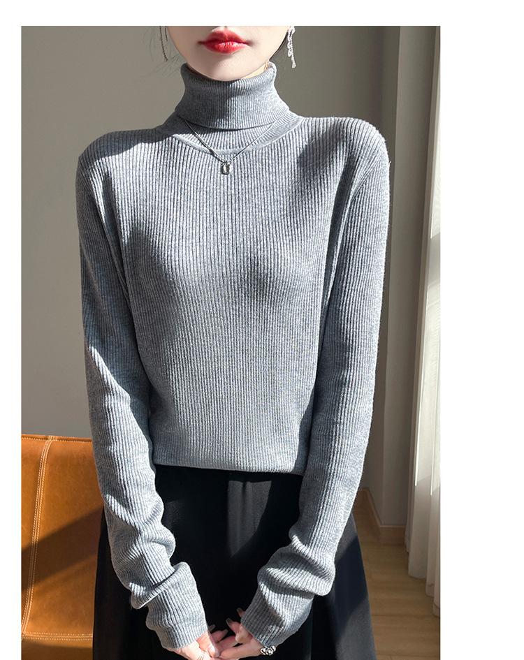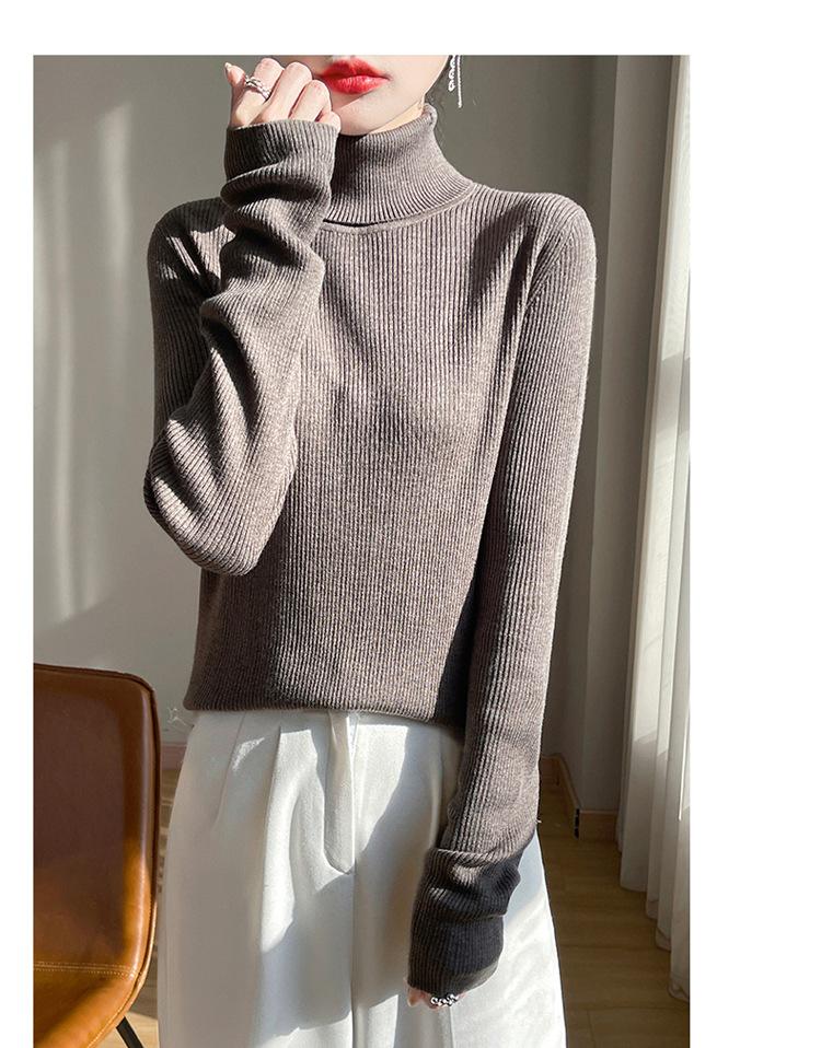 Suéter tipo camisa de lana peinada con solapa alta, tejido de punto, color liso, holgado, combinable, primavera 2025