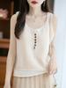 2025 Nuevo Tejido de Lana Pura para Mujer, Suéter de Cuello en U sin Mangas, Falso Dos Piezas, Holgado, Casual, Prenda Base de Punto