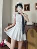 Vestido Coreano de Hombro Inclinado de Manga Corta para Mujer Verano Diseño Delgado Falda Línea A Estilo Petite Dulce y Picante Falda