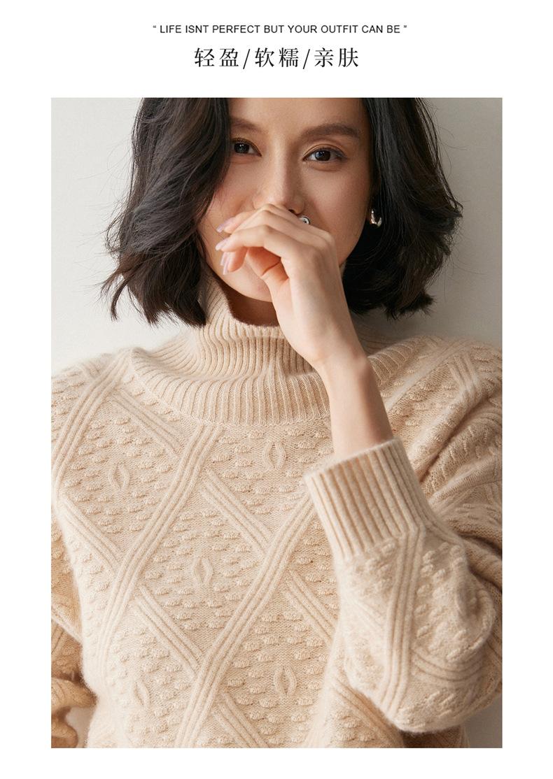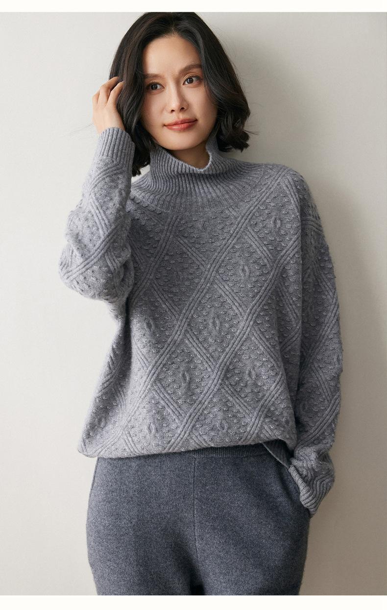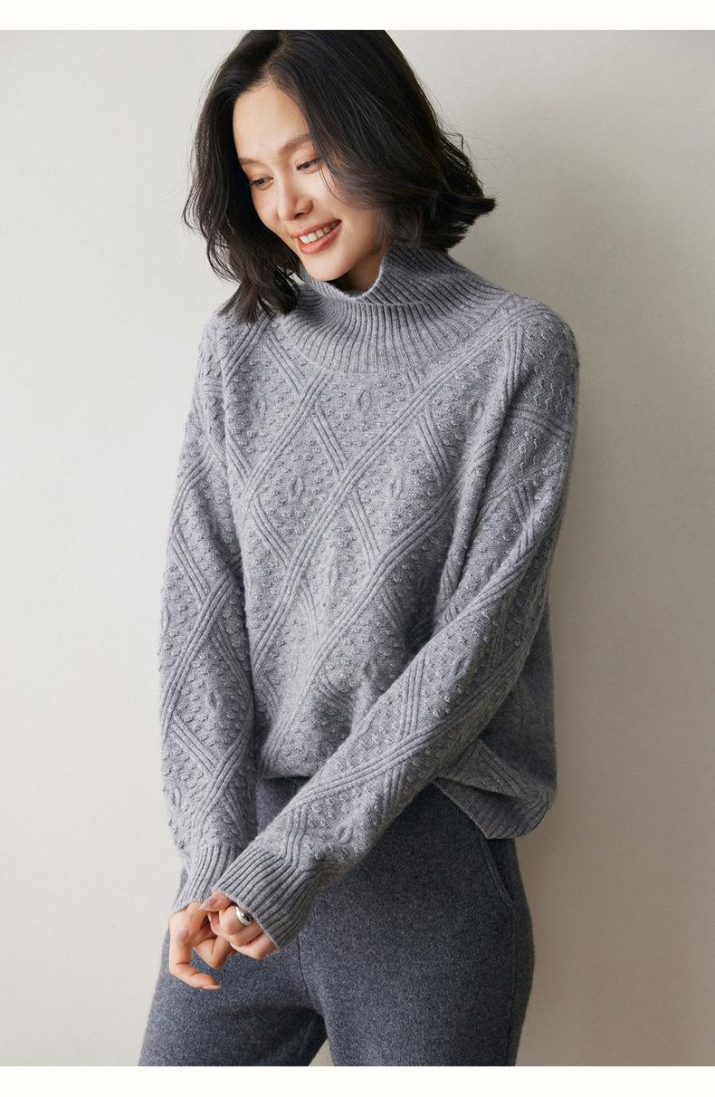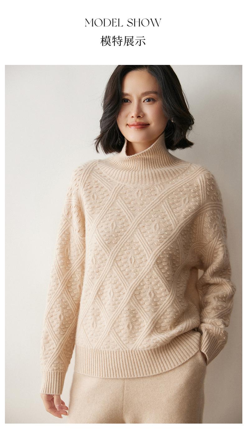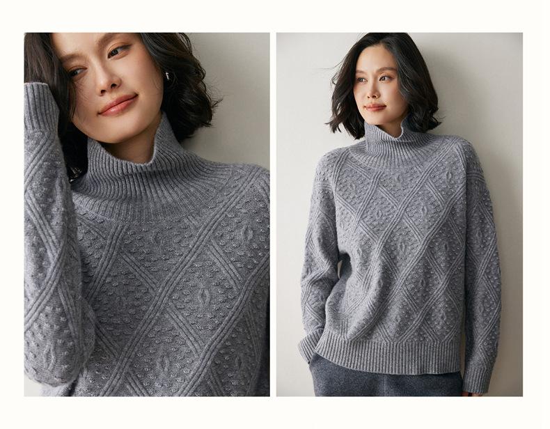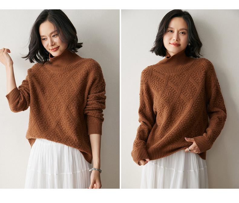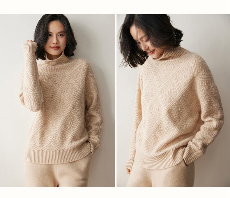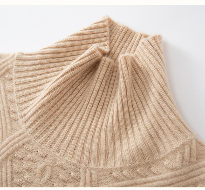 Invierno Nuevo Suéter Base de Lana de Cuello Alto para Mujer de Siete Agujas Grueso Suelto Tejido de Cable Cachemira Manga Larga