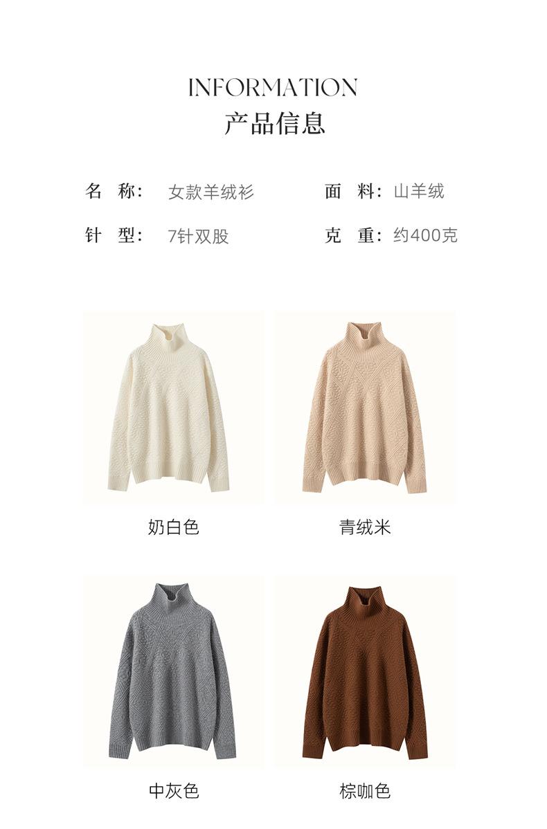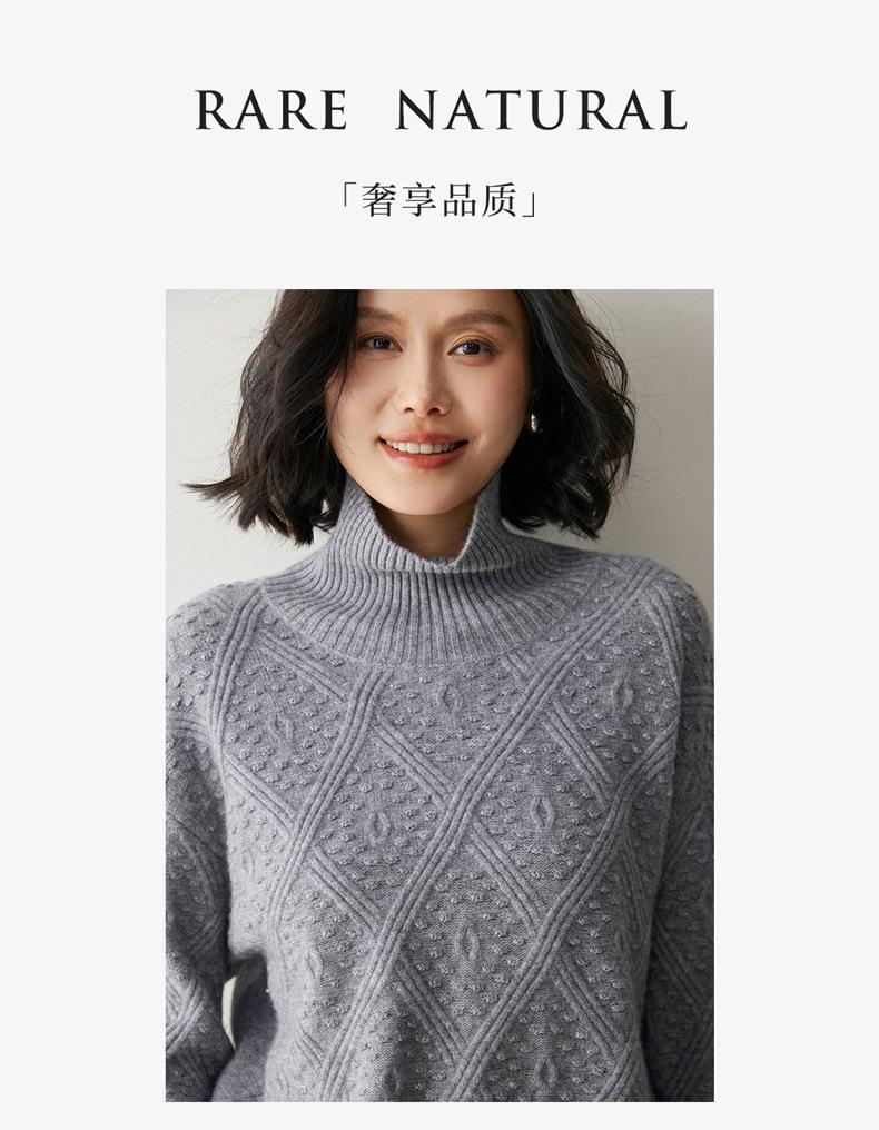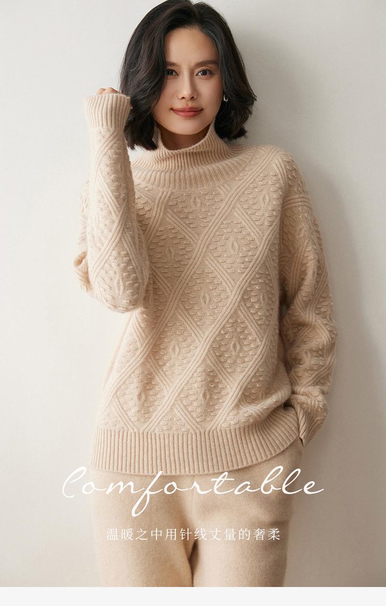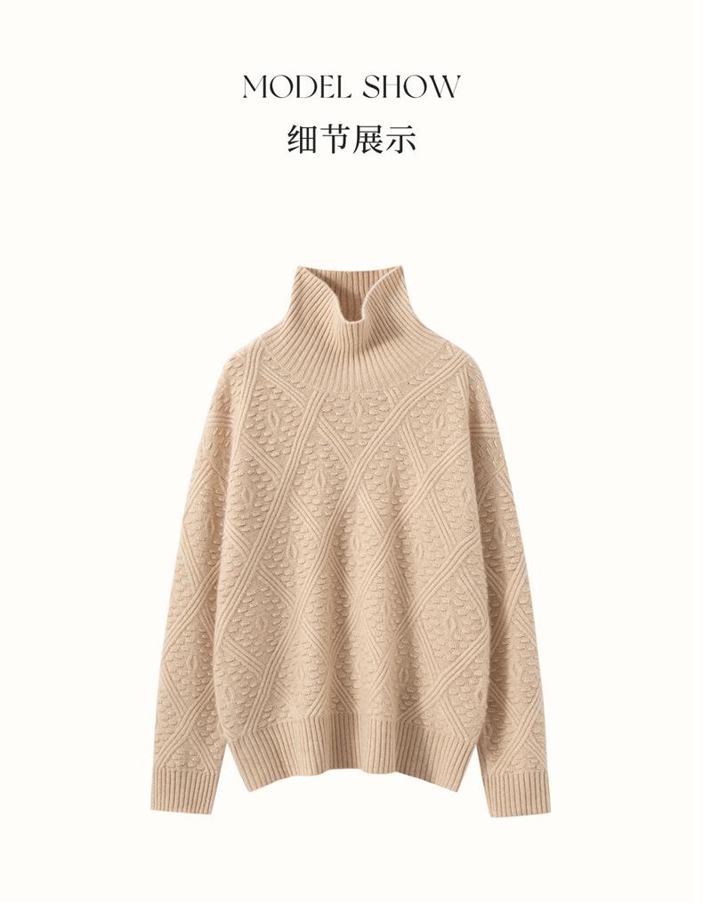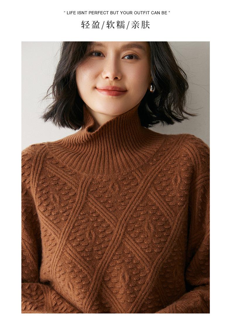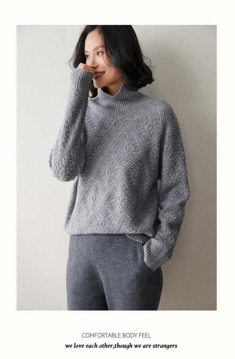 Invierno Nuevo Suéter Base de Lana de Cuello Alto para Mujer de Siete Agujas Grueso Suelto Tejido de Cable Cachemira Manga Larga