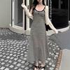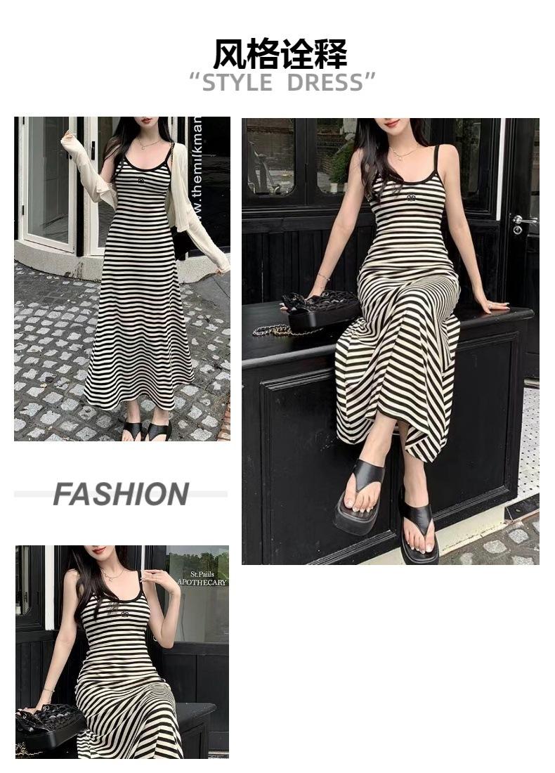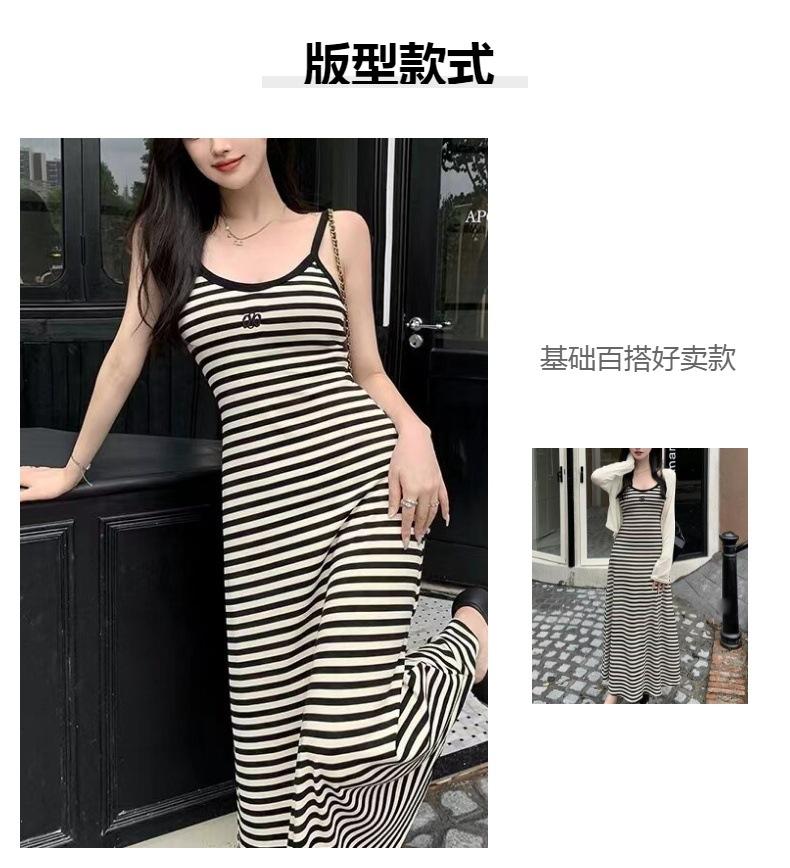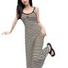 Vestido de tirantes a rayas talla grande para mujer, corte A, ajustado, para chica gordita, elástico, entallado, cadera, elegante, vestido largo