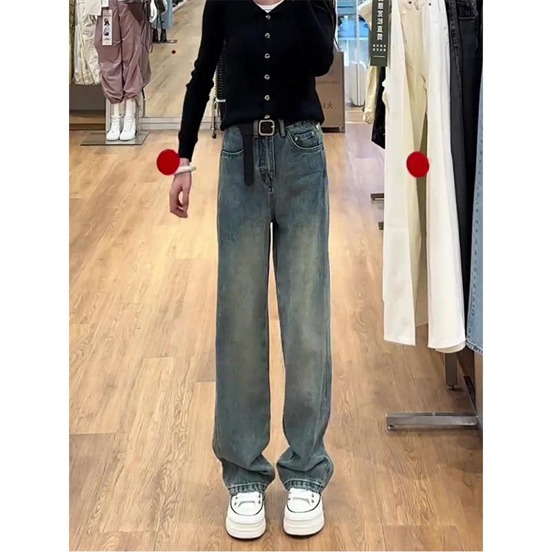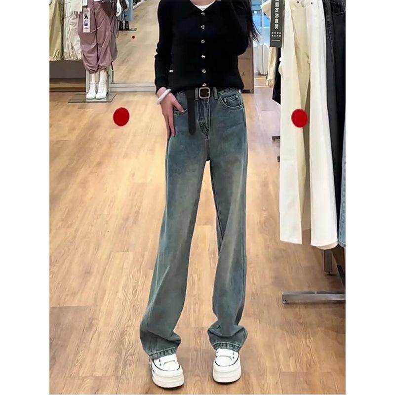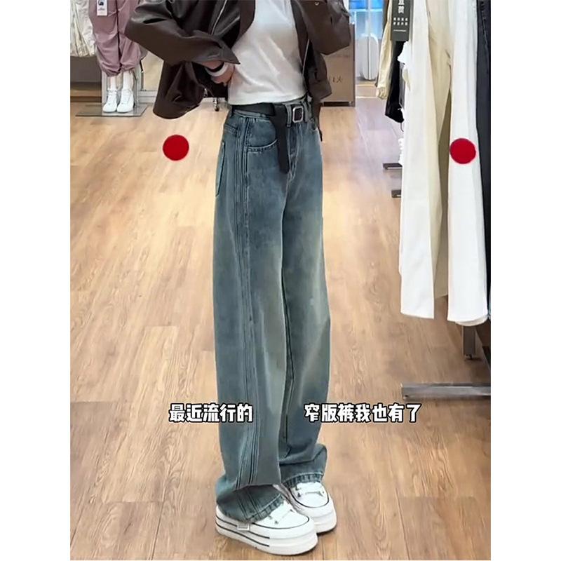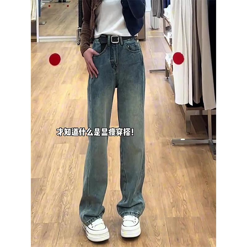 Jeans de cintura alta, pierna estrecha, pierna ancha para mujer, primavera nuevo, cuerpo en forma de pera, talla grande, pantalones largos sueltos, adelgazantes, pantalones de pierna recta