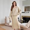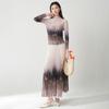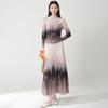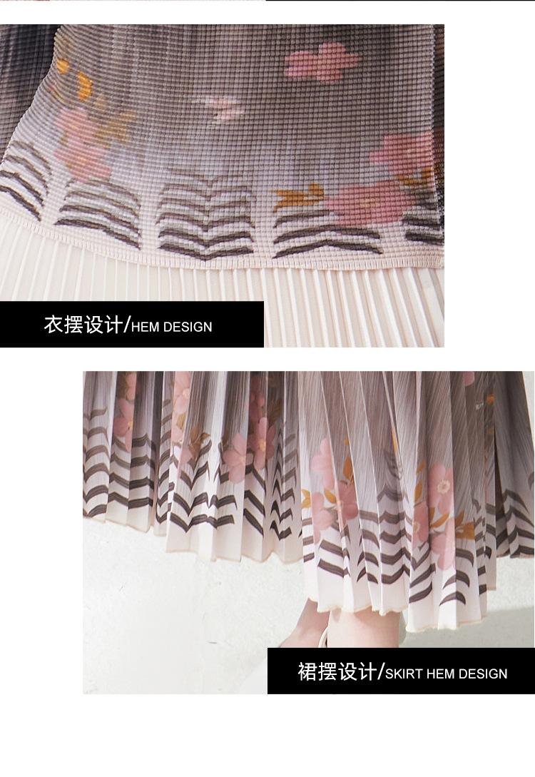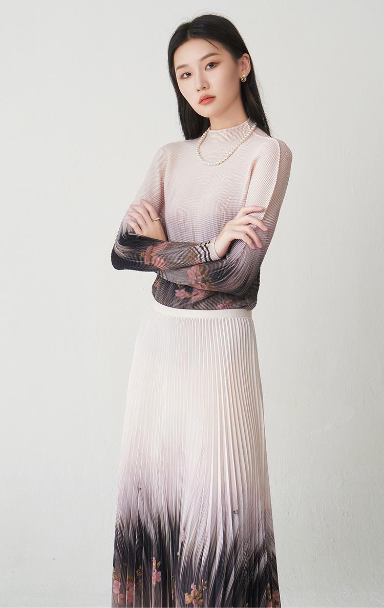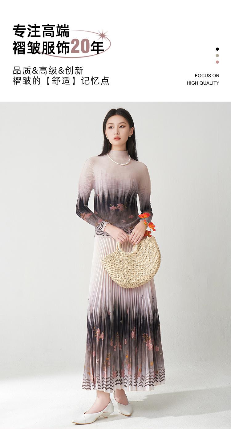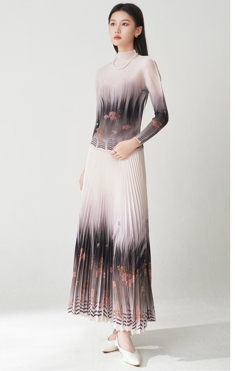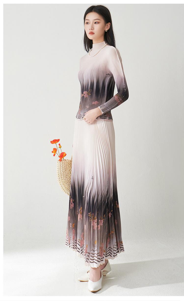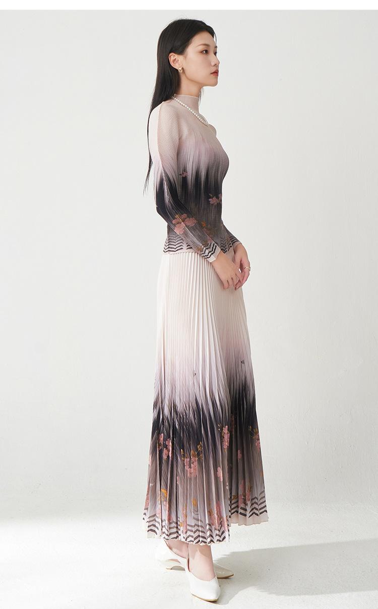 2025 Super Caliente Falda de Dos Piezas Falda Midi Estampado Manga Larga Capa Base Top Ropa Exterior Temperamento Elegante Conjunto Miyake Otoño