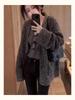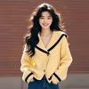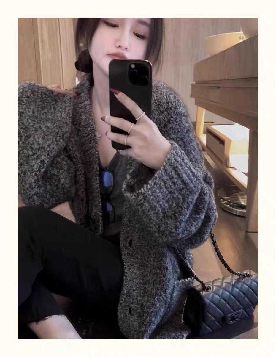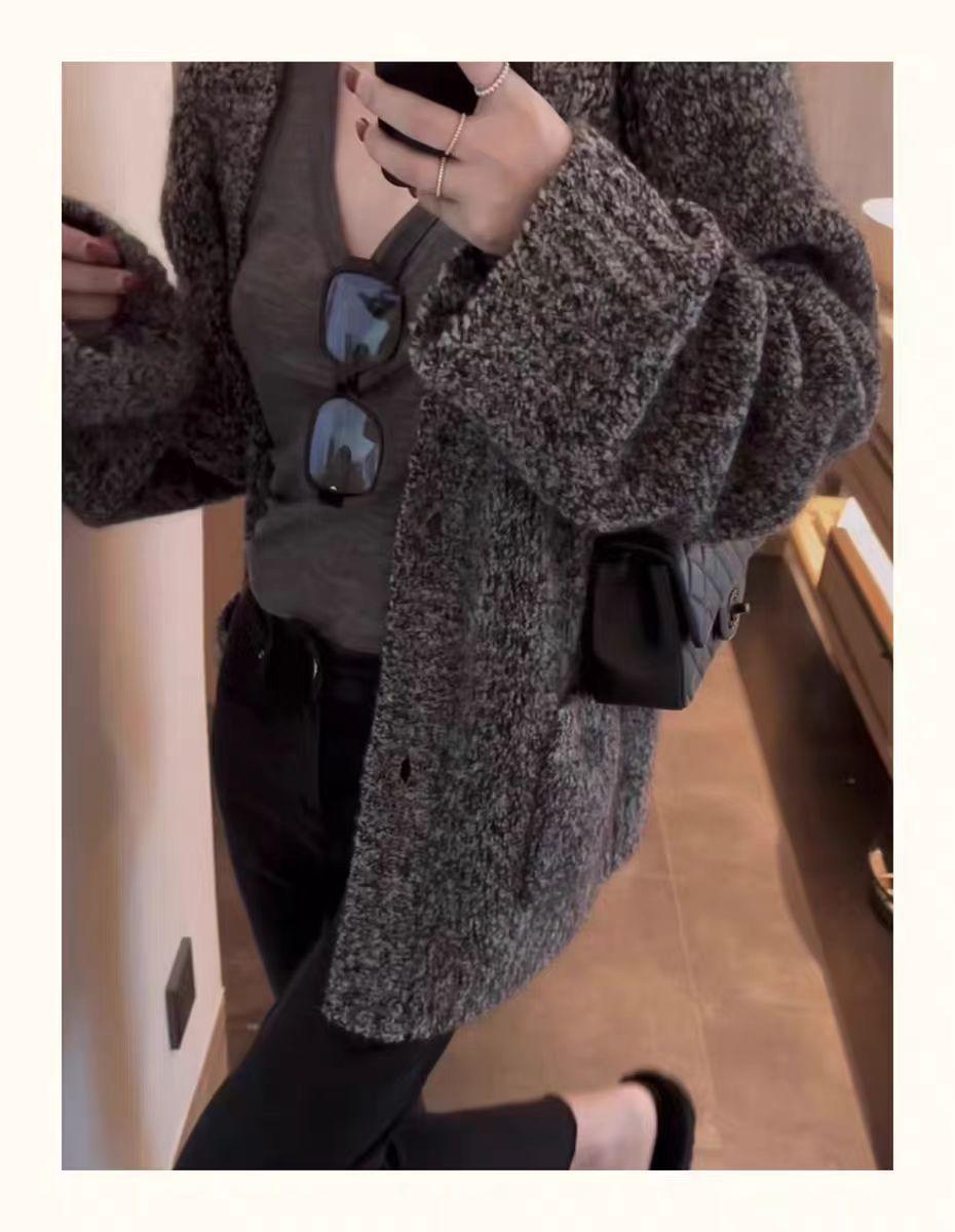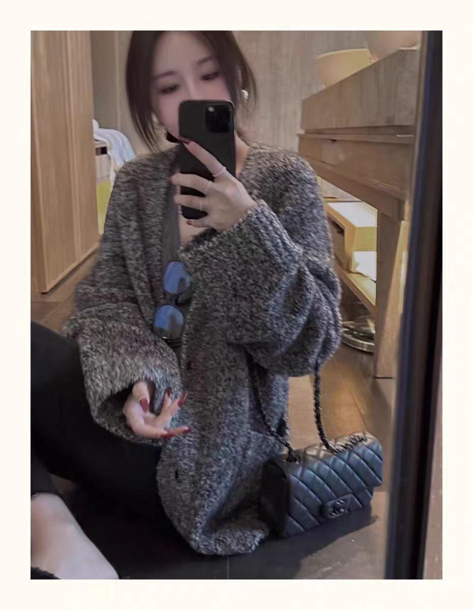 Cárdigan de punto holgado de largo medio con cuello en V estilo coreano nuevo otoño 2025 para mujer, diseño con sentido, suéter de estilo perezoso