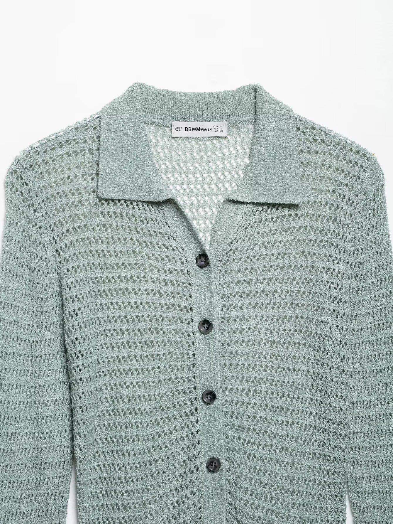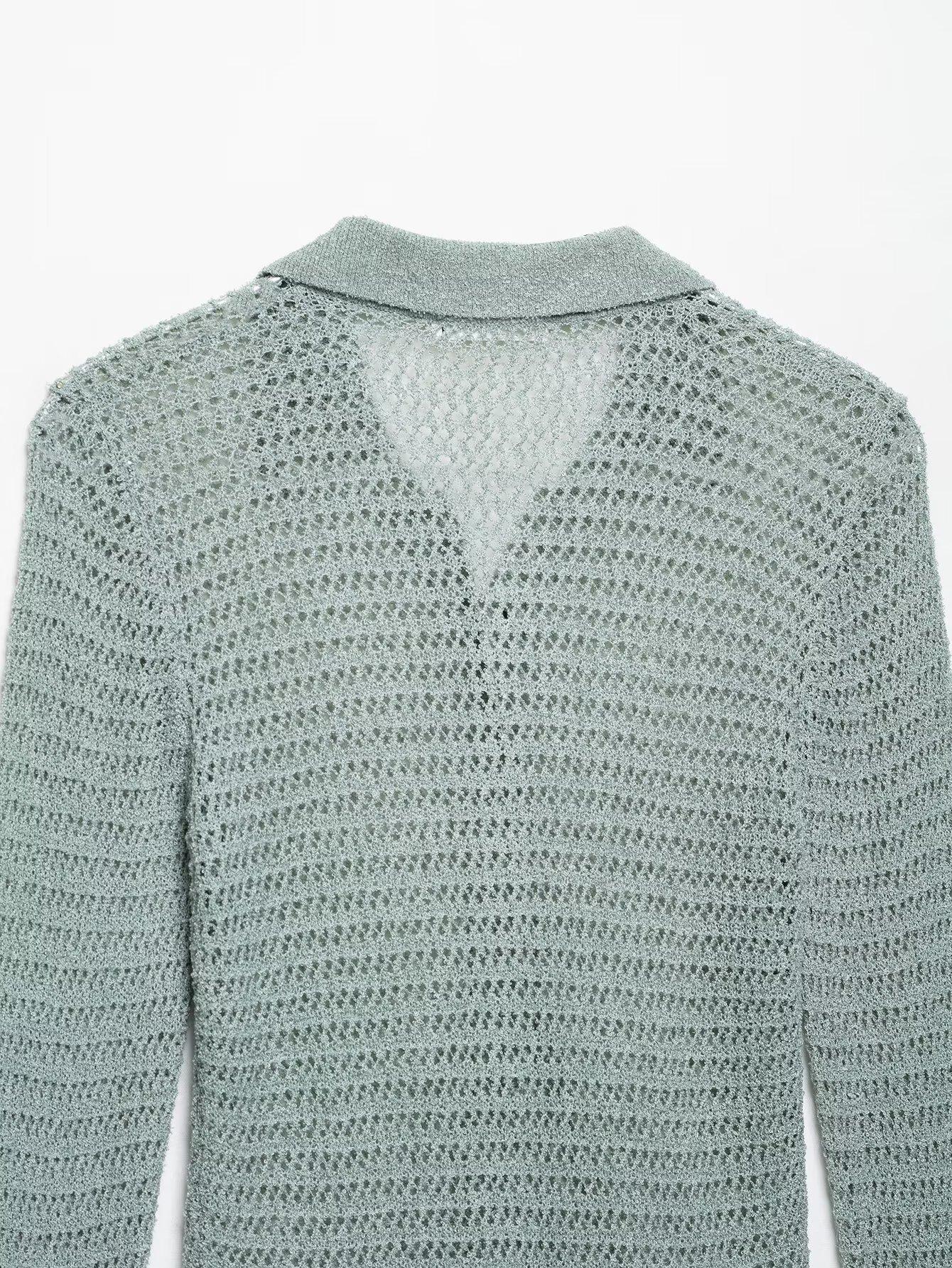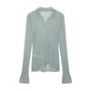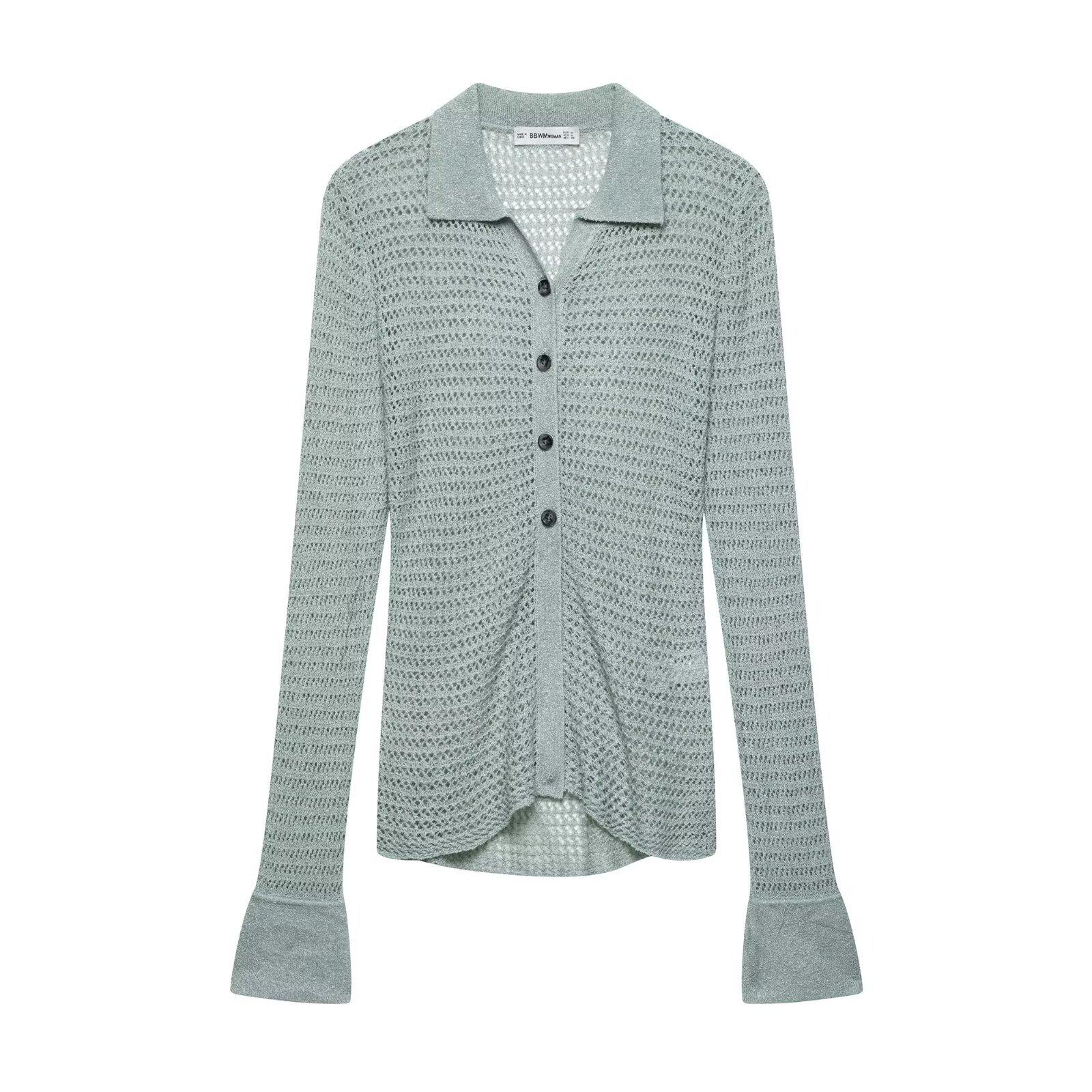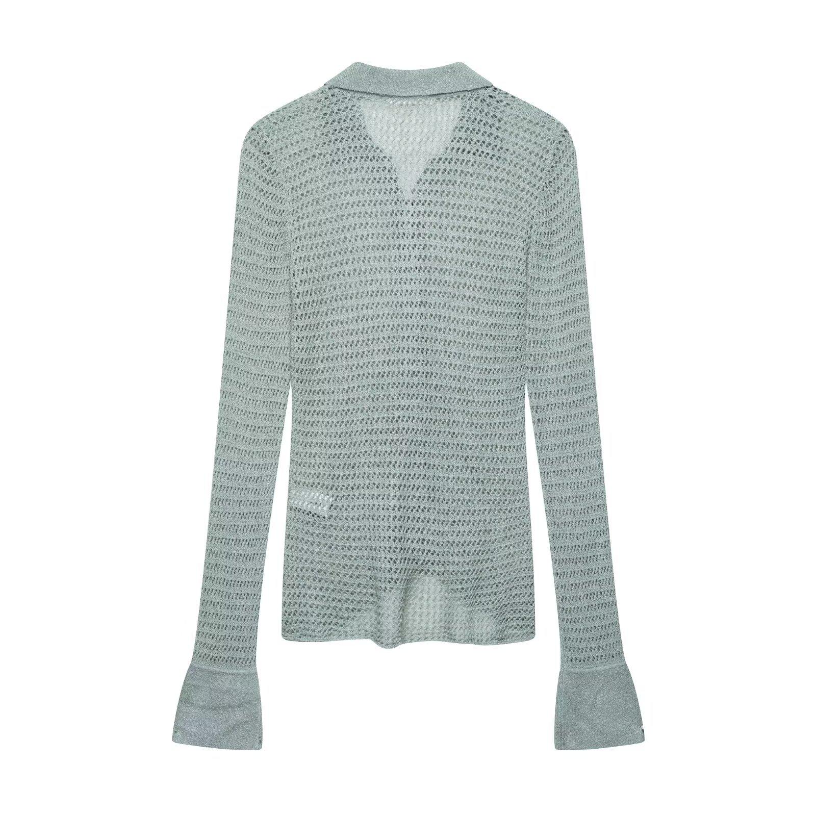 Ropa de mujer de comercio exterior transfronterizo 2025 primavera y verano solapa manga larga botonadura sencilla suéter calado top mujer A36337