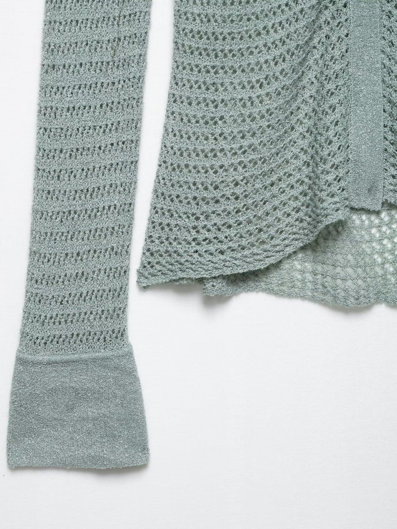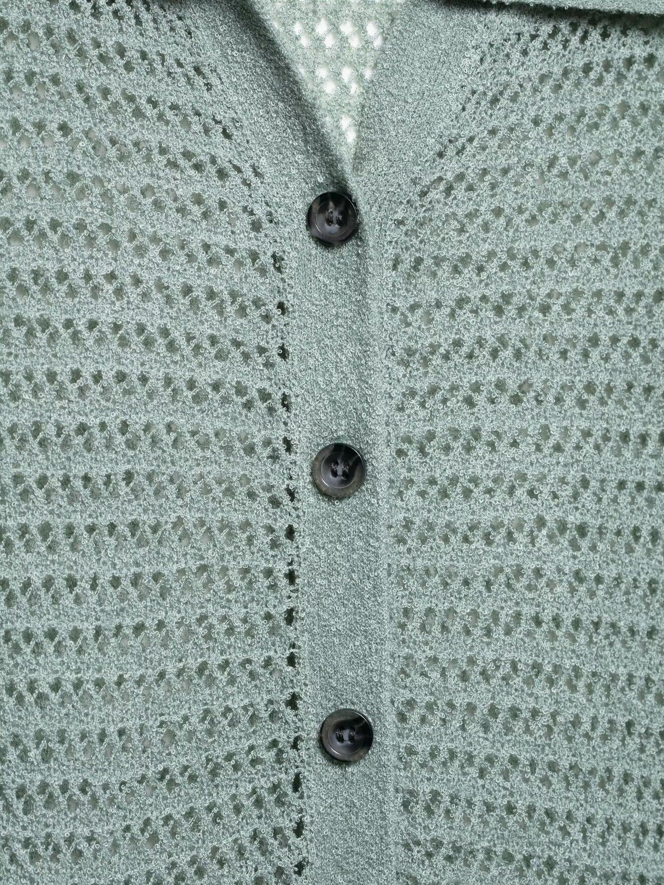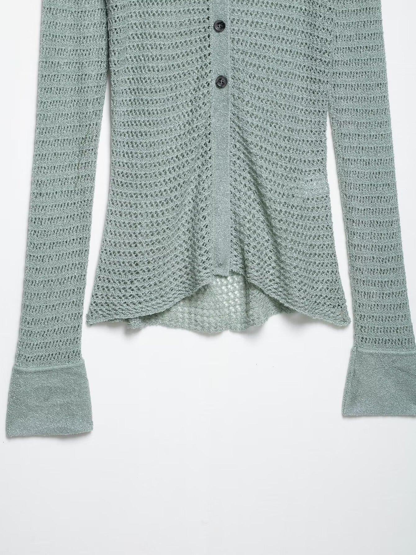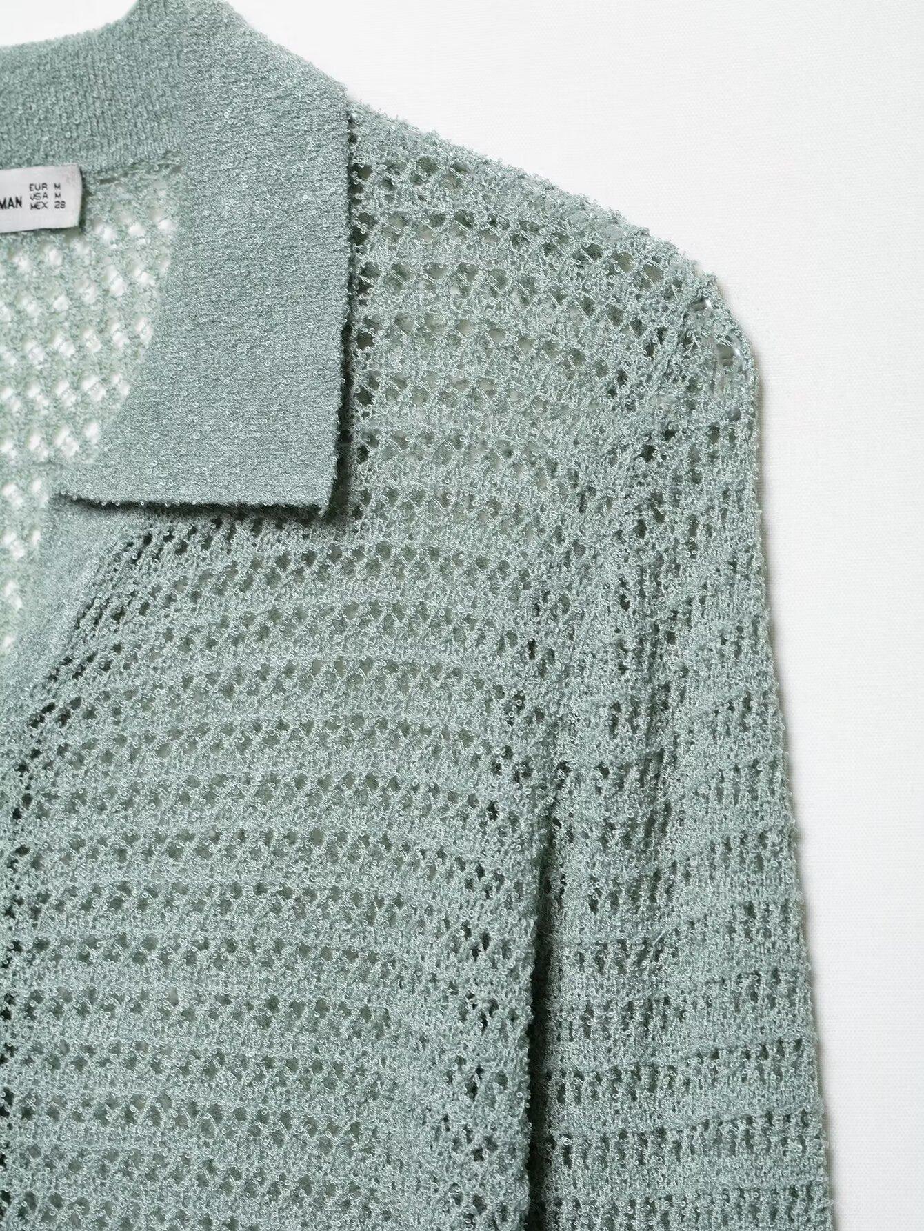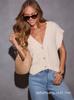 Ropa de mujer de comercio exterior transfronterizo 2025 primavera y verano solapa manga larga botonadura sencilla suéter calado top mujer A36337