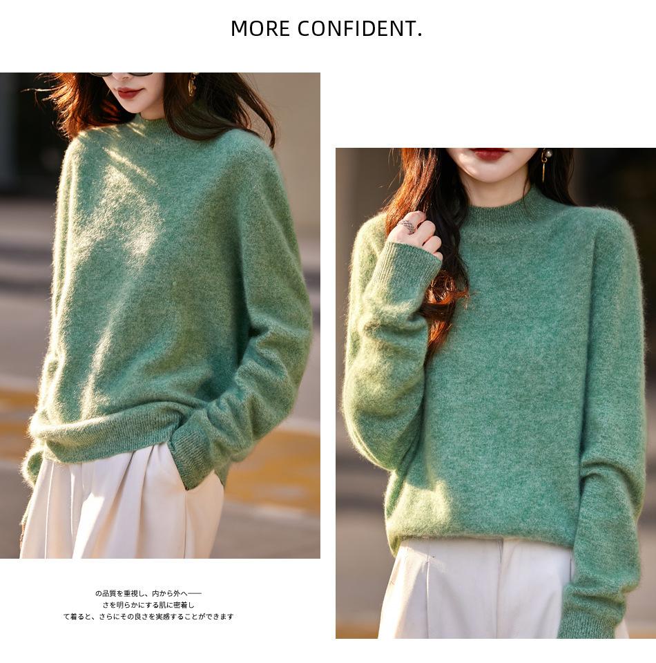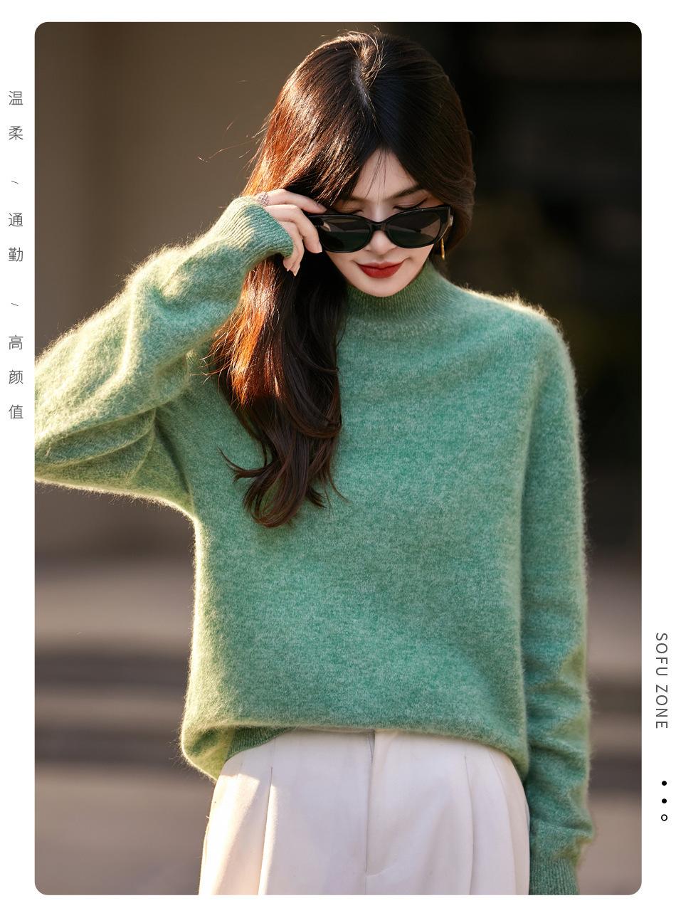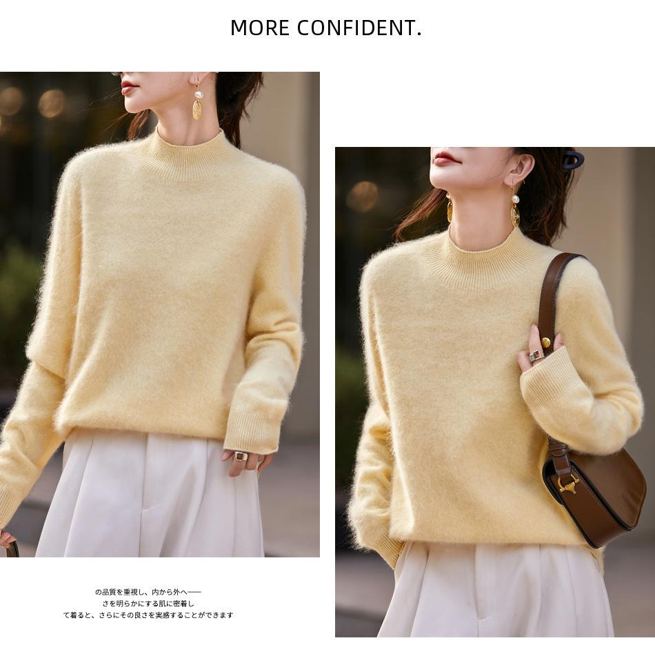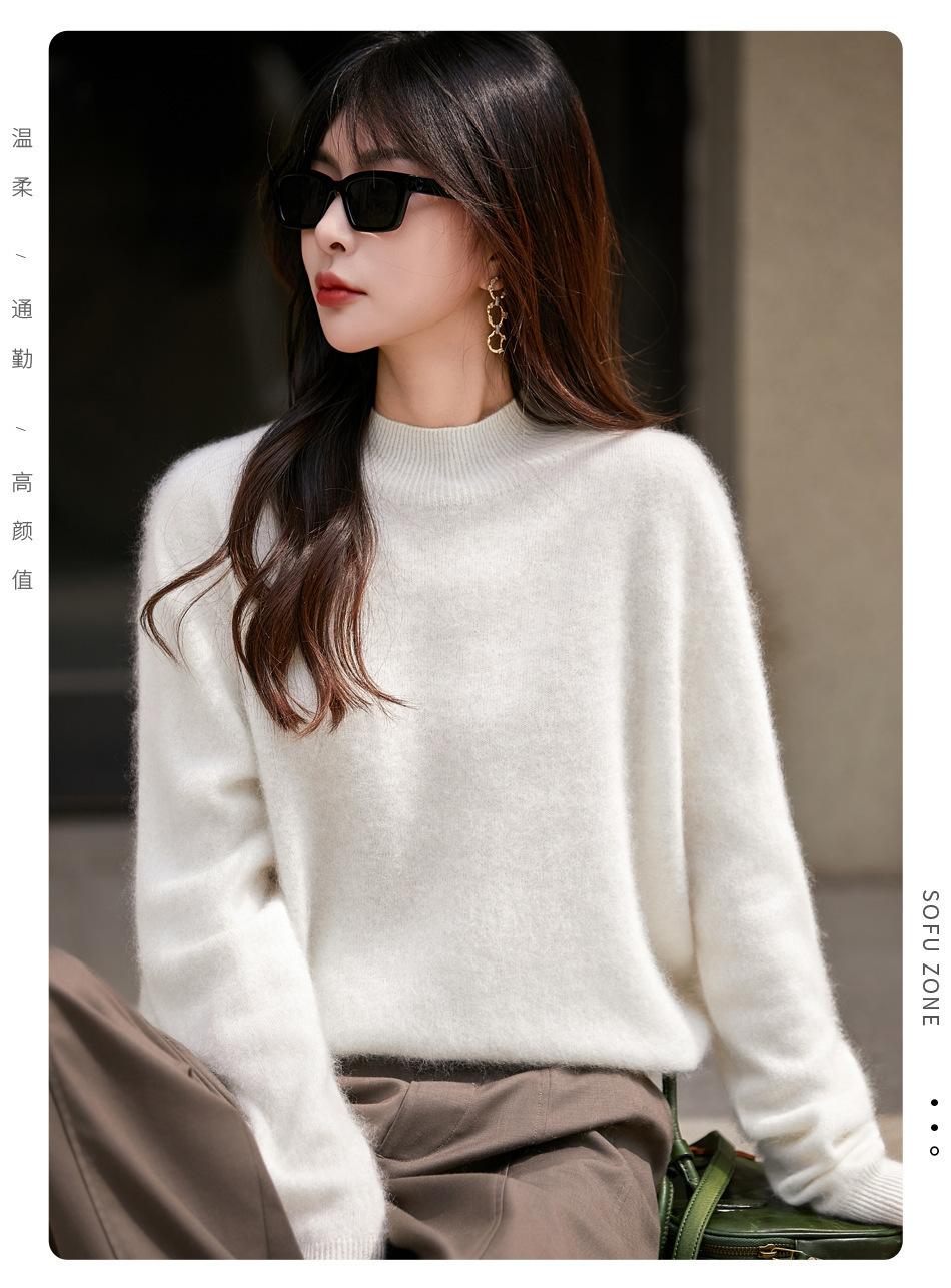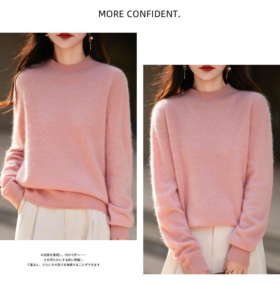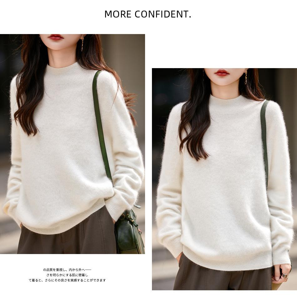 Camiseta Básica de Cuello Medio Alto de Primera Línea Lista para Usar para Mujer, Jersey de Manga Larga para Otoño/Invierno, Holgado, Adelgazante, Tejido de Punto Sin Costuras, Suéter