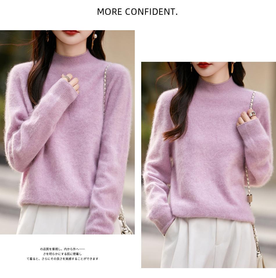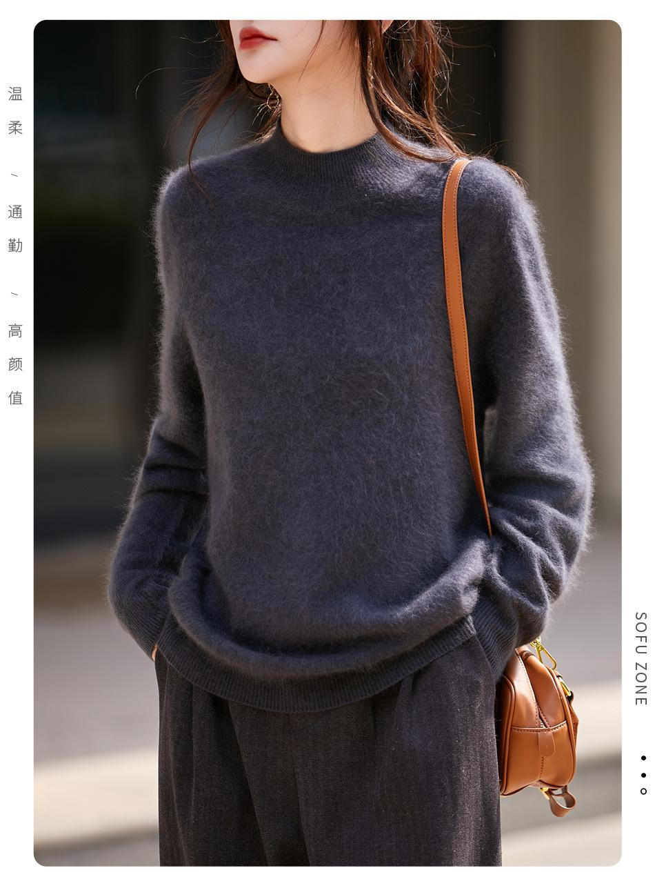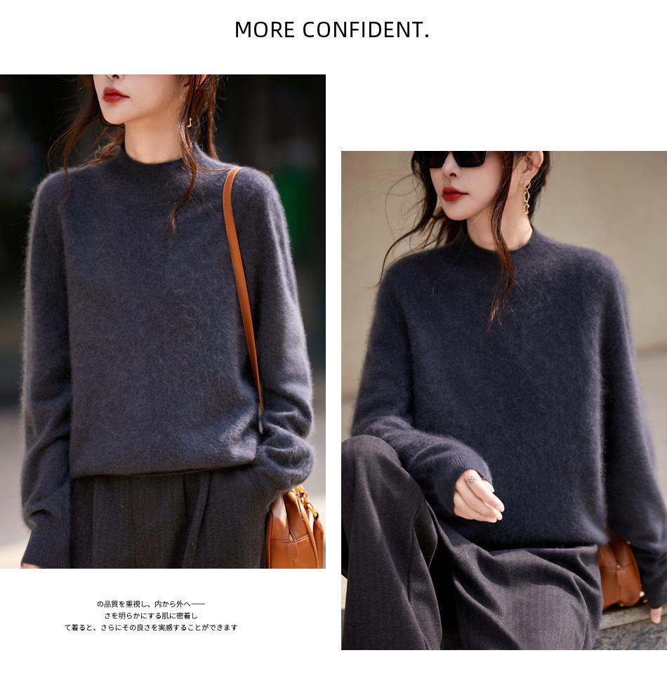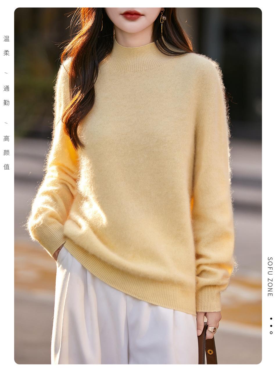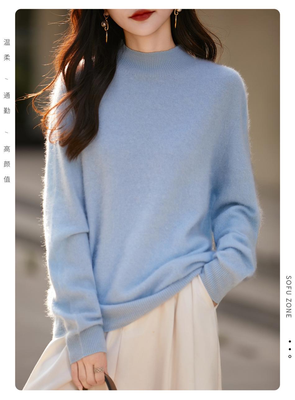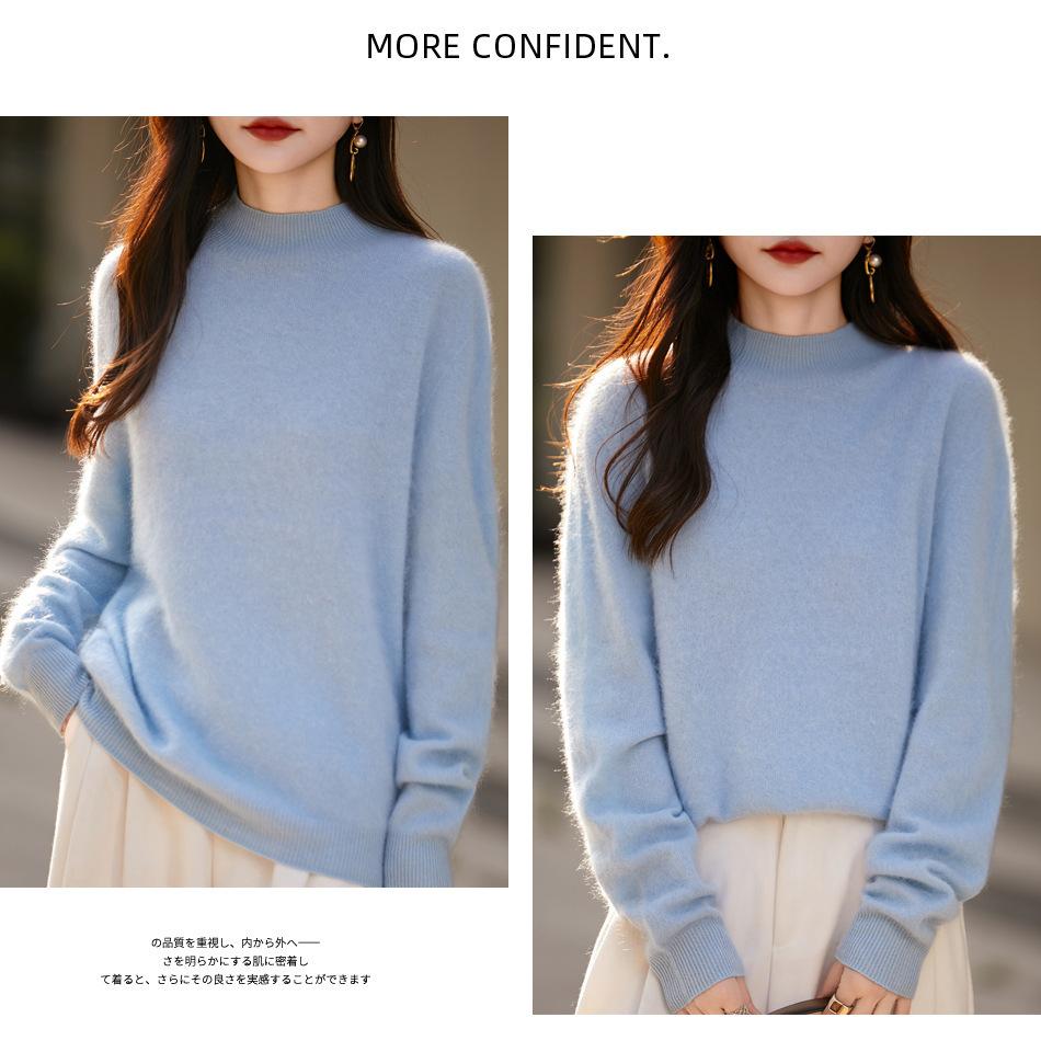 Camiseta Básica de Cuello Medio Alto de Primera Línea Lista para Usar para Mujer, Jersey de Manga Larga para Otoño/Invierno, Holgado, Adelgazante, Tejido de Punto Sin Costuras, Suéter
