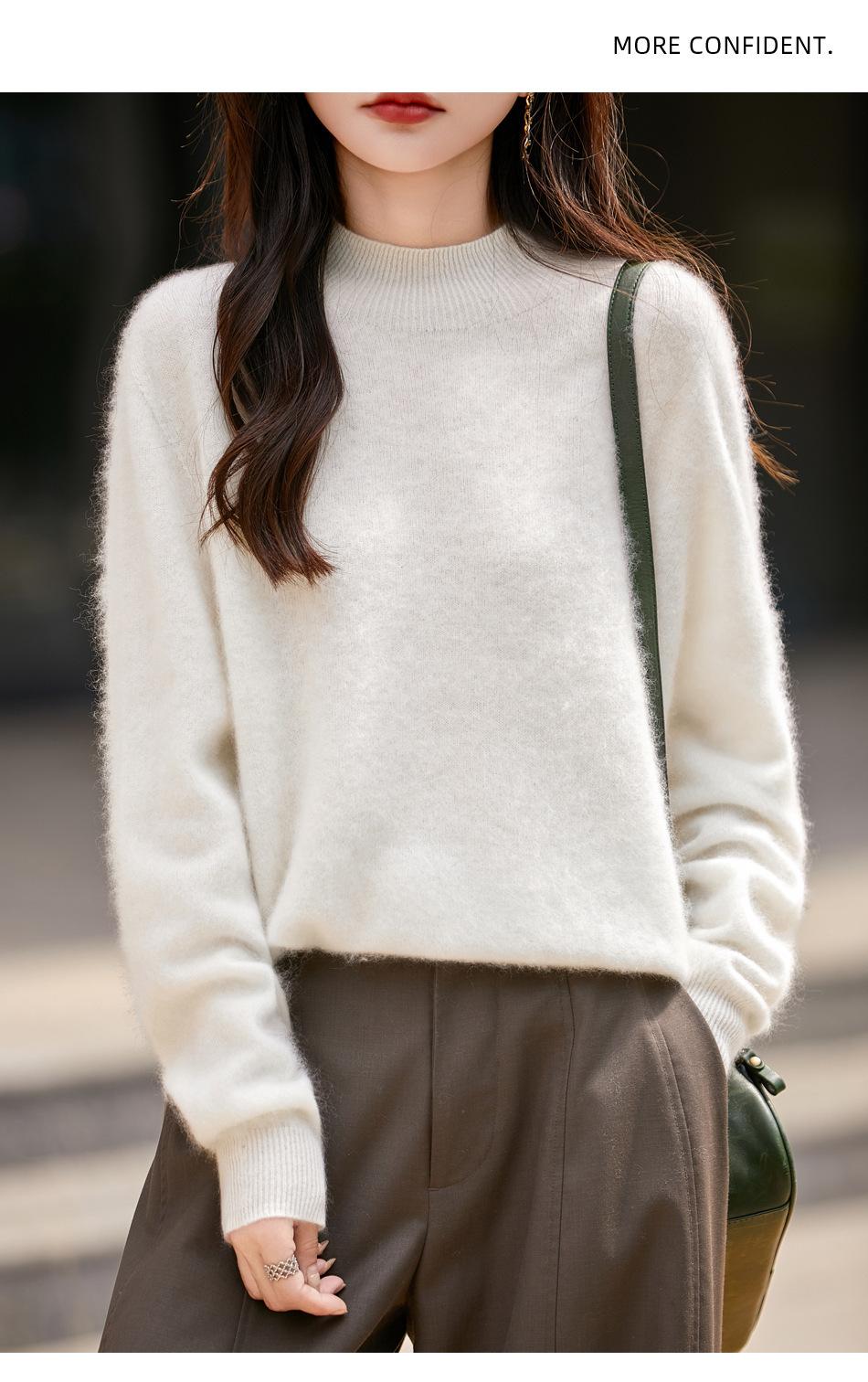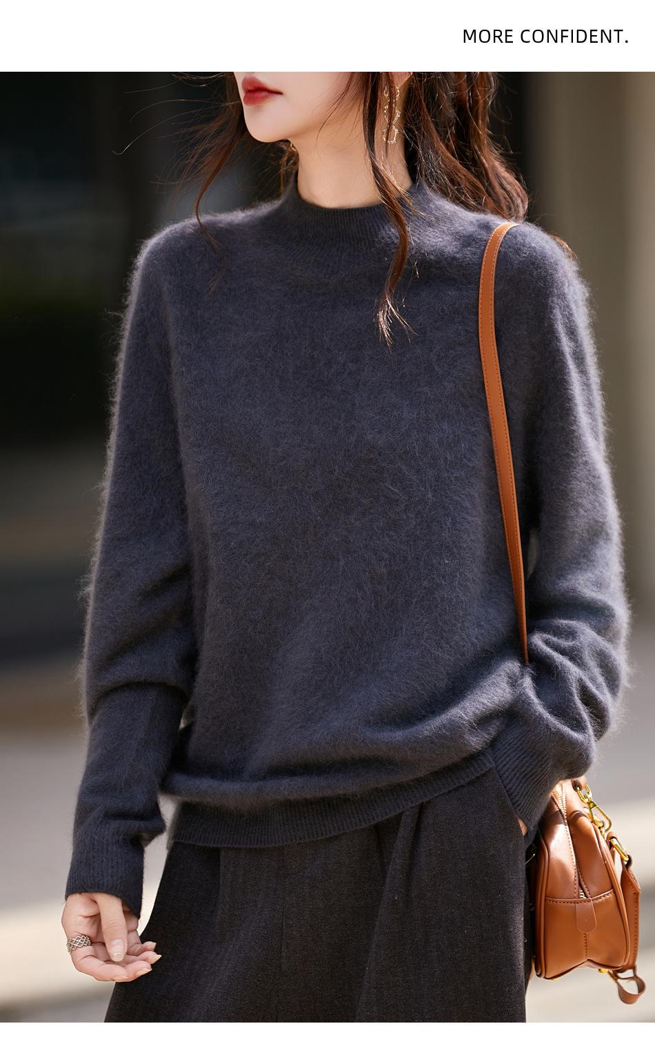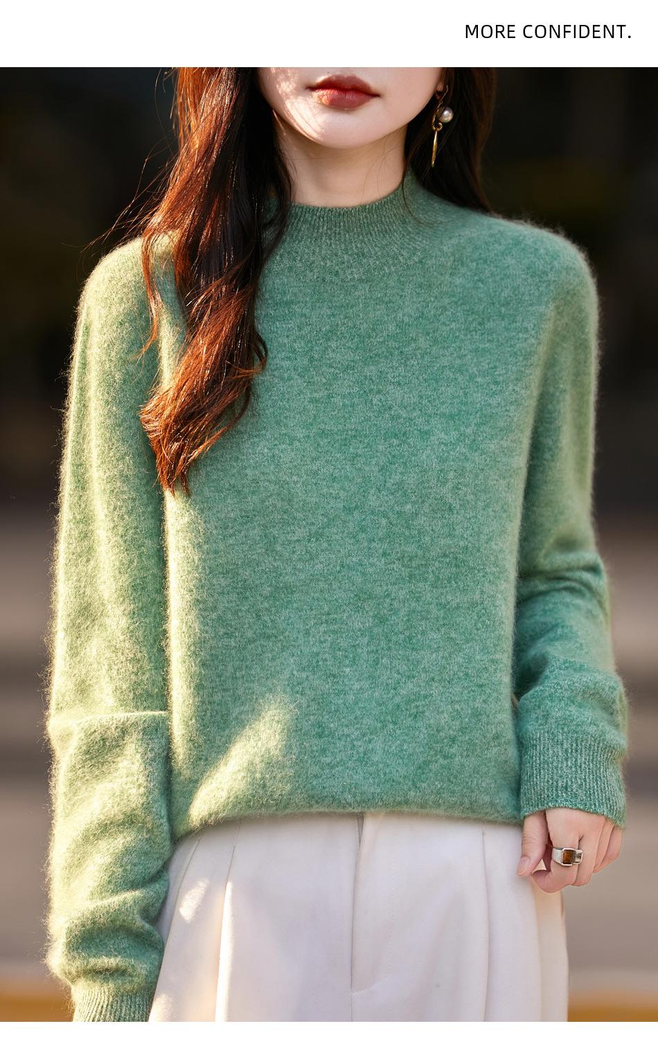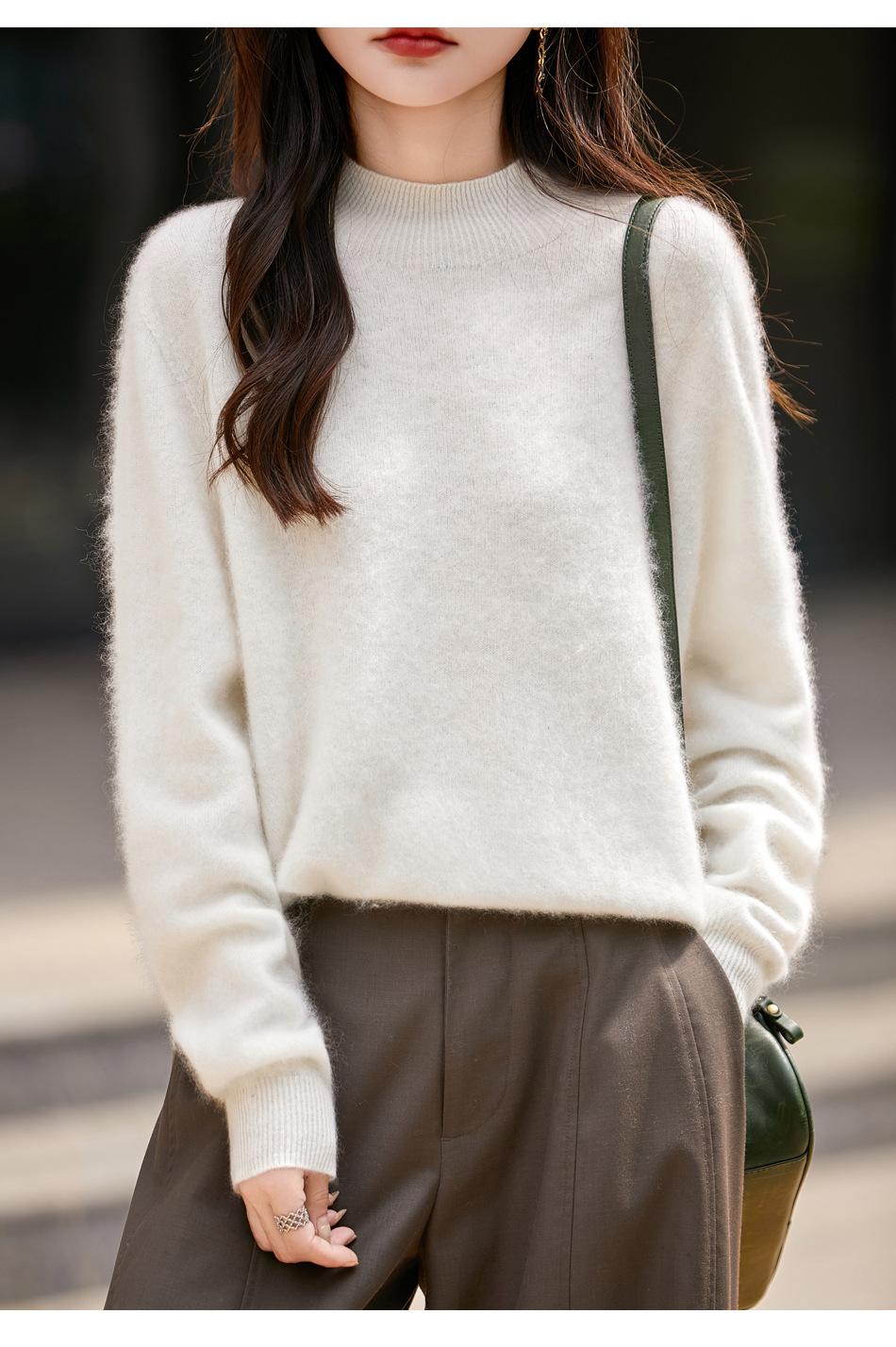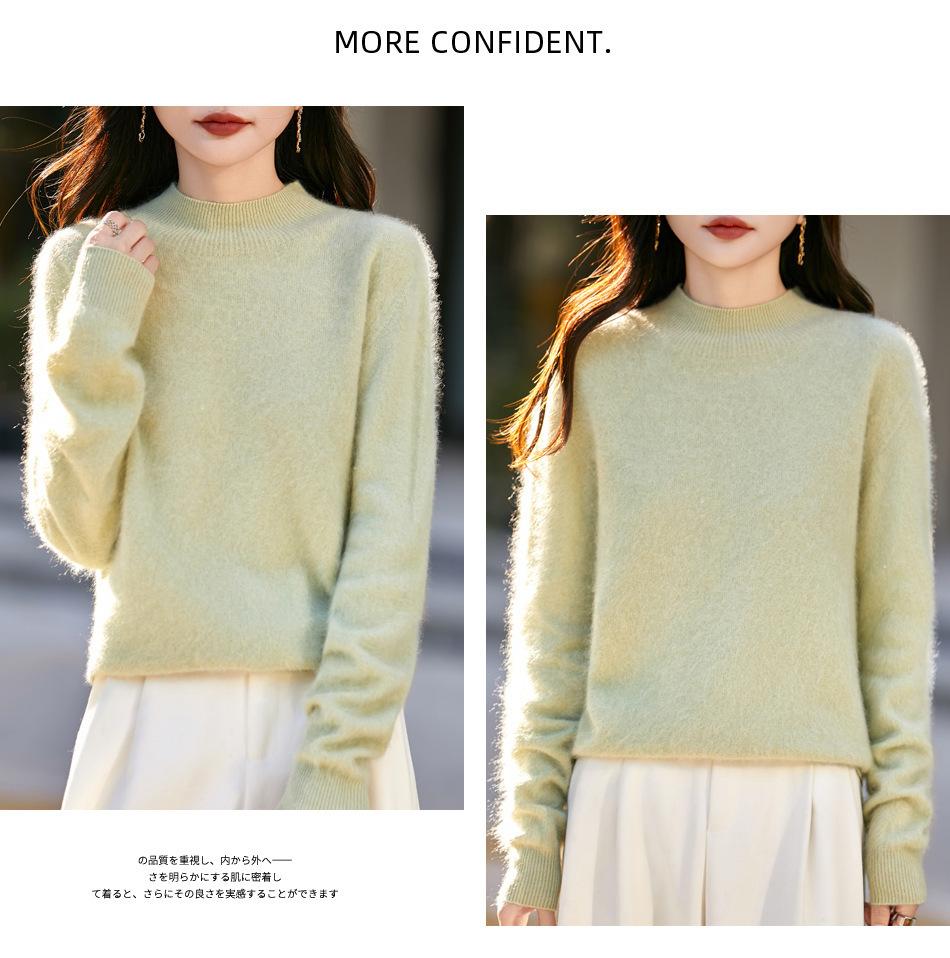 Camiseta Básica de Cuello Medio Alto de Primera Línea Lista para Usar para Mujer, Jersey de Manga Larga para Otoño/Invierno, Holgado, Adelgazante, Tejido de Punto Sin Costuras, Suéter
