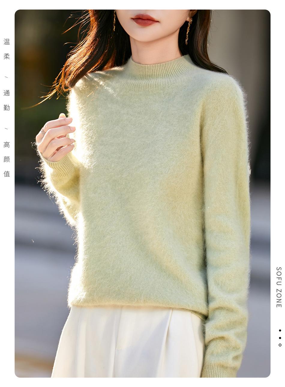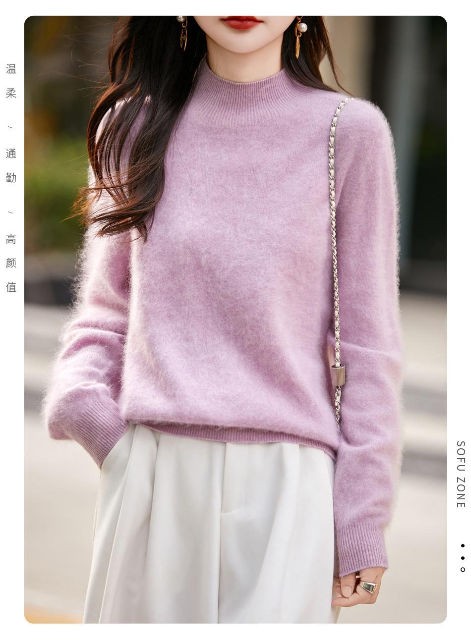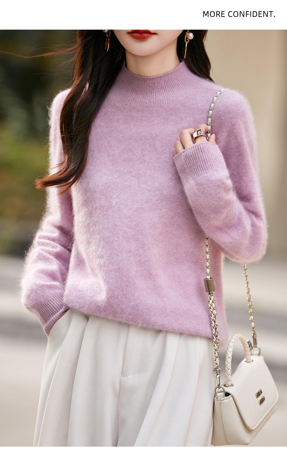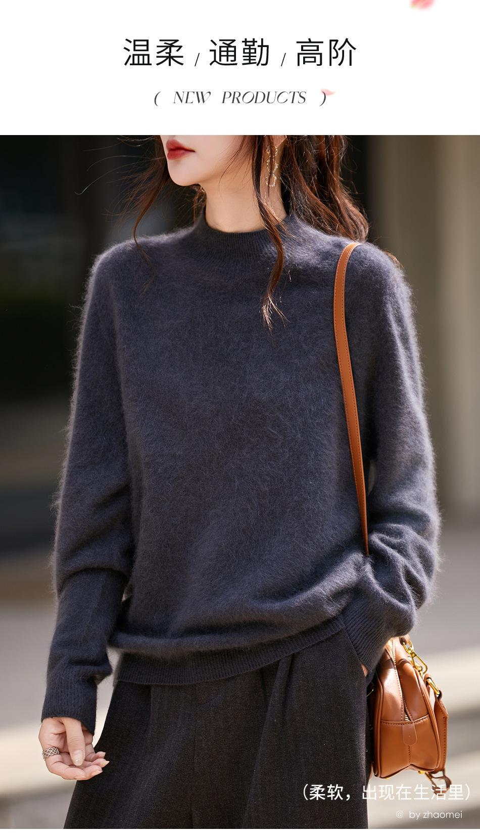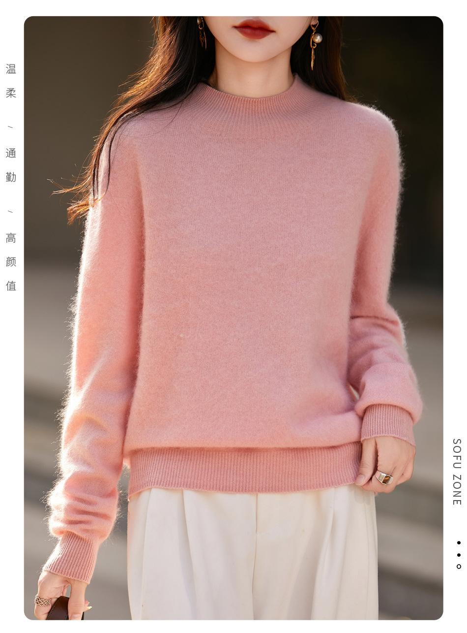 Camiseta Básica de Cuello Medio Alto de Primera Línea Lista para Usar para Mujer, Jersey de Manga Larga para Otoño/Invierno, Holgado, Adelgazante, Tejido de Punto Sin Costuras, Suéter