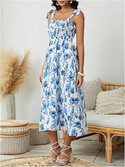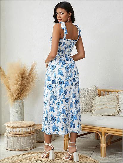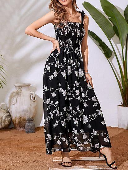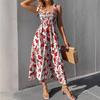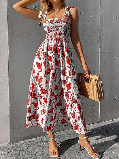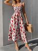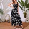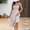 Europeo y Americano Transfronterizo 2025 Vacaciones de Verano en la Playa Sexy Delgado Elegante Vestido Floral Tirantes Falda Plisada para Mujer