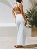 2024 Ropa de mujer de comercio exterior europea y americana, moderna, elegante, halter, sin espalda, sexy, para vacaciones, calada, con abertura lateral, mono
