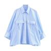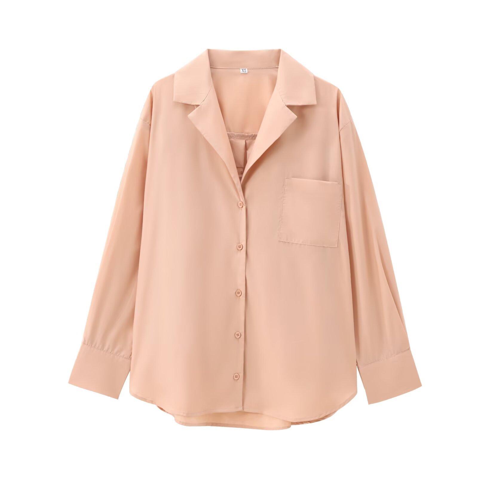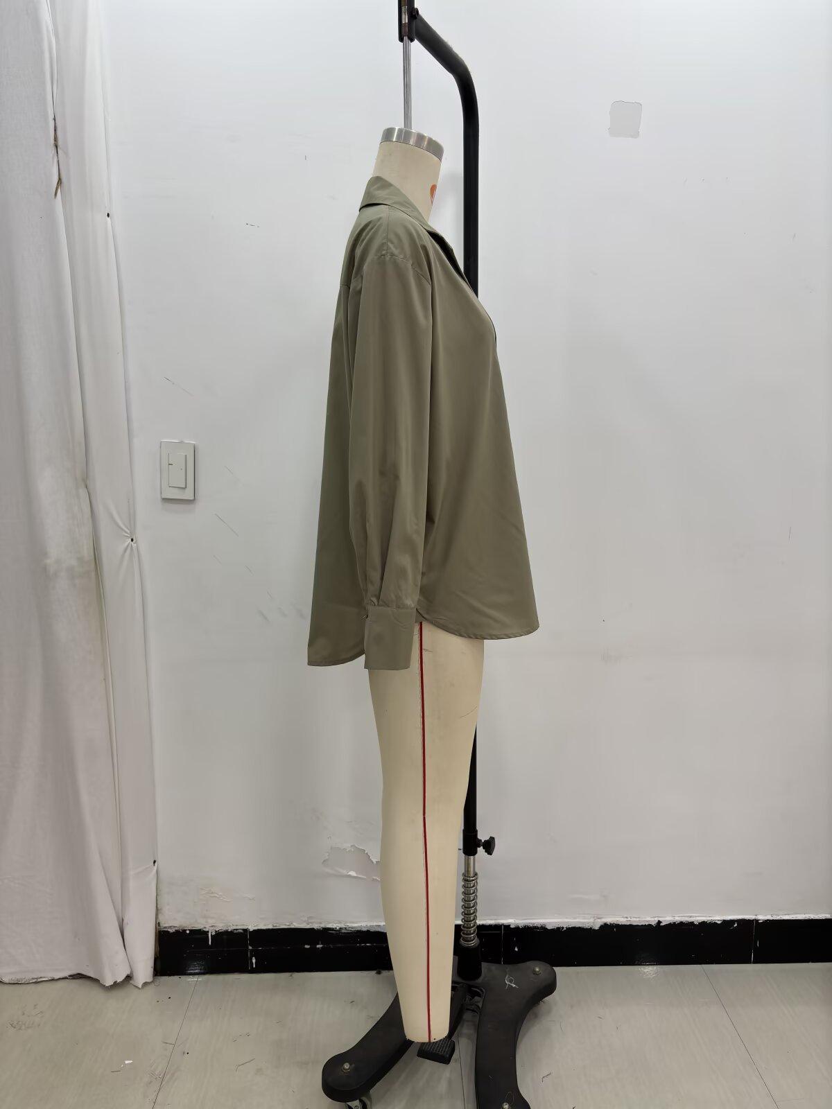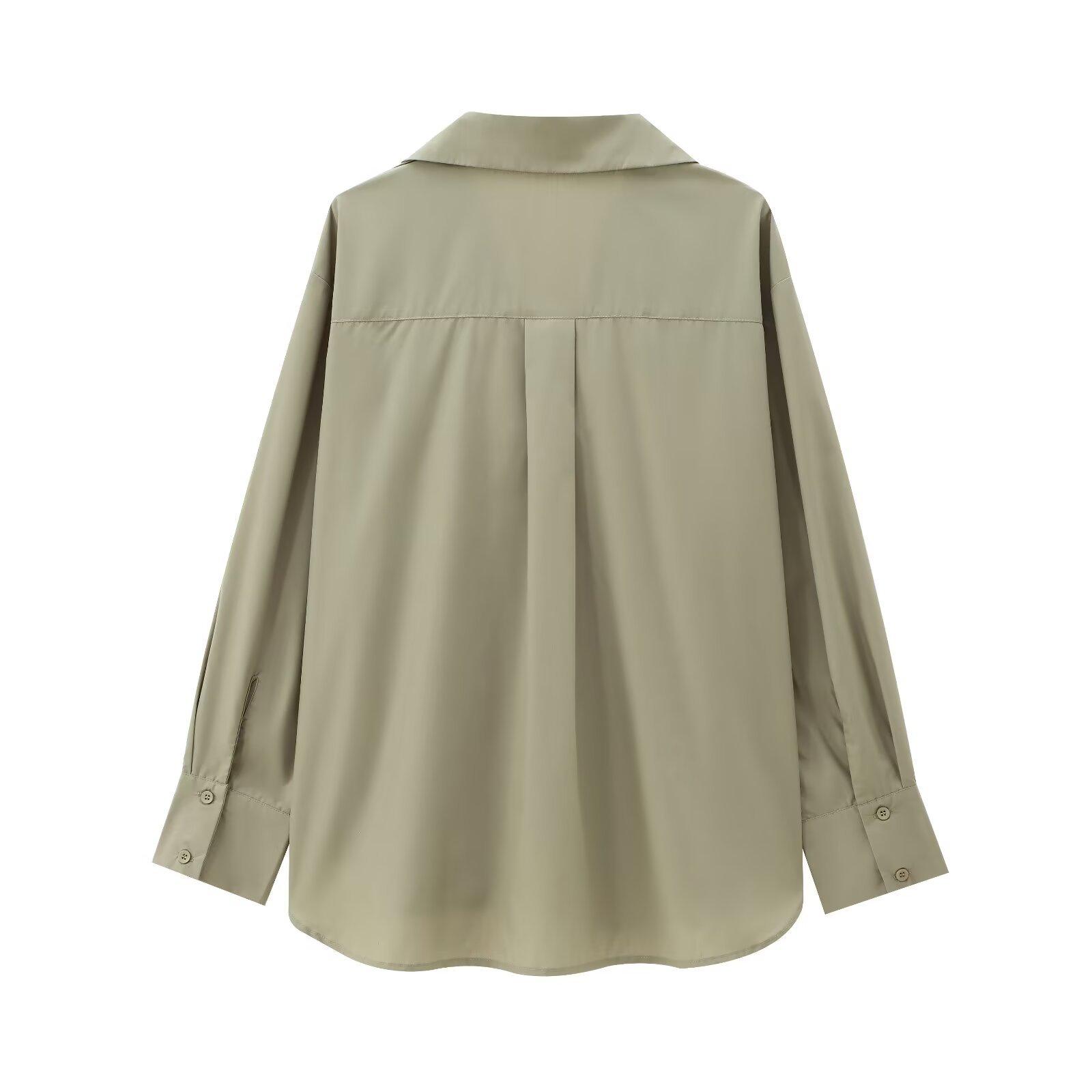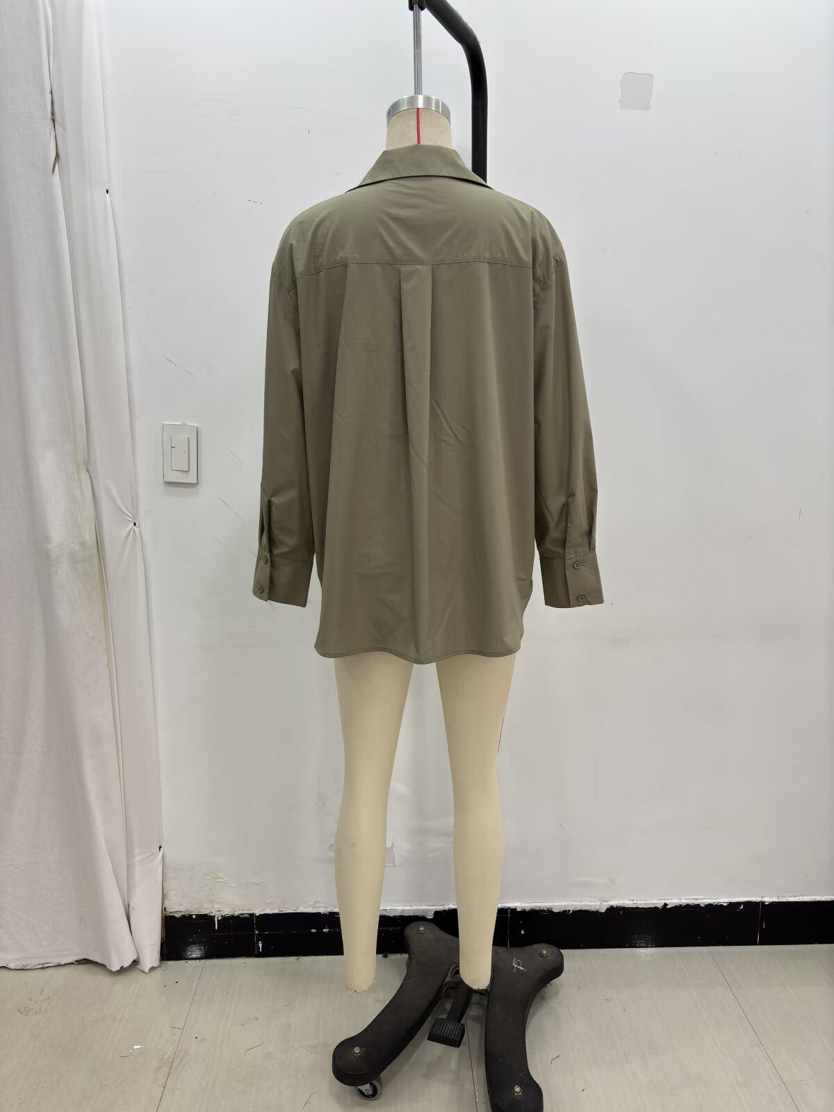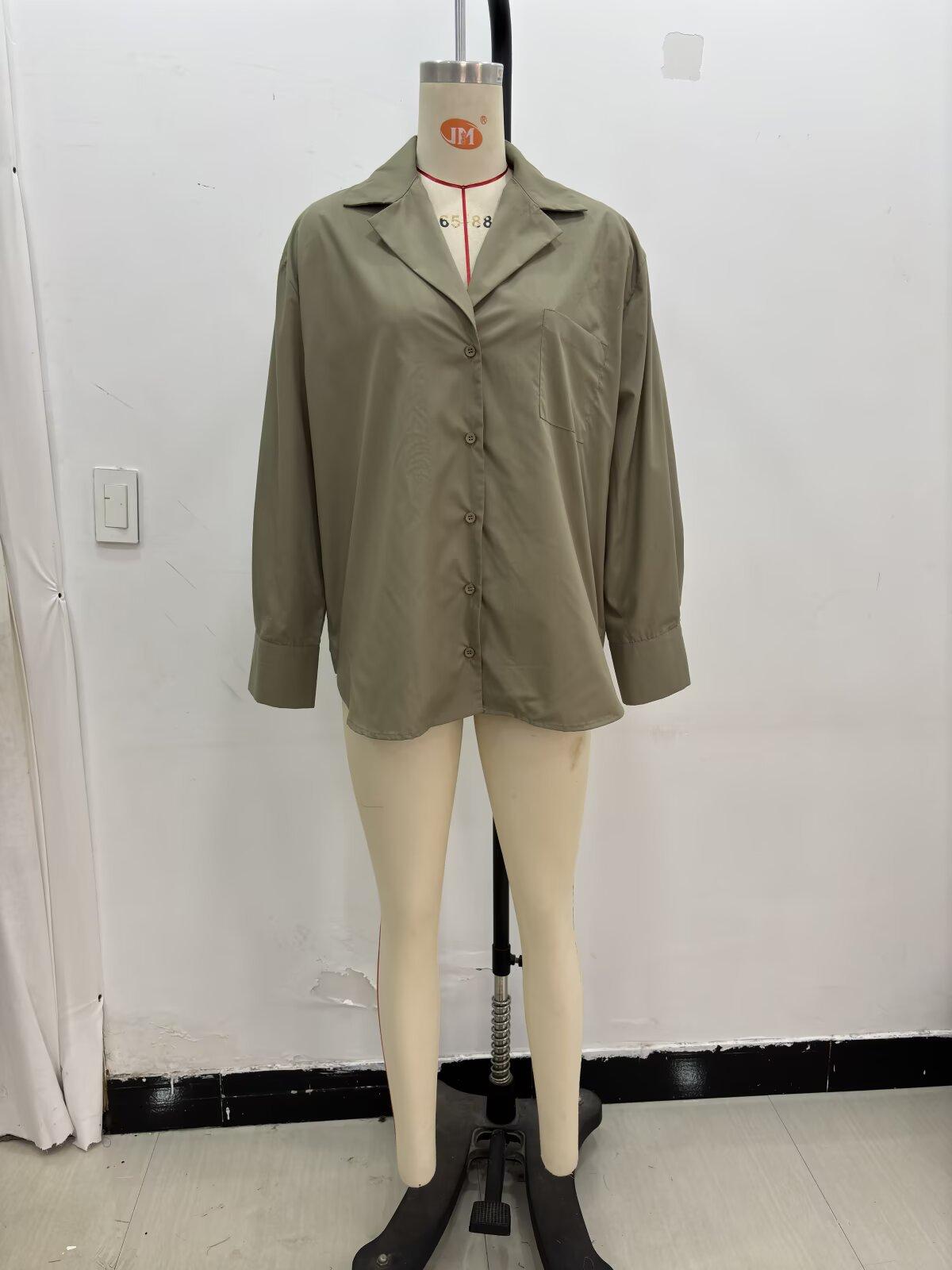 Ropa de mujer de comercio exterior transfronterizo 2025 otoño estilo europeo y americano solapa manga larga decoración de bolsillo top camisa suelta para mujer M561231F
