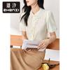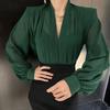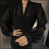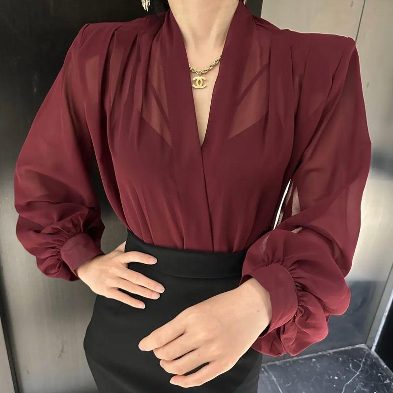 Camisa Francesa de Viaje de Gama Alta con Cuello en V y Temperamento para Protección Solar para Mujer Verano Suelta Color Sólido Manga Linterna Camisa de Chifón Top de Mujer