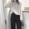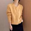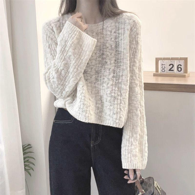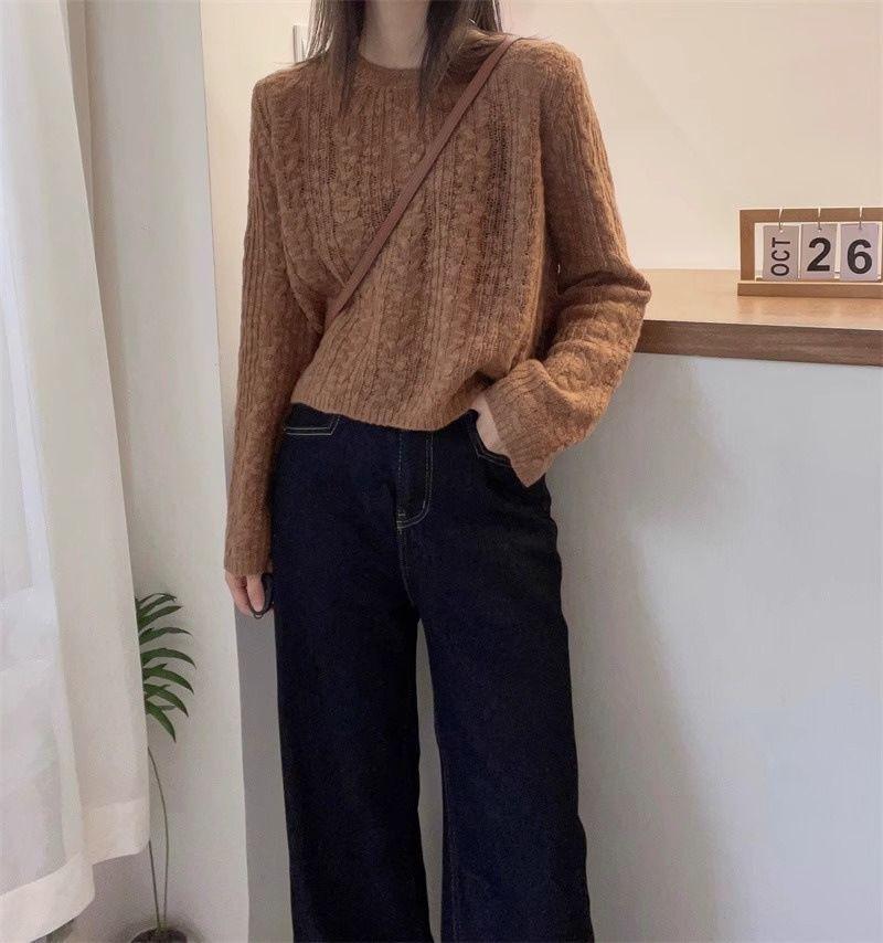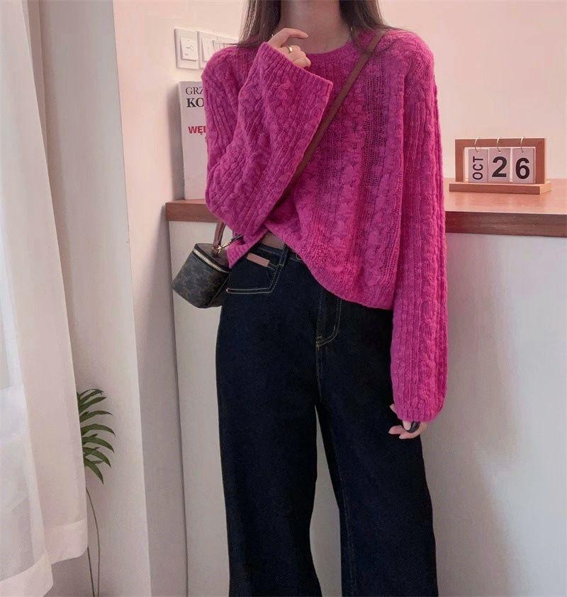 Suéter de punto casual versátil holgado de manga larga estilo delgado para mujer otoño nuevo estilo perezoso holgado corto suave cuello redondo