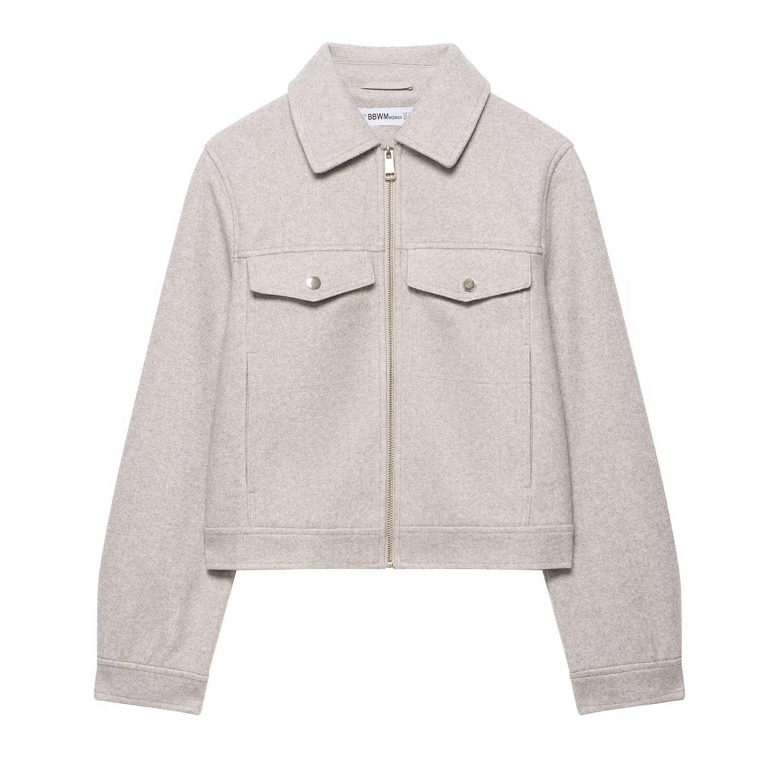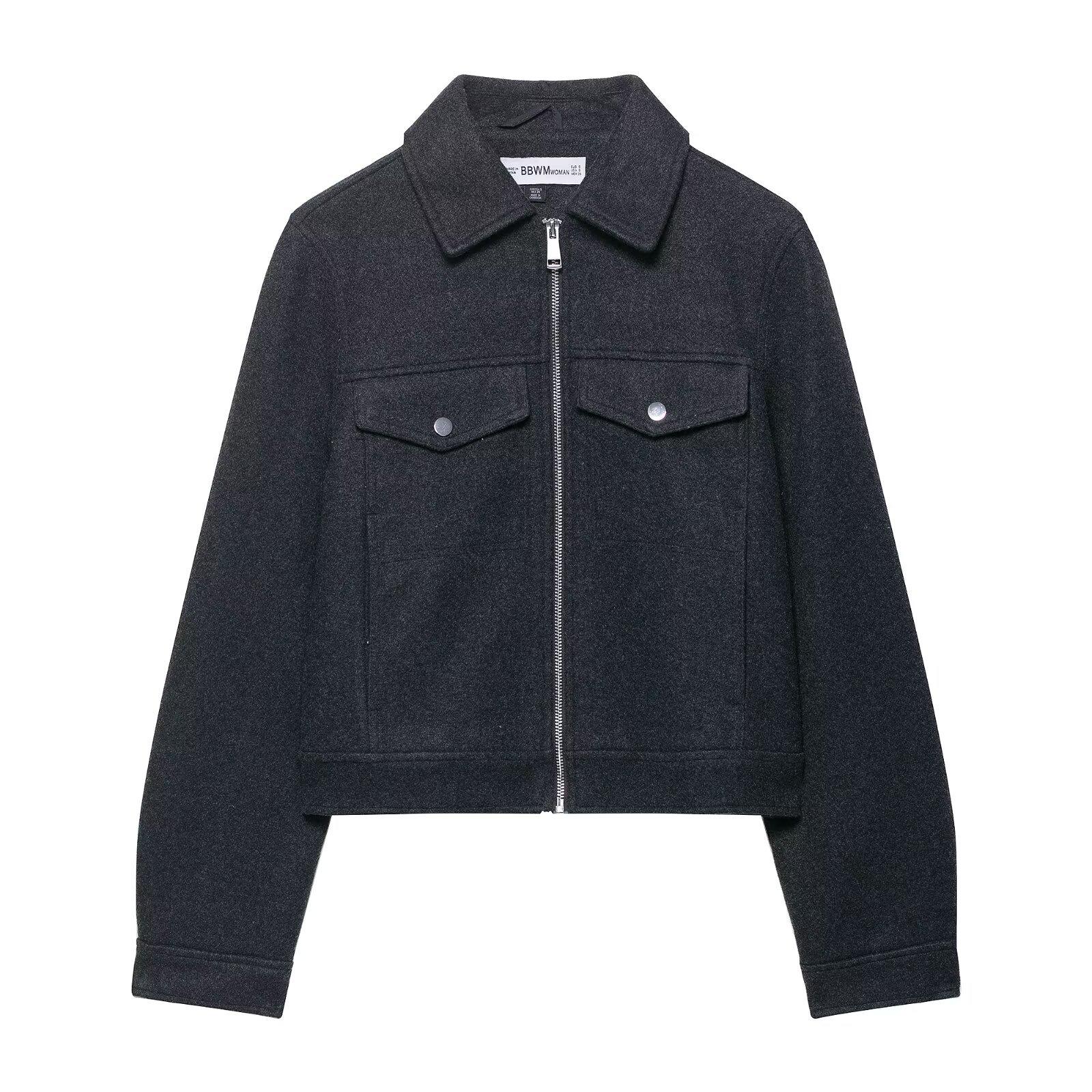 Estilo europeo y americano comercio exterior 2025 otoño nueva moda versátil suave chaqueta con cremallera
