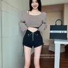 2025 Otoño Nuevo Shorts Negros de Pierna Ancha Mujer Cintura Alta Adelgazantes Casuales Hot Pants Sexy Pantalones Adelgazantes Tendencia ins