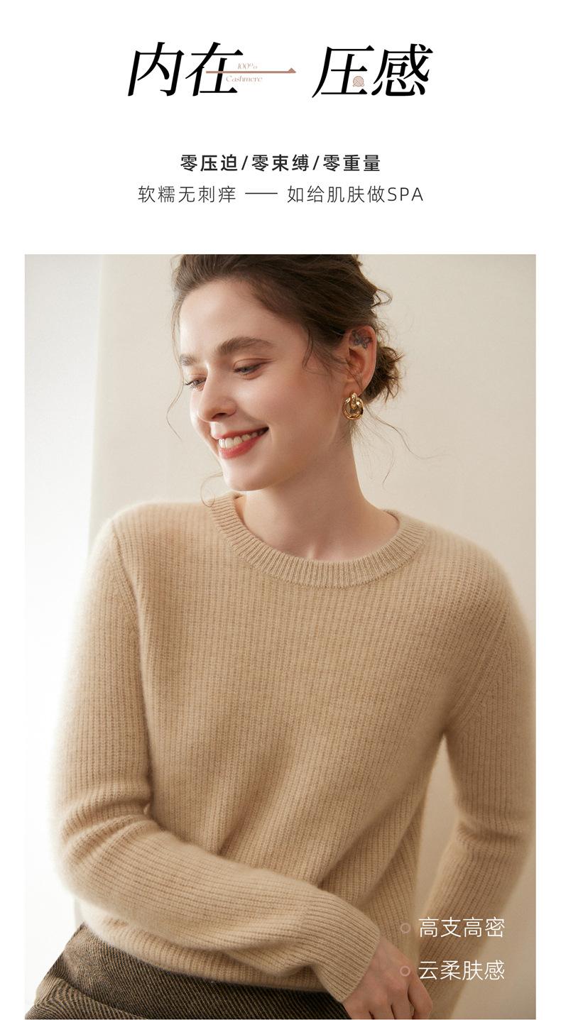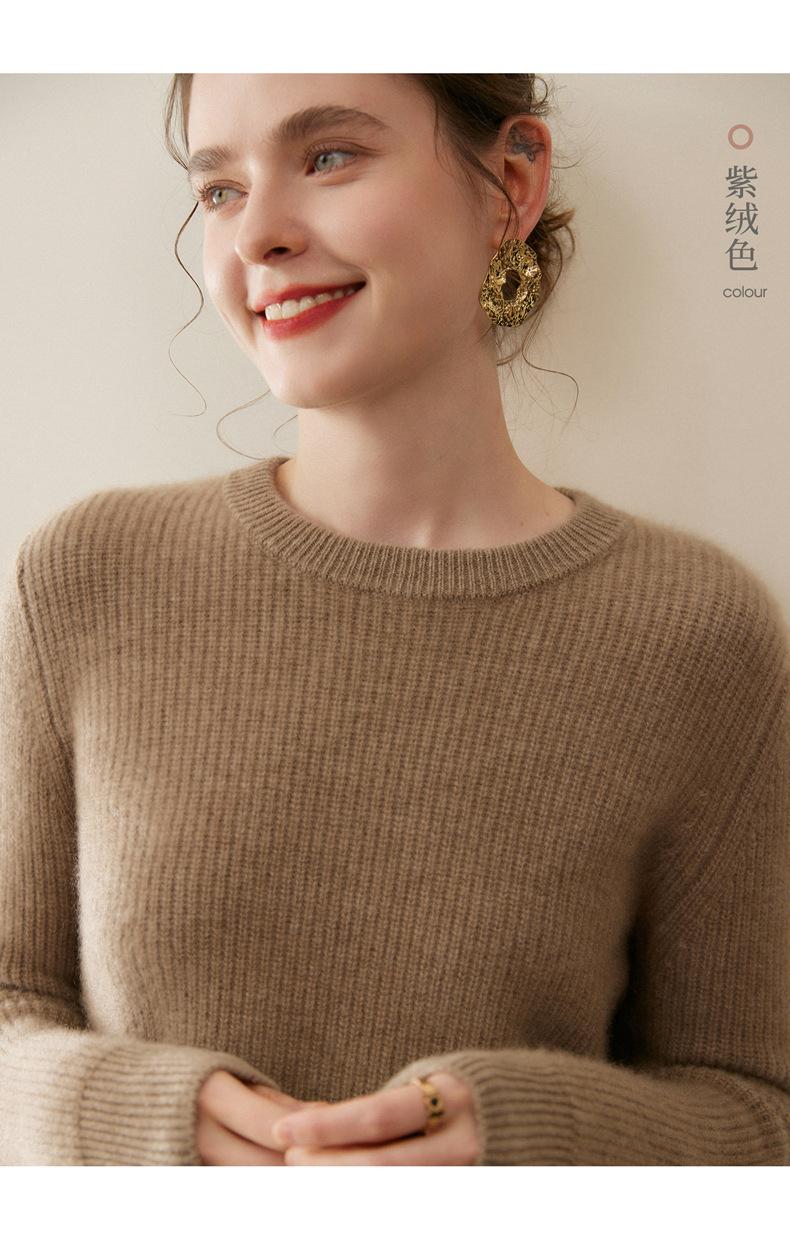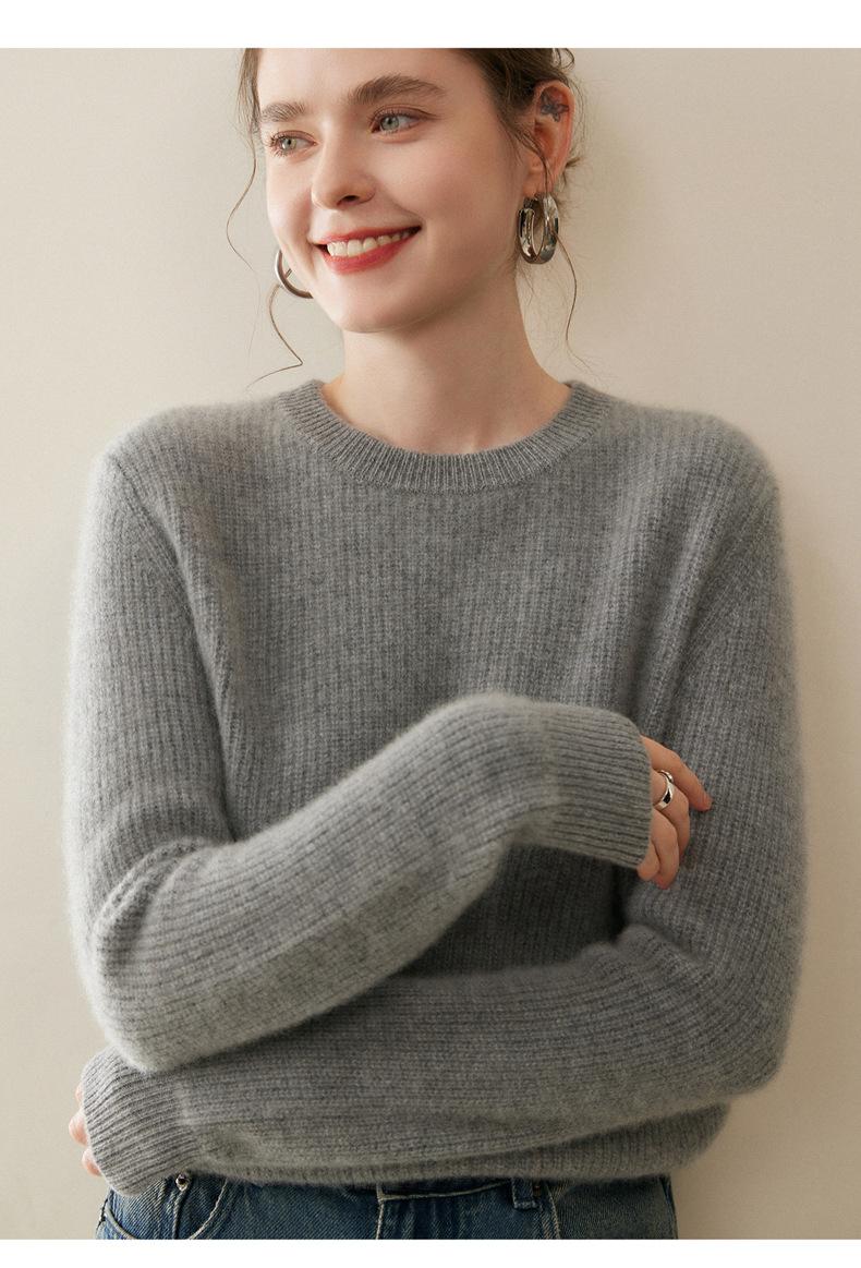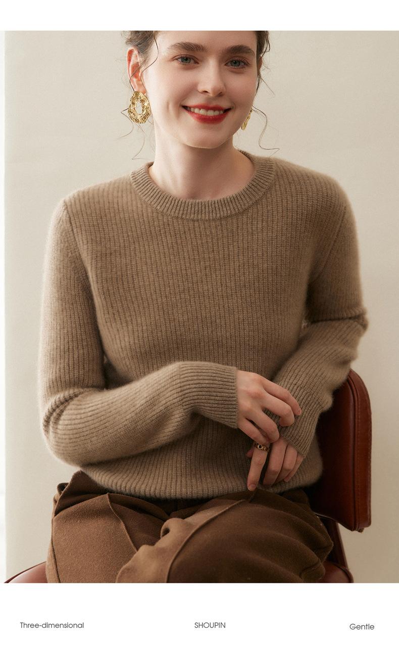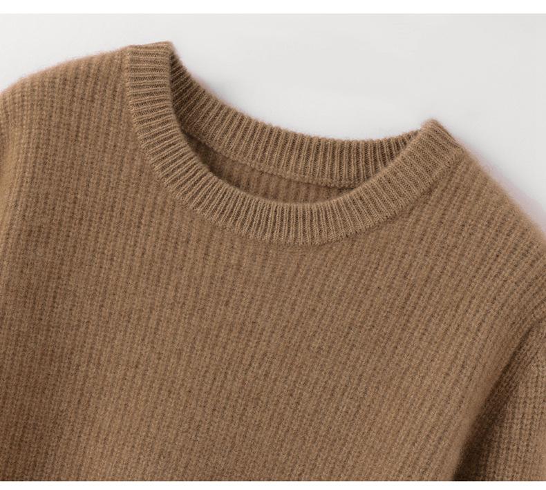 Nuevo Suéter de Punto de Cuello Redondo Grueso 100% Cachemira Otoño/Invierno para Mujer, Punto Canalé, Holgado, Versátil, Adelgazante