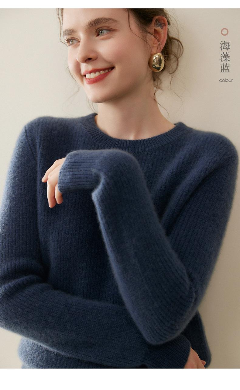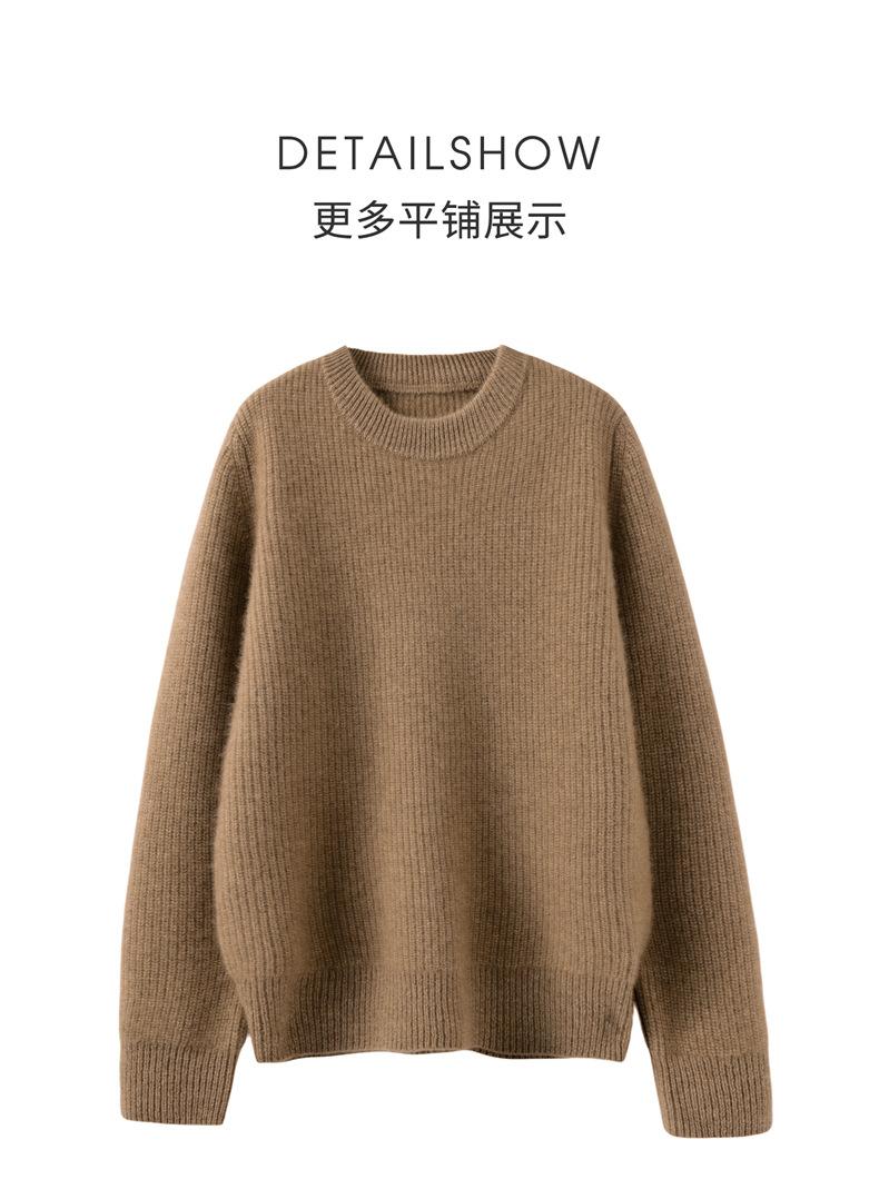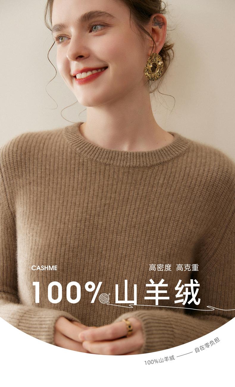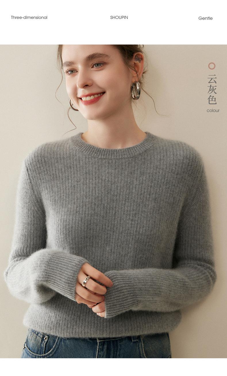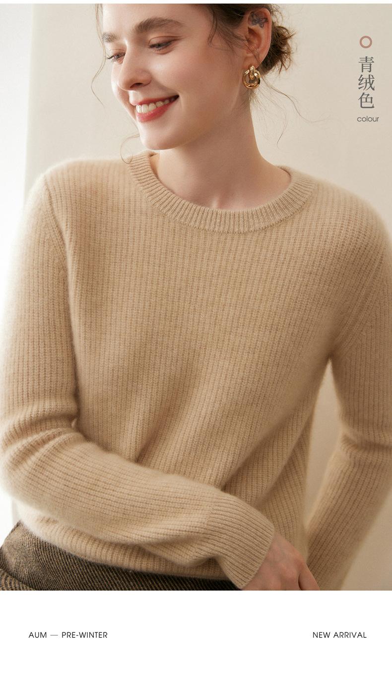 Nuevo Suéter de Punto de Cuello Redondo Grueso 100% Cachemira Otoño/Invierno para Mujer, Punto Canalé, Holgado, Versátil, Adelgazante
