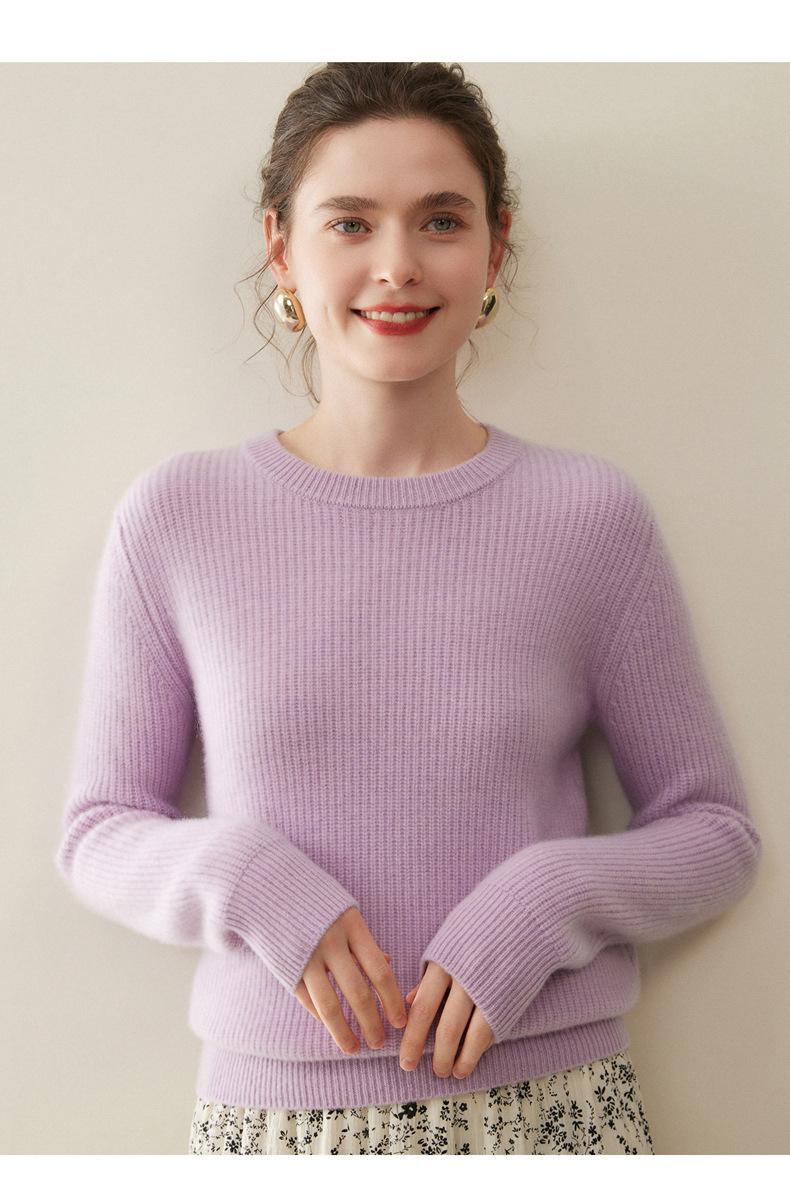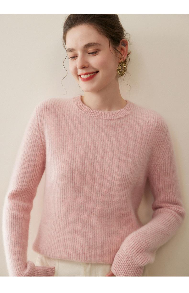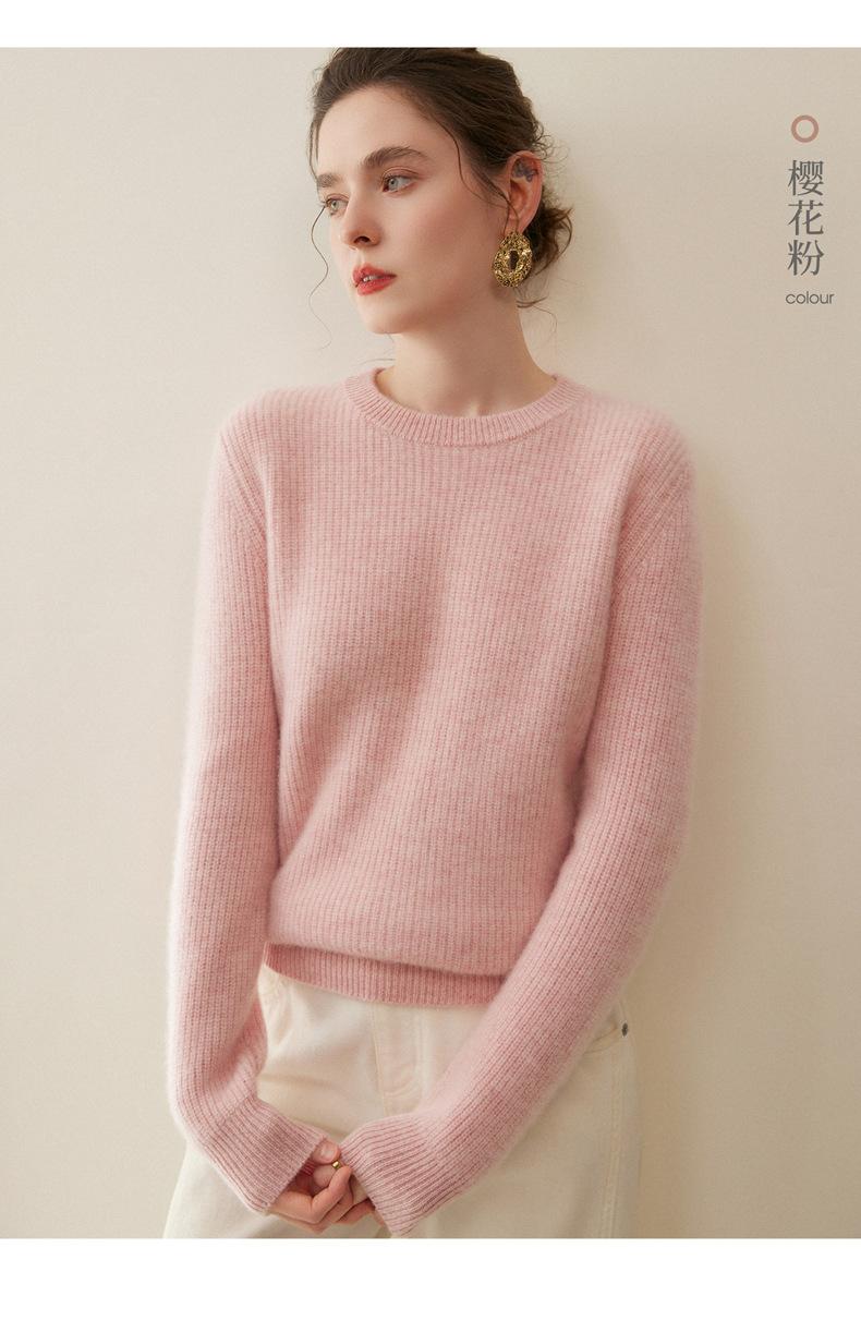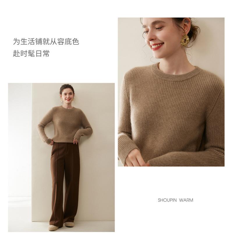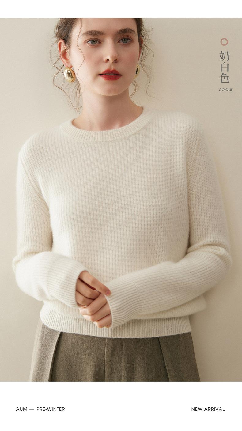 Nuevo Suéter de Punto de Cuello Redondo Grueso 100% Cachemira Otoño/Invierno para Mujer, Punto Canalé, Holgado, Versátil, Adelgazante