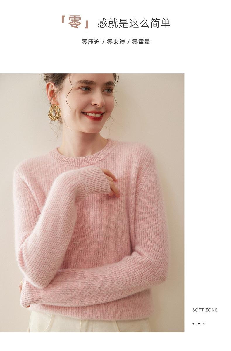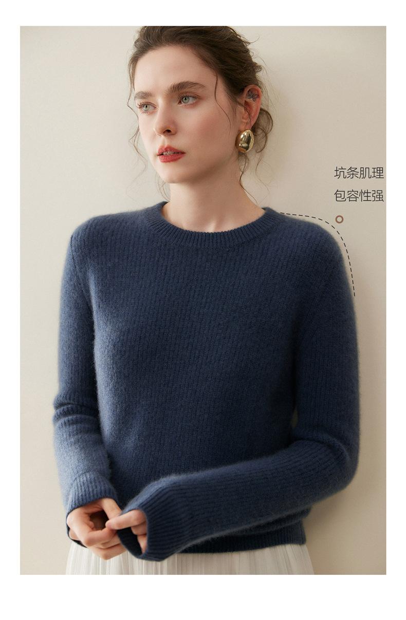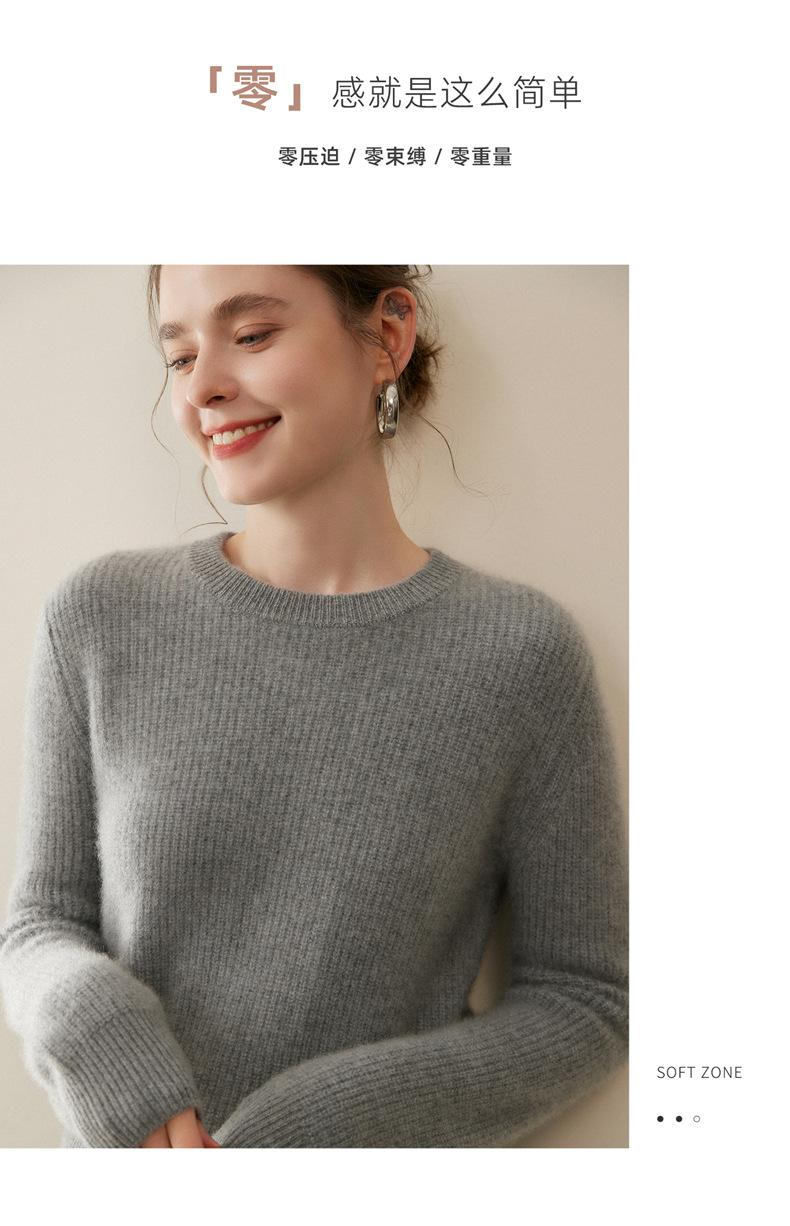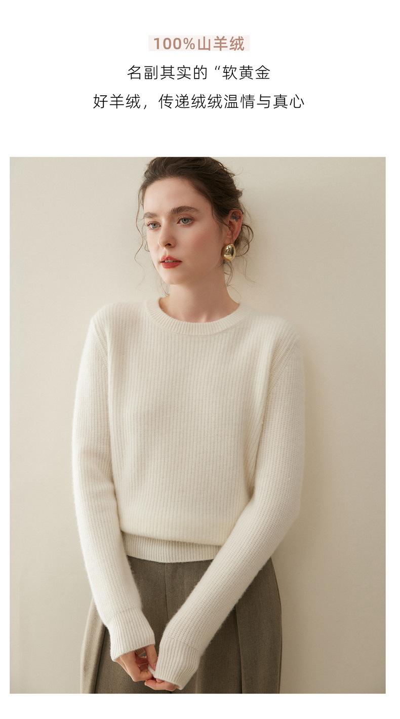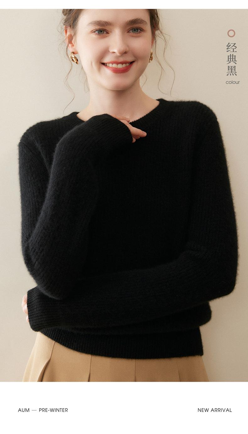Nuevo Suéter de Punto de Cuello Redondo Grueso 100% Cachemira Otoño/Invierno para Mujer, Punto Canalé, Holgado, Versátil, Adelgazante
