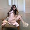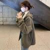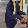 Chamarra Sudadera con Capucha Azul para Mujer Temporada Principios de Otoño Capucha Grande Estilo Americano Lazy Chic Suelta Cierre Manga Larga Cárdigan