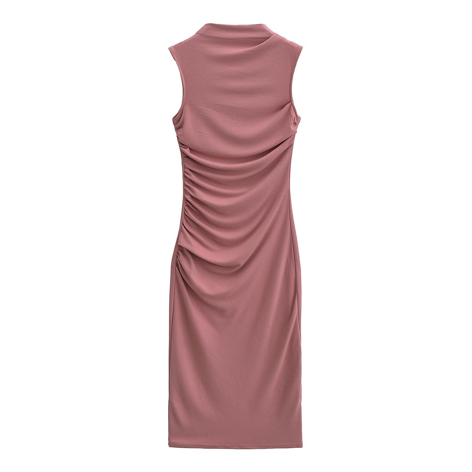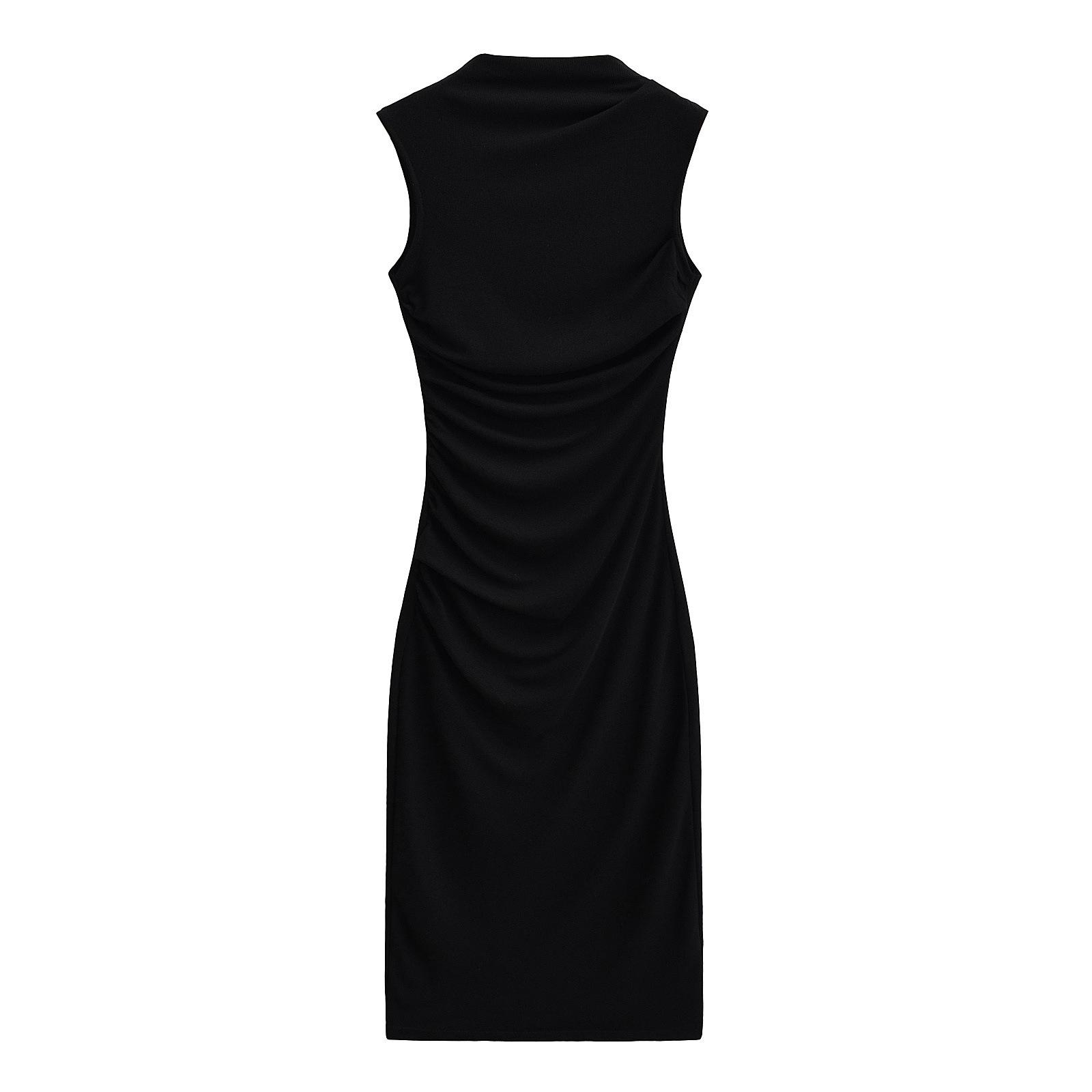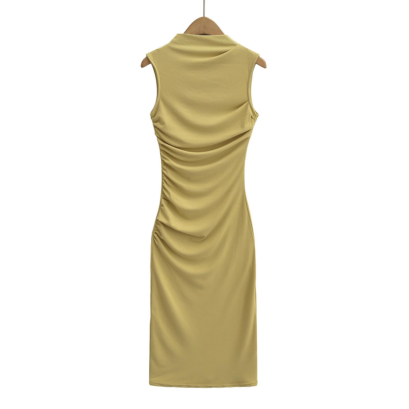 Vestido de cadera plisado de cuello medio alto para chicas sexys, Otoño Nuevo Estilo Europeo y Americano, Vestido ajustado de corte slim para mujer