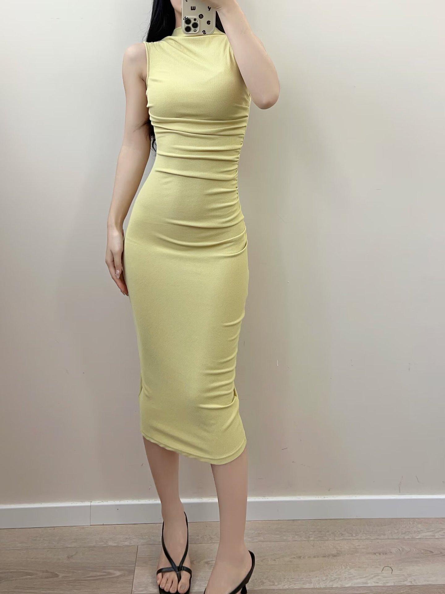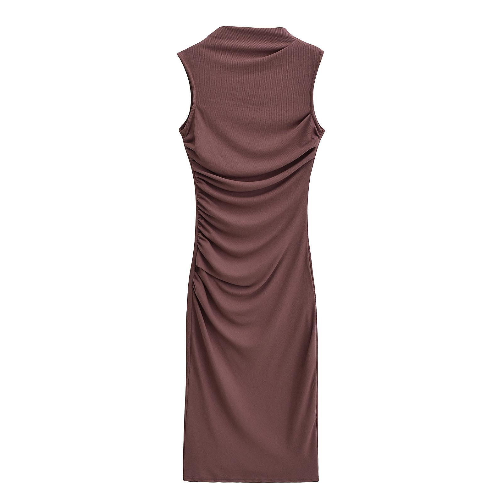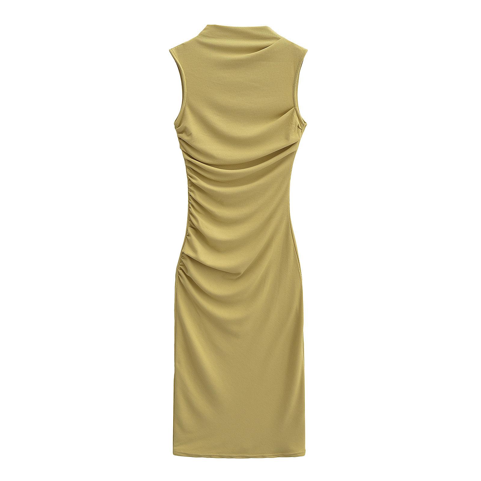 Vestido de cadera plisado de cuello medio alto para chicas sexys, Otoño Nuevo Estilo Europeo y Americano, Vestido ajustado de corte slim para mujer